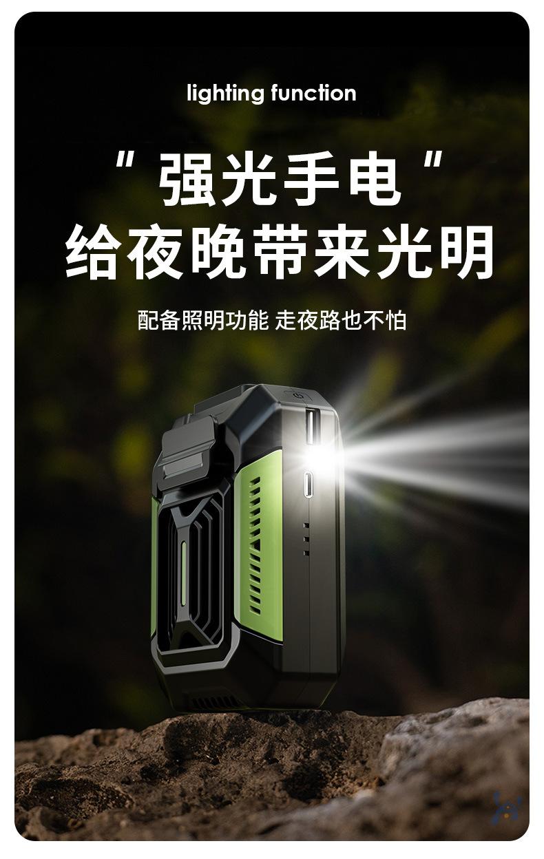 [high-speed version] f83 waist fan-green [digital display + waist hanging + hanging neck + charging + lighting]