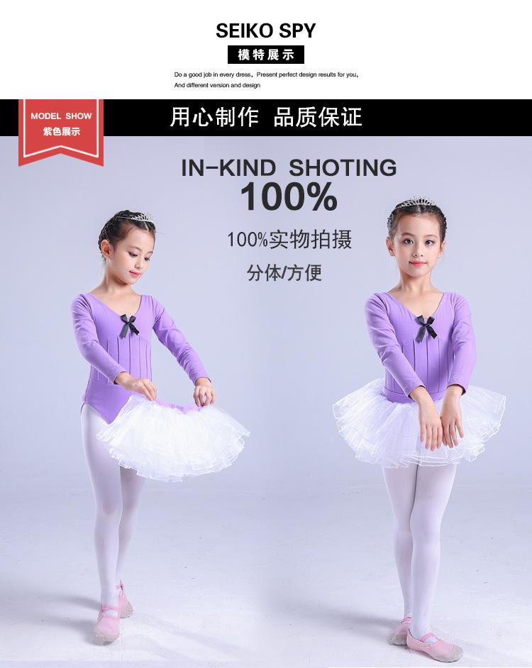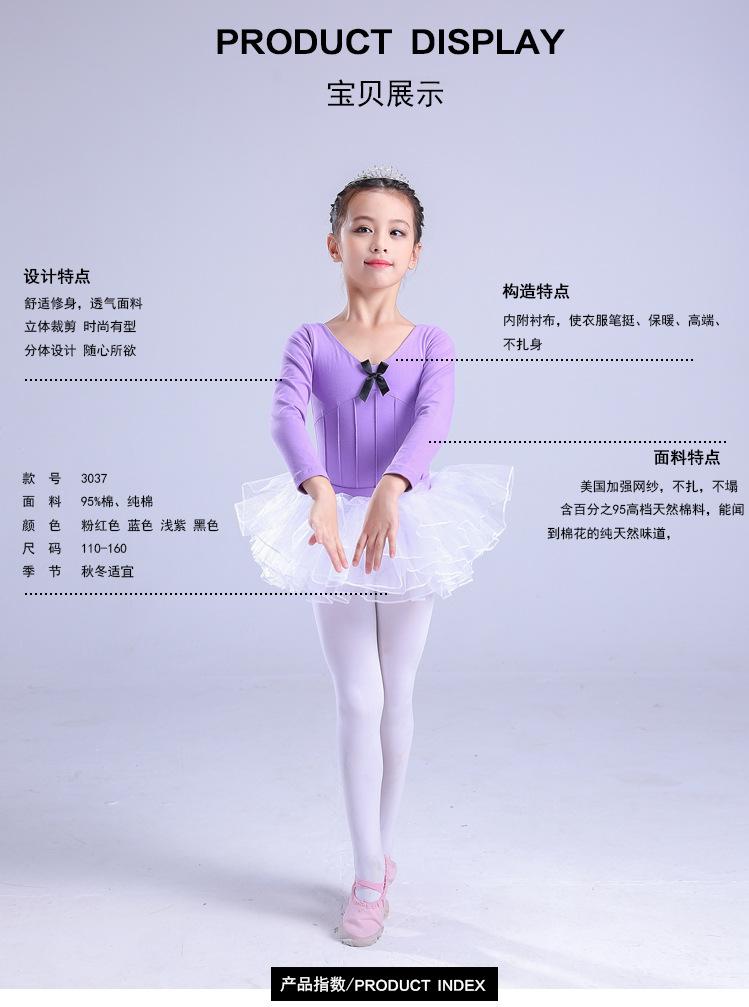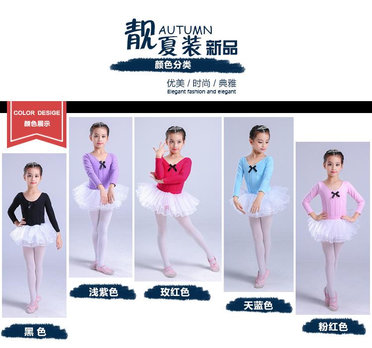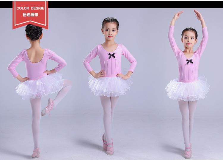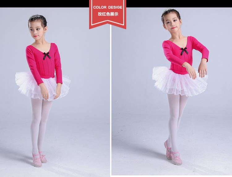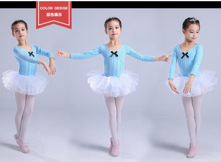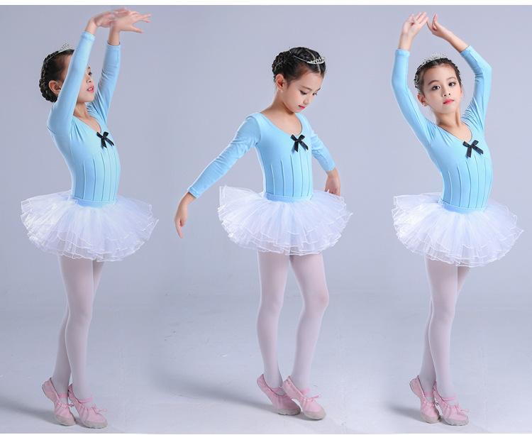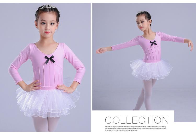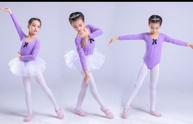Traje de dança infantil de manga comprida para meninas, vestido de balé de outono e inverno, traje de apresentação, teste de grau infantil, traje de uma peça, roupa de prática