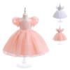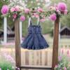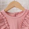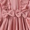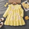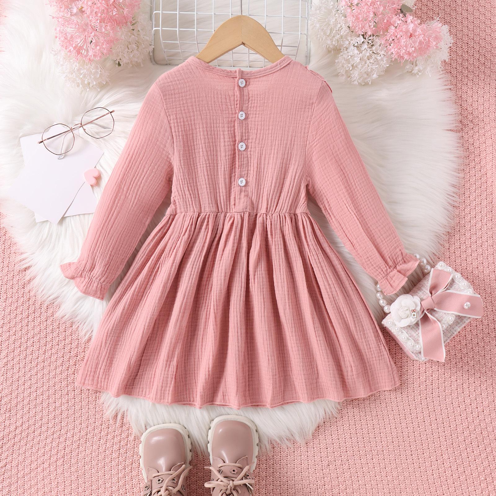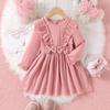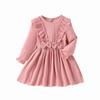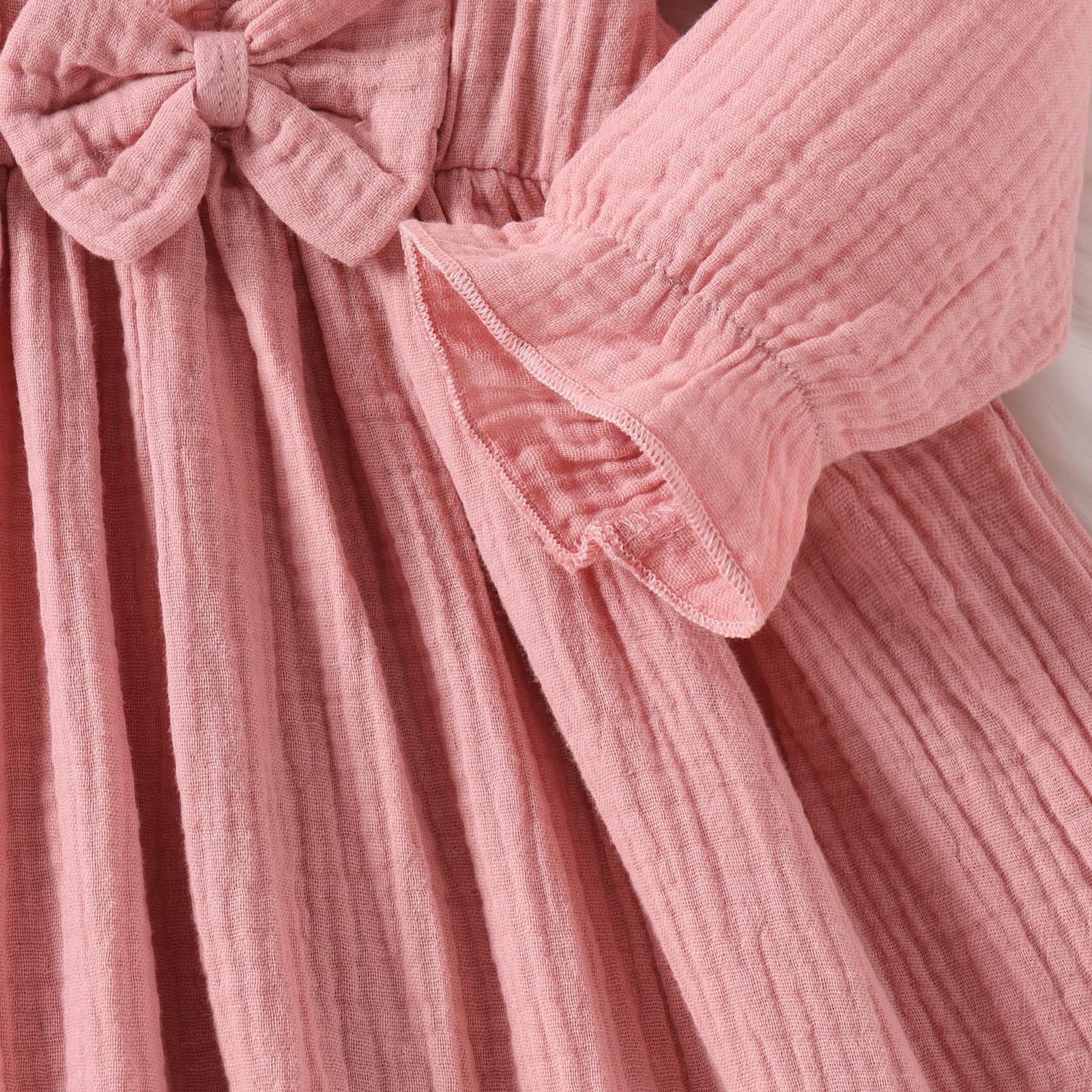 Comércio exterior transfronteiriço ins vestido doce de menina cor sólida crepe costura orelha de madeira laço manga longa saia linha A