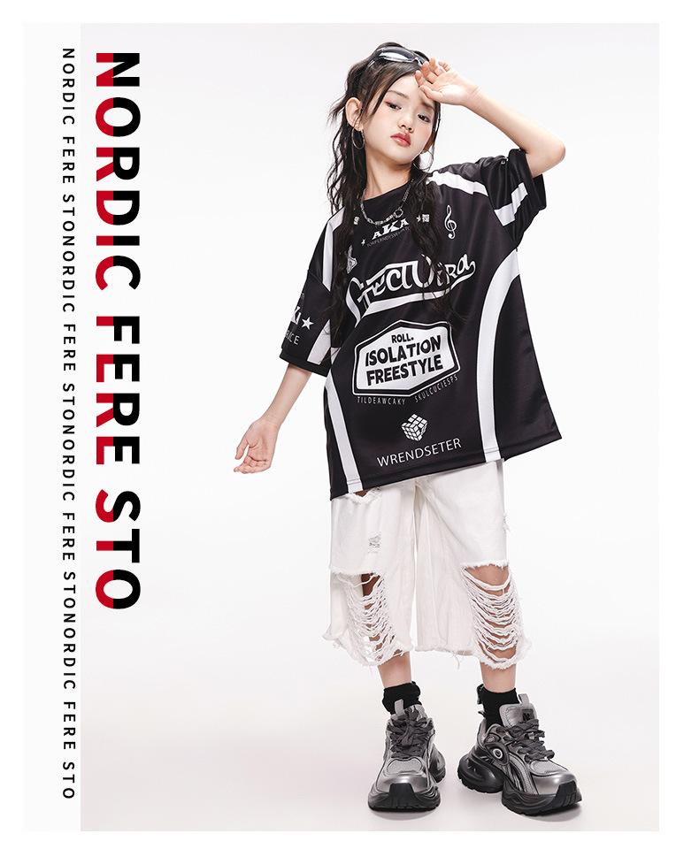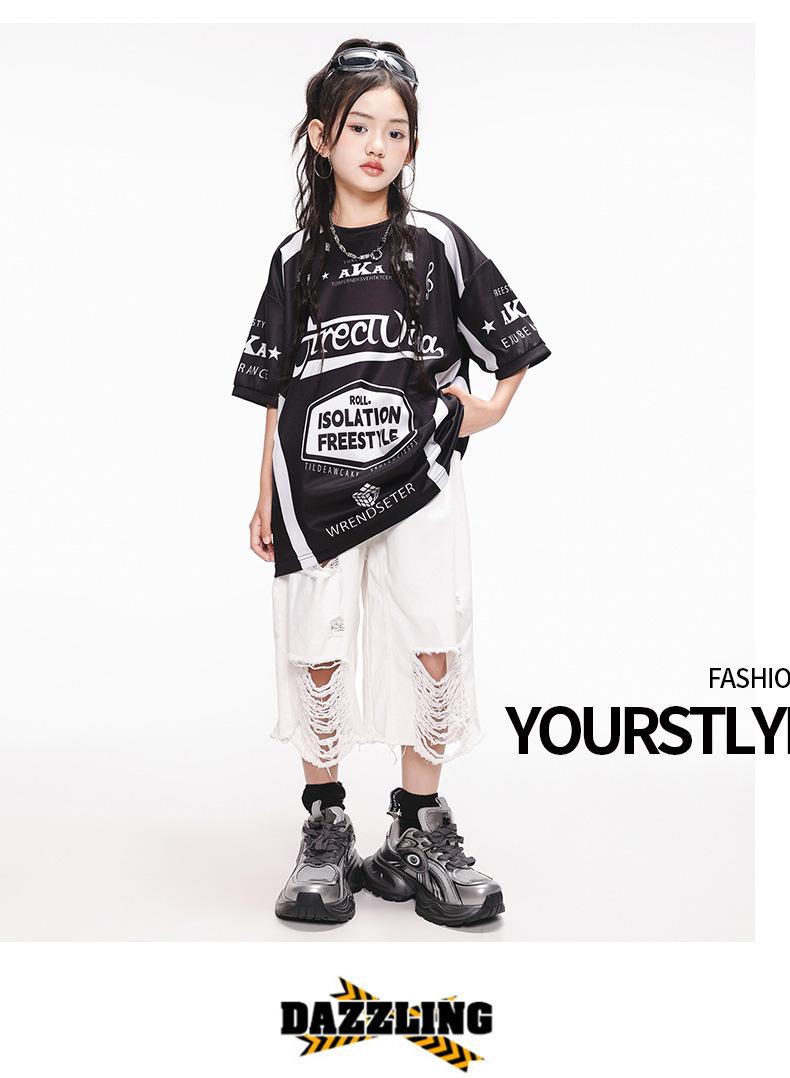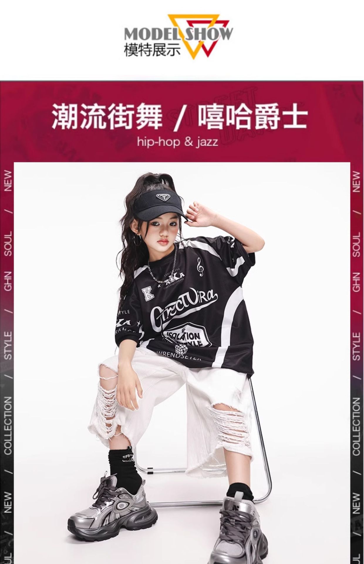 Roupas de moda infantil hip-hop, traje de dança de jazz, traje de show para meninas, traje de bateria hip-hop hip-hop infantil