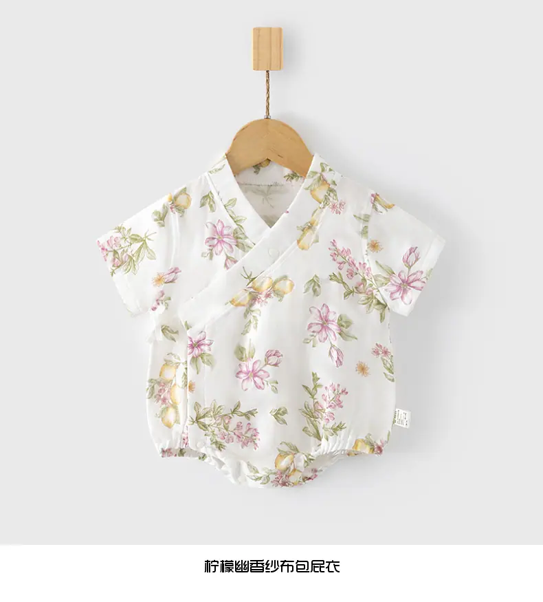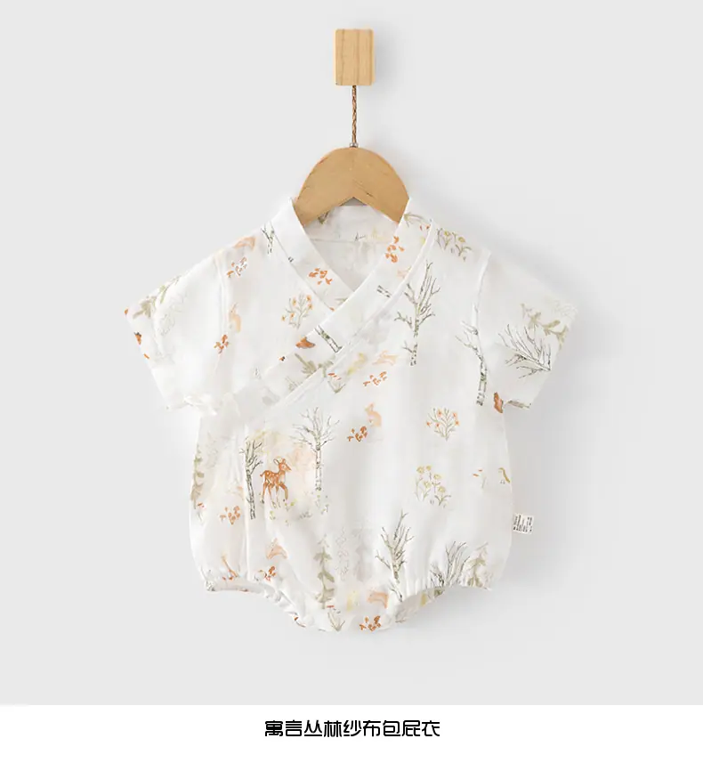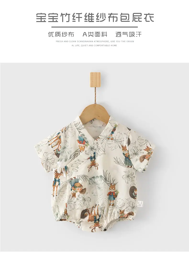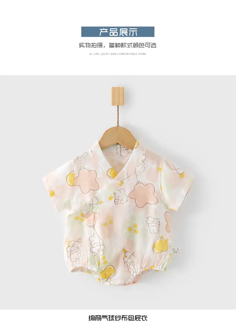 Envoltório de Gaze para Bebê Verão Ultrafino Macacão Triângulo para Bebê Recém-Nascido Roupa de Monge Macacão de Manga Curta