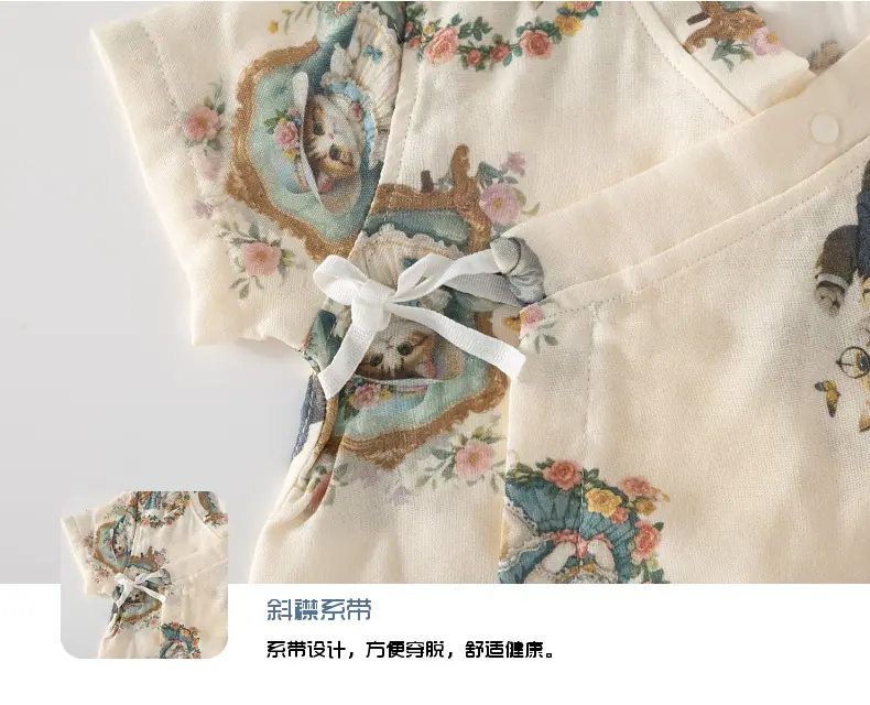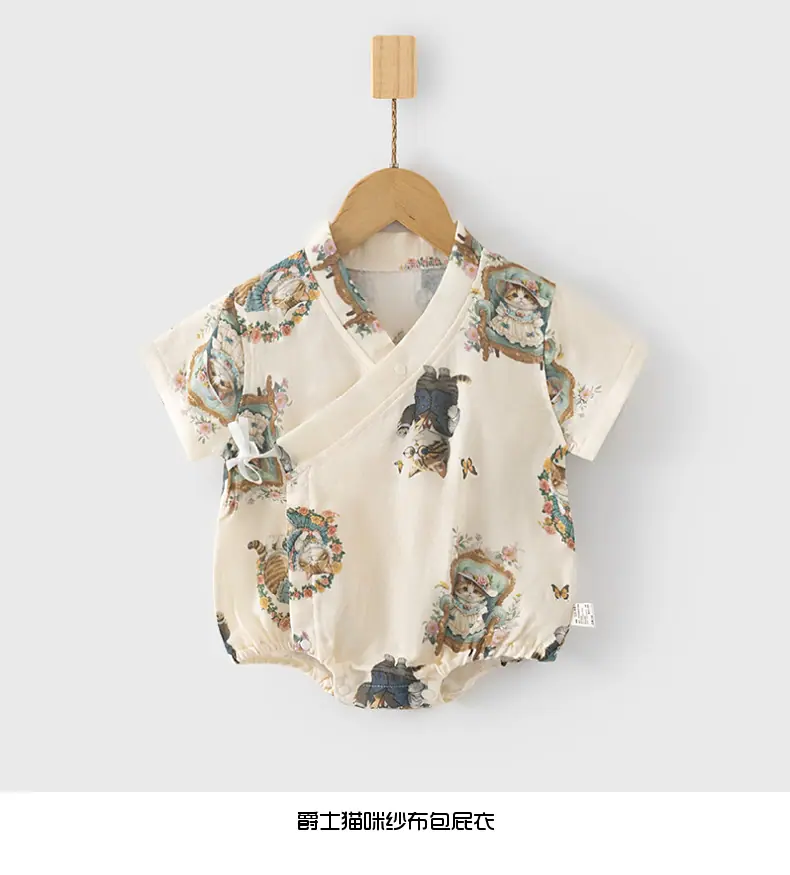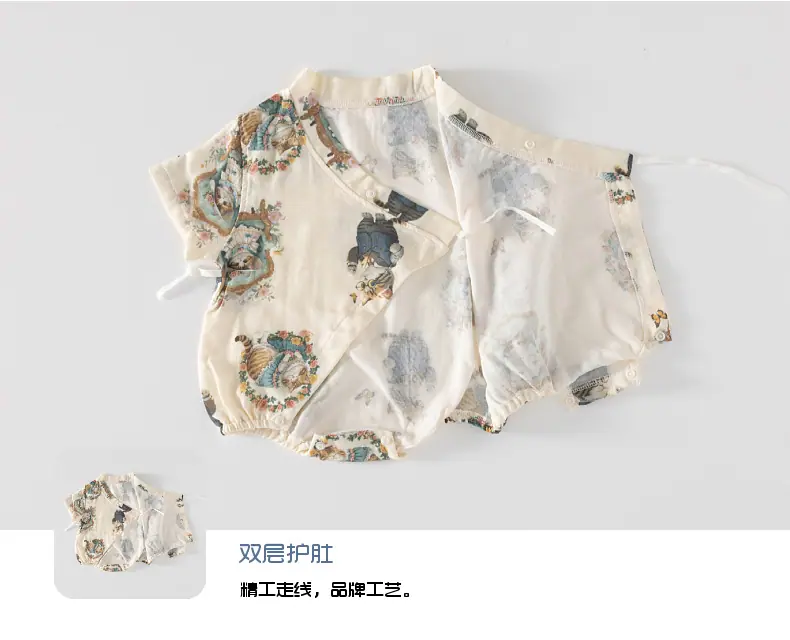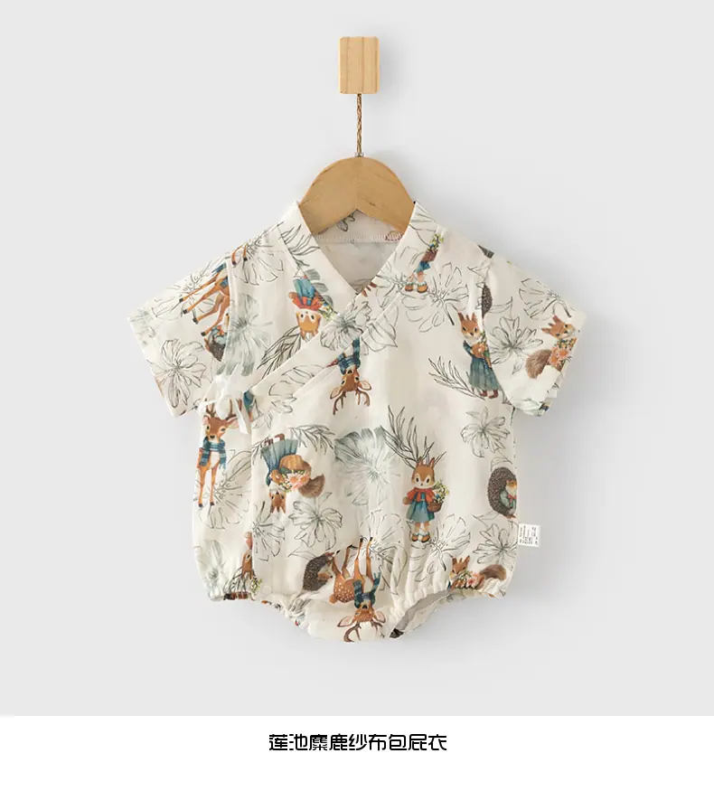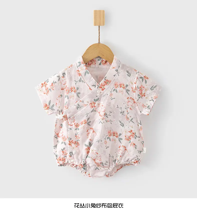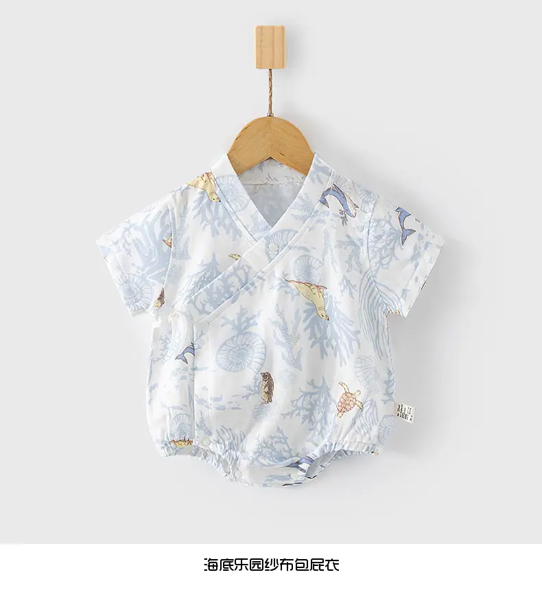 Envoltório de Gaze para Bebê Verão Ultrafino Macacão Triângulo para Bebê Recém-Nascido Roupa de Monge Macacão de Manga Curta