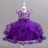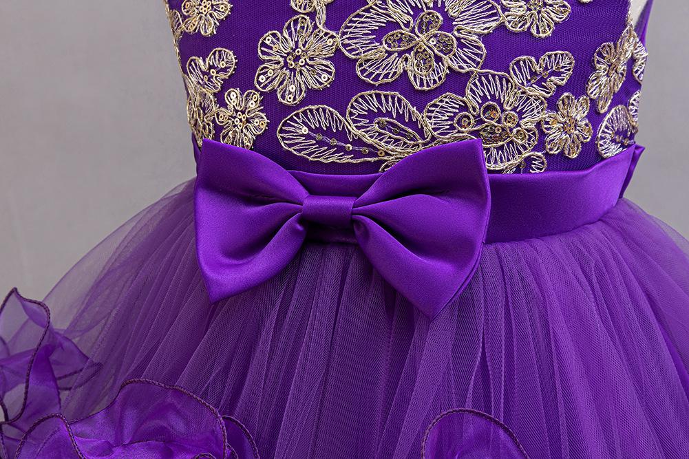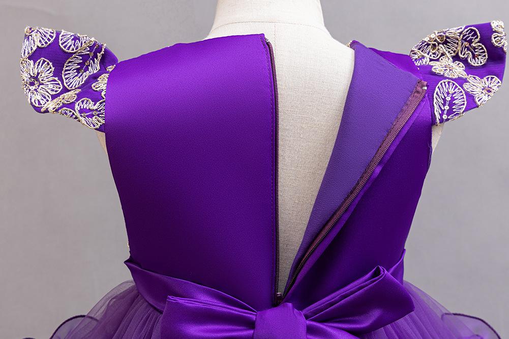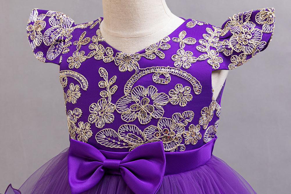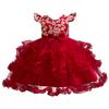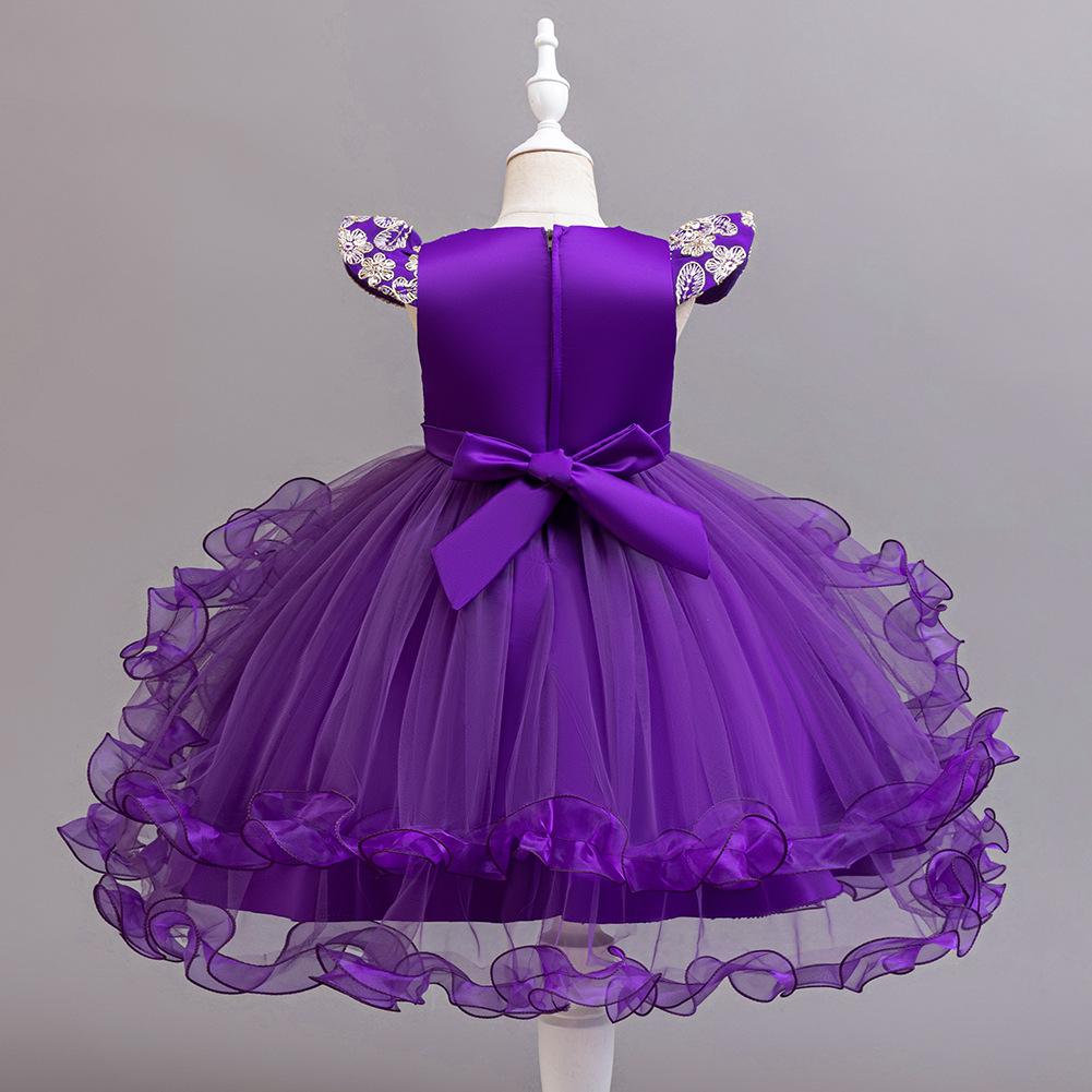 Vestido infantil europeu e americano mais vendido, vestido de florista, vestido de princesa, saia de malha bordada com miçangas e manga curta para meninas