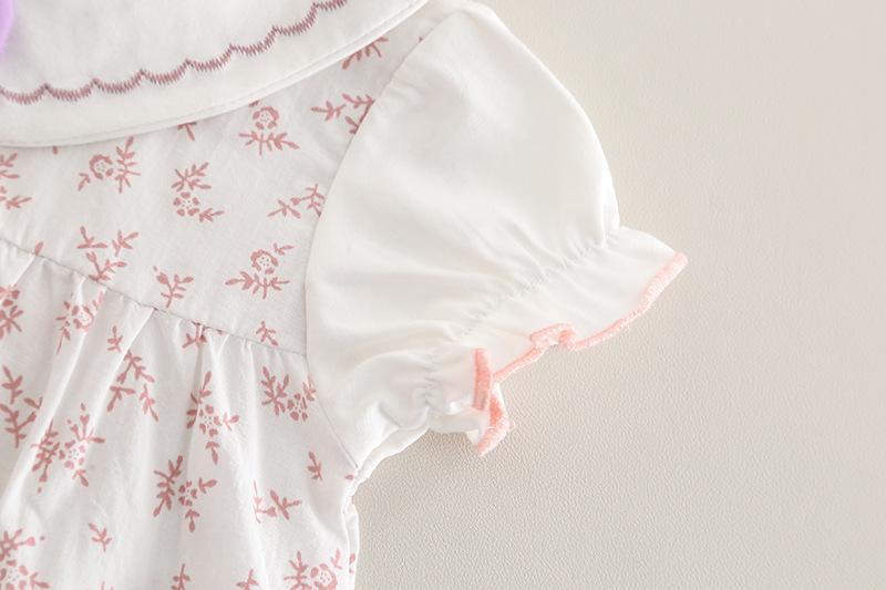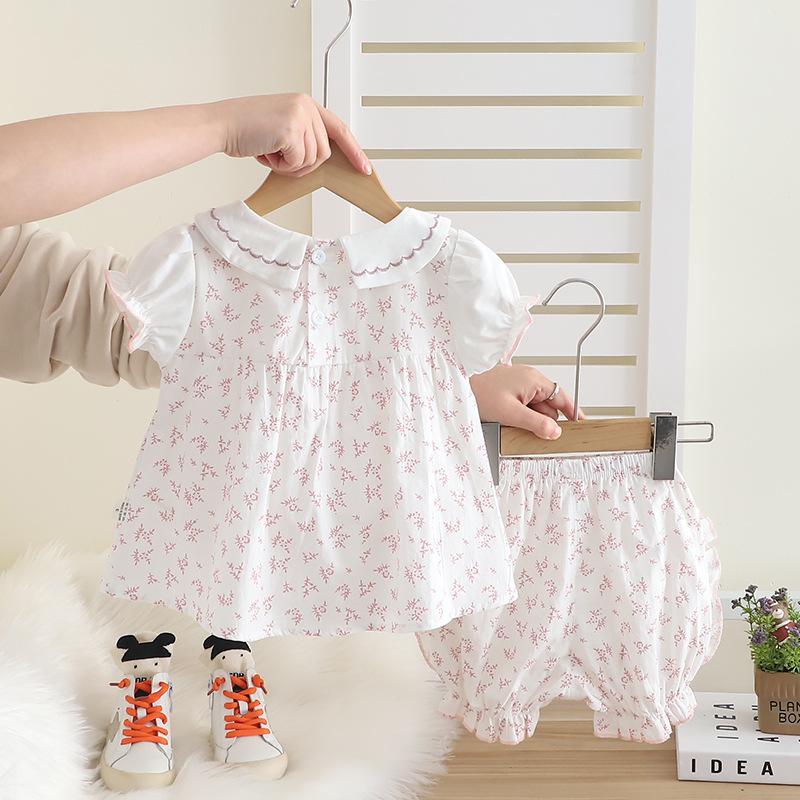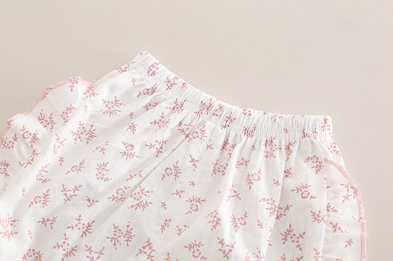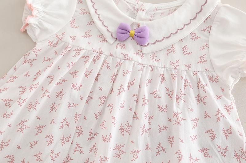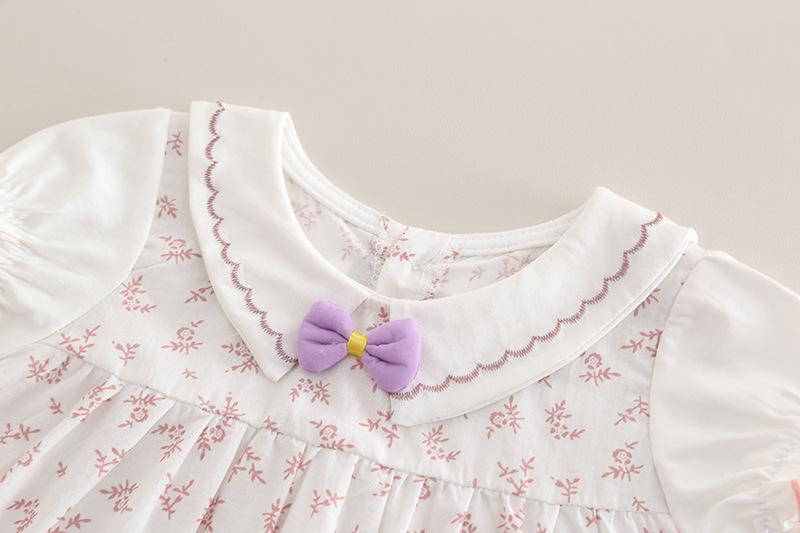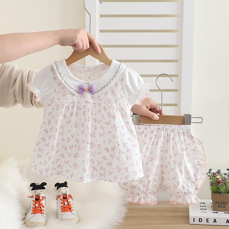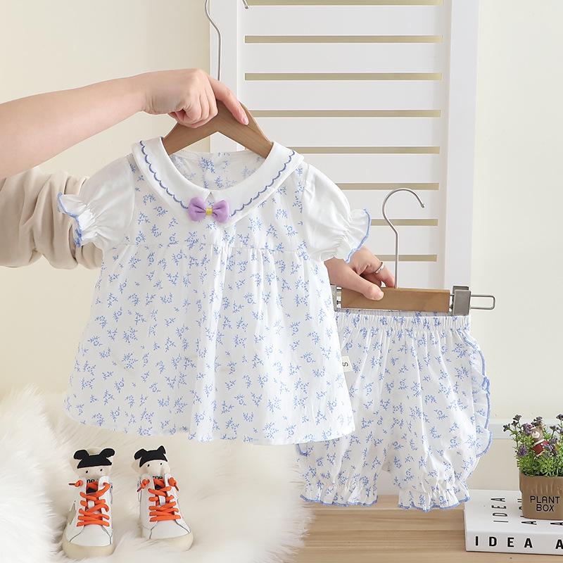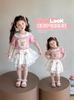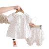 Terno de verão para meninas 2025 Novo conjunto de duas peças com gola de arco de verão para bebês infantis, manga curta, moda casual