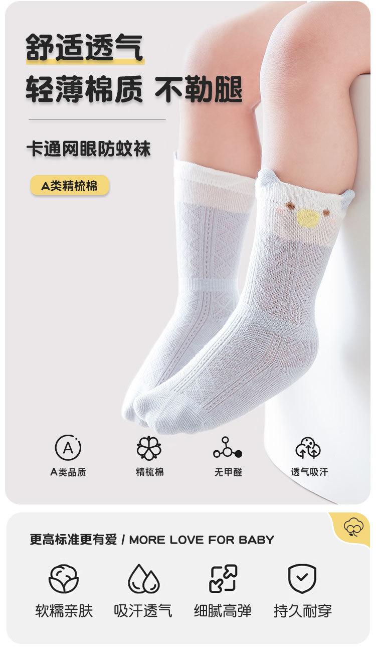 Compre 25 meias antibacterianas de malha para bebês, meias finas de desenho animado para bebês, meias de algodão anti-mosquito respiráveis e sem osso para crianças no atacado no Joom.pro