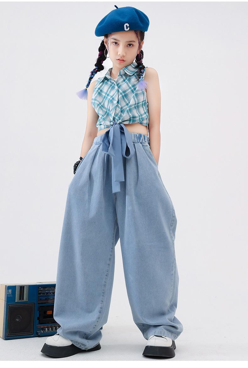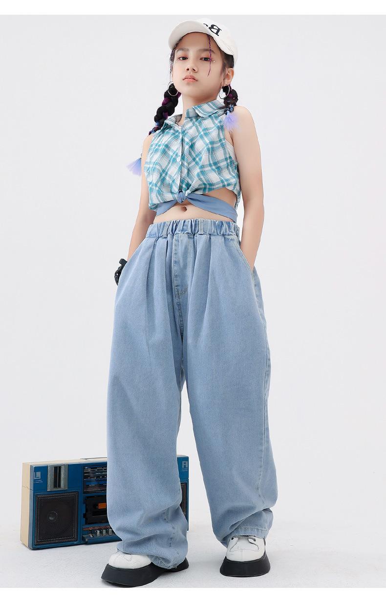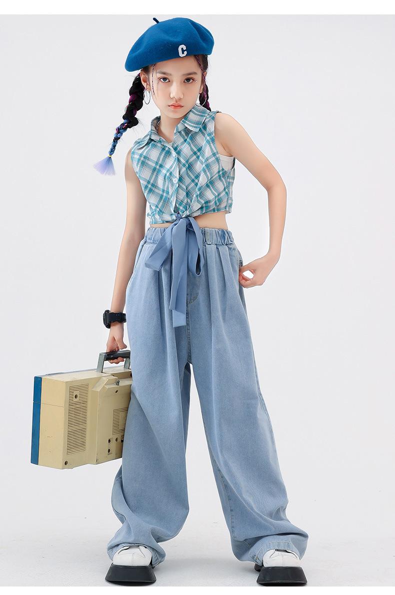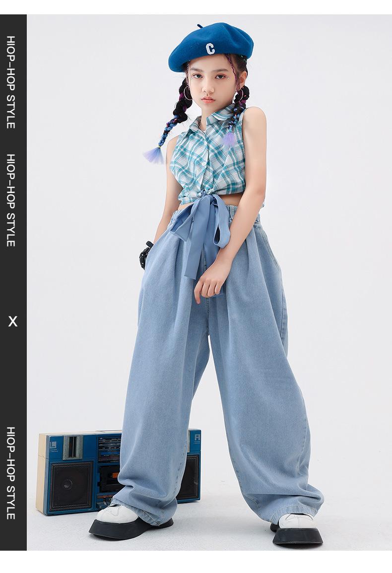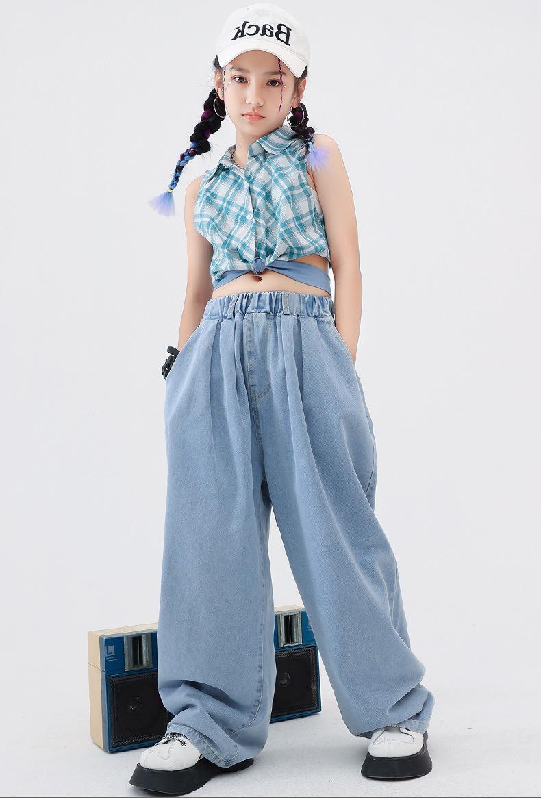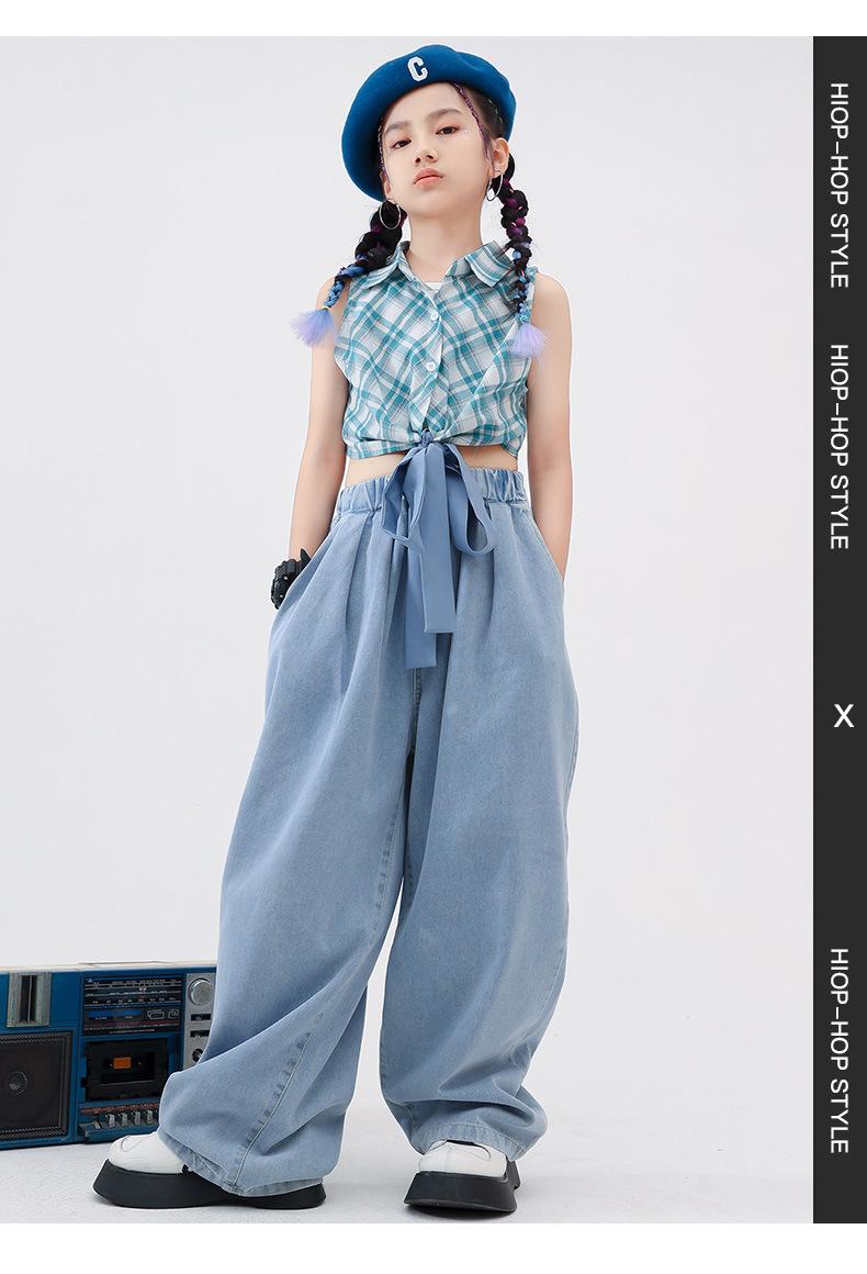 Traje de dança jazz infantil para meninas, traje curto para performance em grupo feminino, roupas de verão da moda para crianças