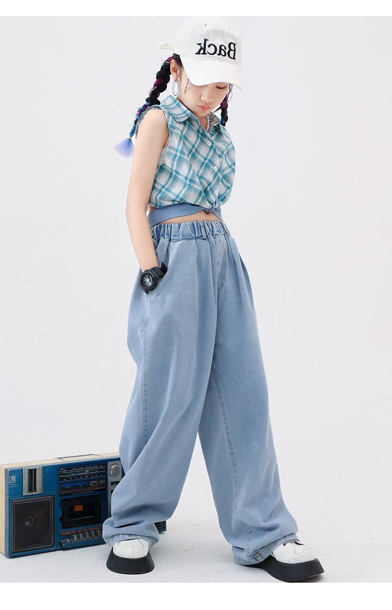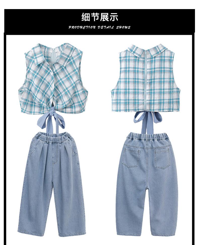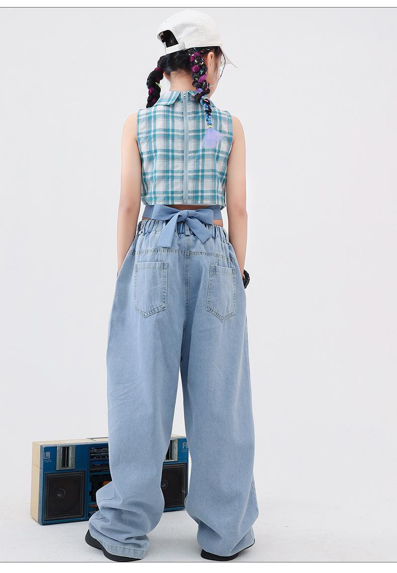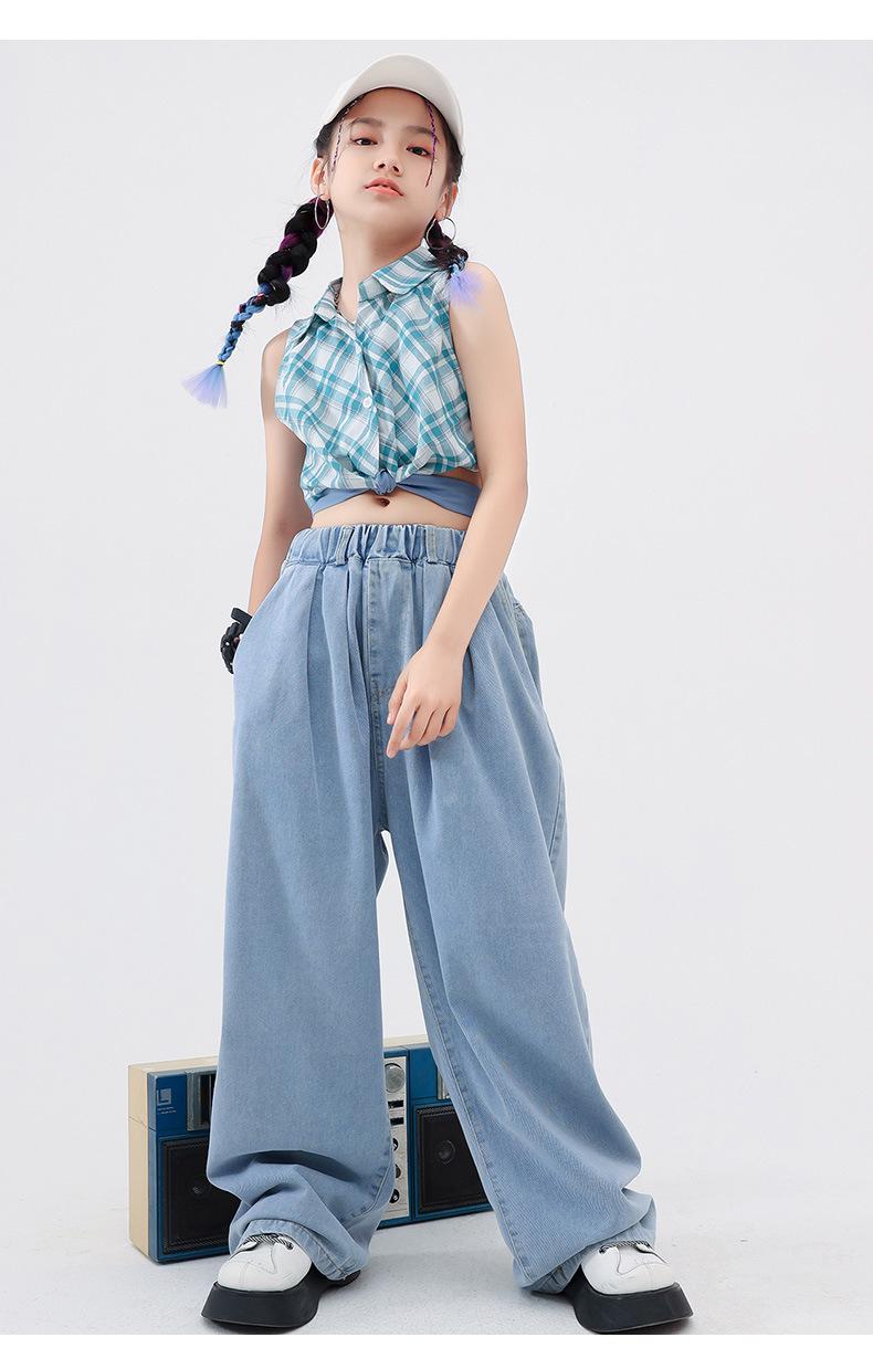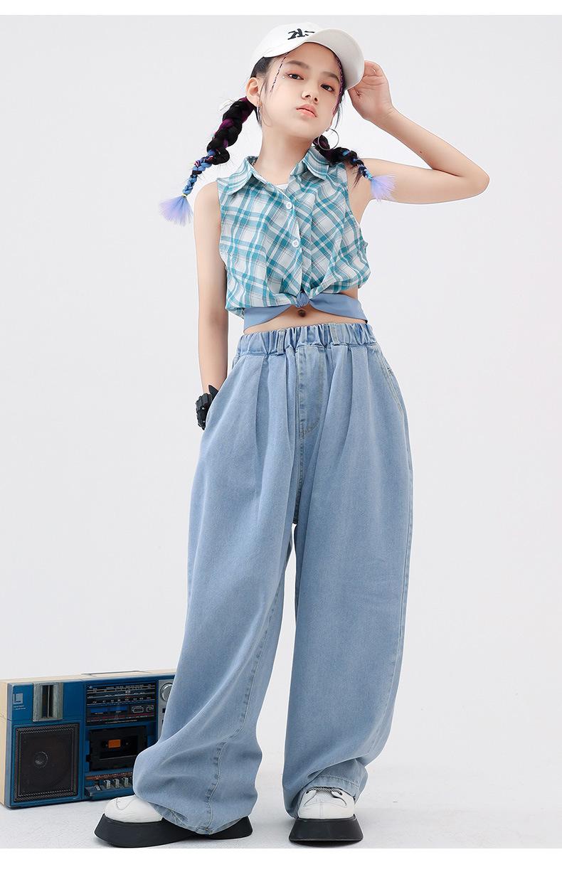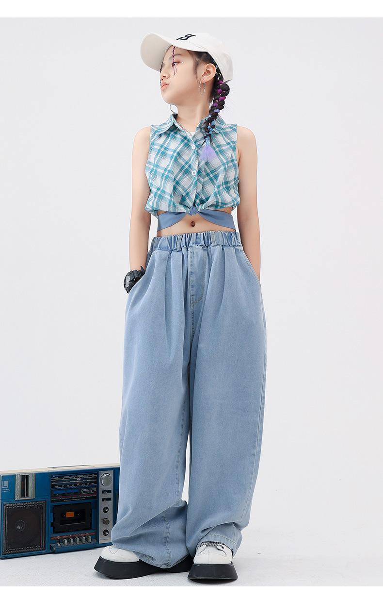 Traje de dança jazz infantil para meninas, traje curto para performance em grupo feminino, roupas de verão da moda para crianças
