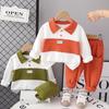 Meninos Primavera 2025 Novo Estilo Estilo Ocidental Menino Terno Infantil Casual Manga Longa Cor-combinando Gola Zíper Camisa Conjunto de Três Peças