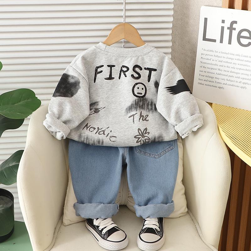 Roupa Infantil Yihao Roupa Infantil Primavera & Outono 2025 Novo Bebê Estilo Coreano Moletom de Gola Redonda Roupas de Bebê Fashionáveis e Versáteis
