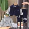 Roupa Infantil Yihao Roupa Infantil Novo Outono e Inverno Casual Estilo Coreano Colete para Meninos e Meninas Retrô Roupa de Bebê de Três Peças