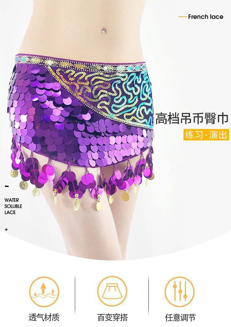 Nova dança do ventre transfronteiriça cintura corrente cintura toalha dança cintura lantejoulas borla desempenho quadril toalha