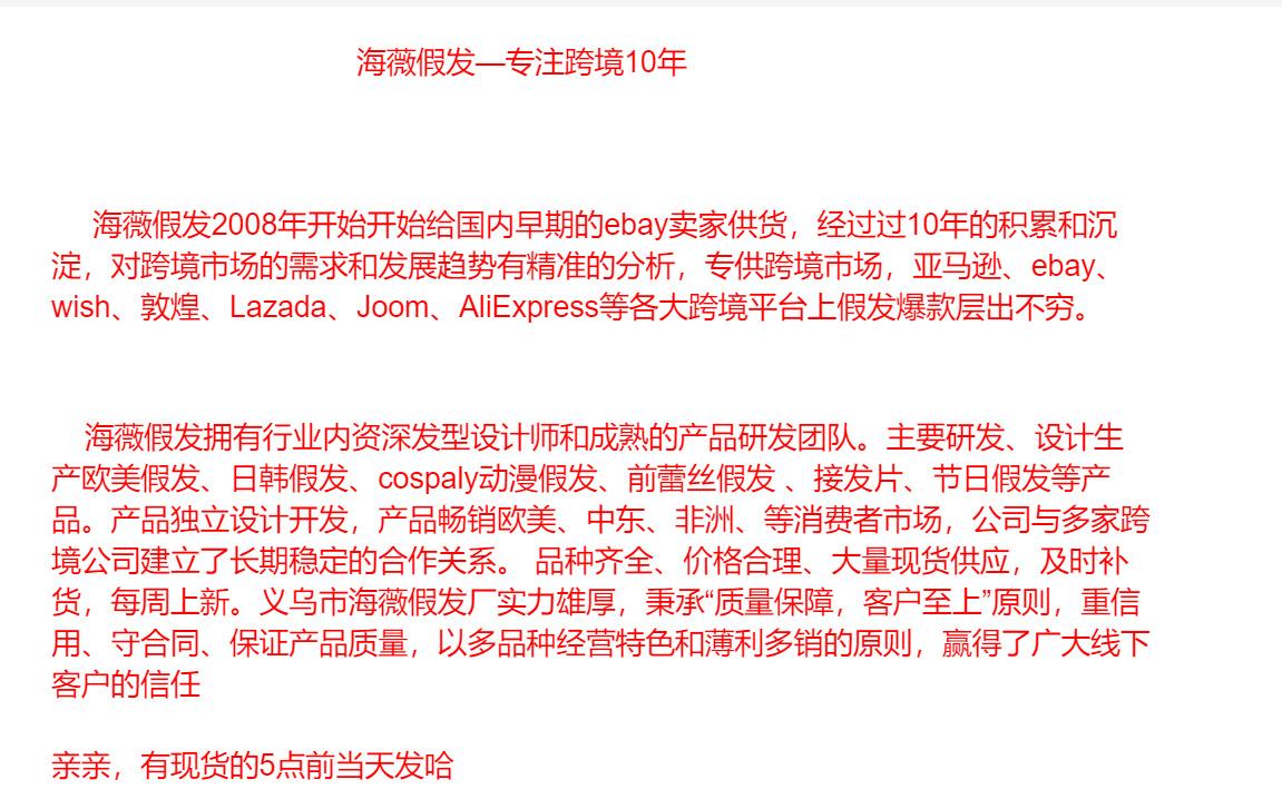 A Yiwu Haiwei Wig Factory é uma verdadeira fabricante de perucas. Desde sua criação, ela está comprometida com a pesquisa e desenvolvimento, produção e produtos relacionados de perucas e acessórios de perucas. Temos uma equipe de design dedicada e podemos fazer amostras e personalizá-las de acordo com os requisitos.
