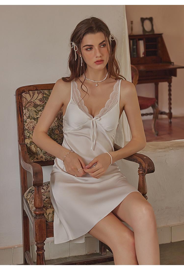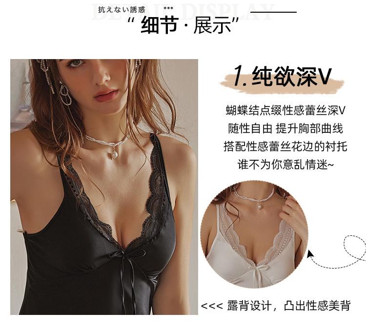Yi Ying Pure Desire Pijama com Almofada no Peito Feminino Verão Novo Sexy Renda Deep V Alça Saia Tentação Camisola terno plus size