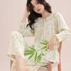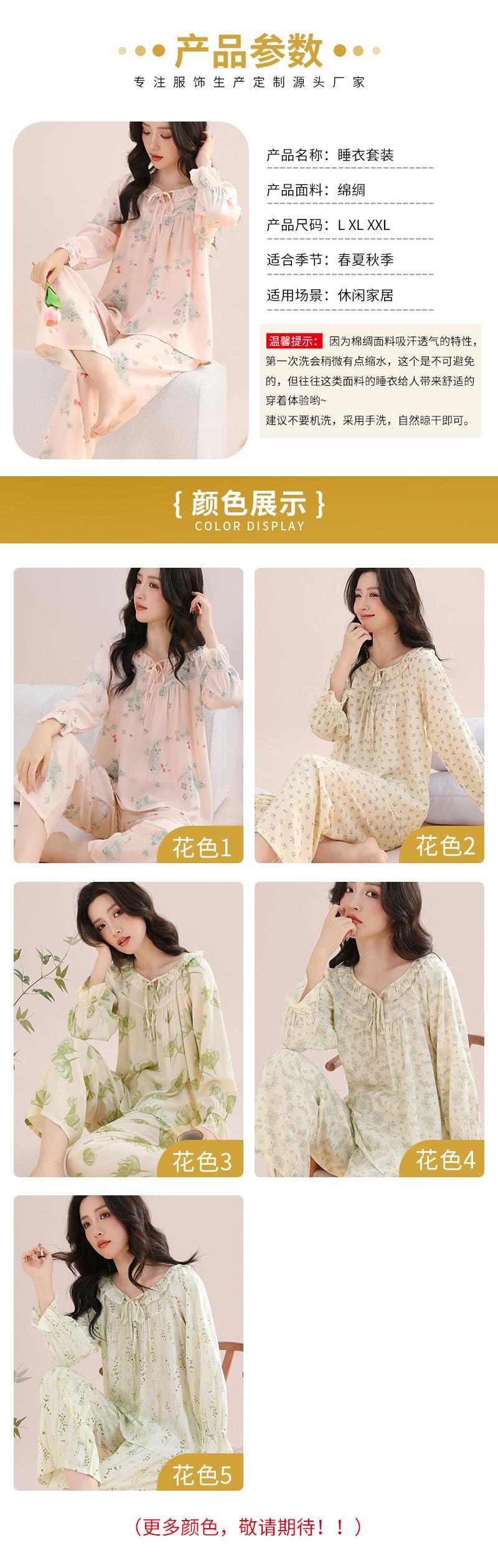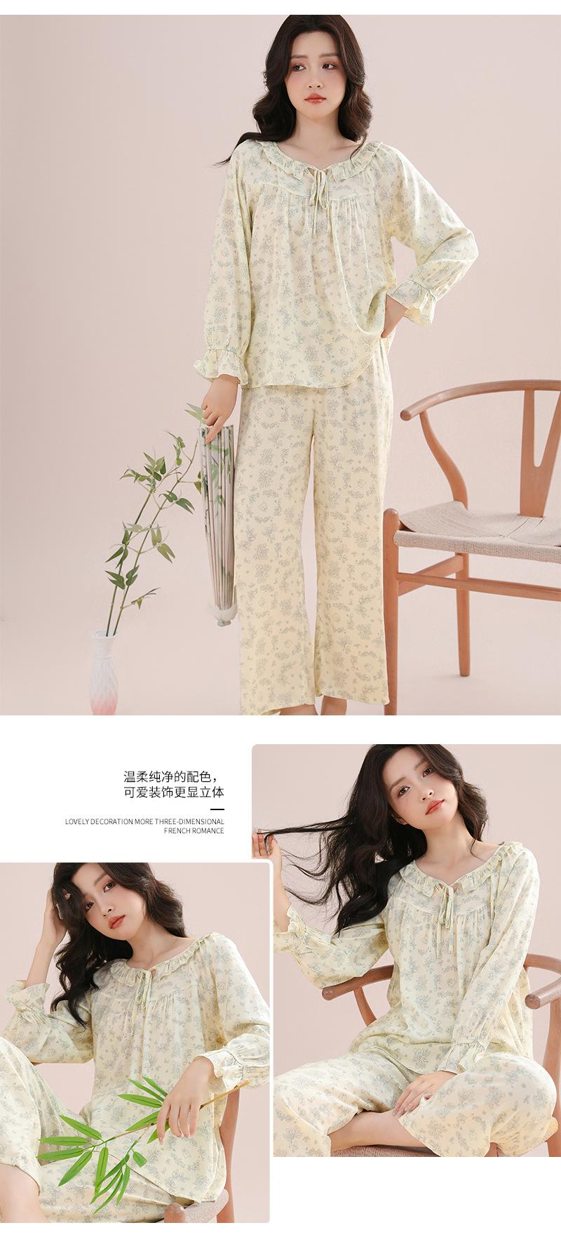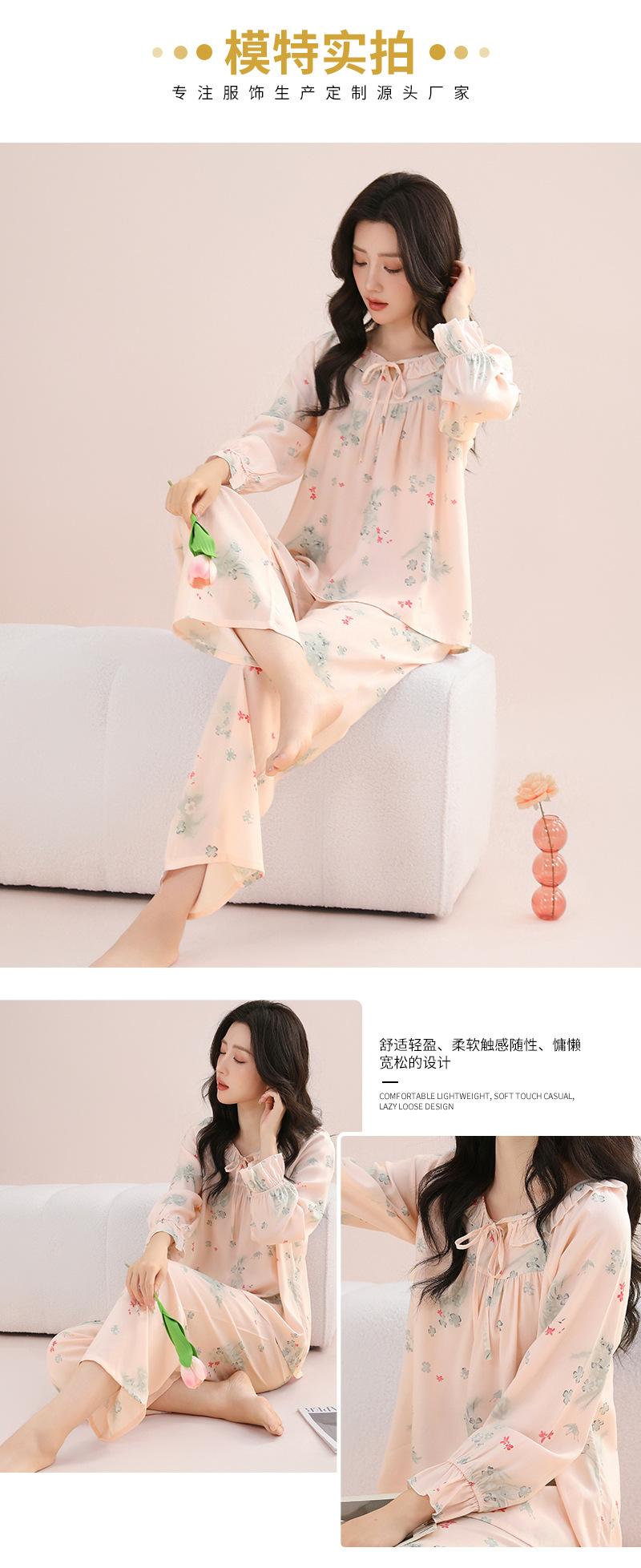 Pijama feminino de algodão e seda, macio e confortável, respirável, solto, com cadarço, calças de manga comprida para uso em casa
