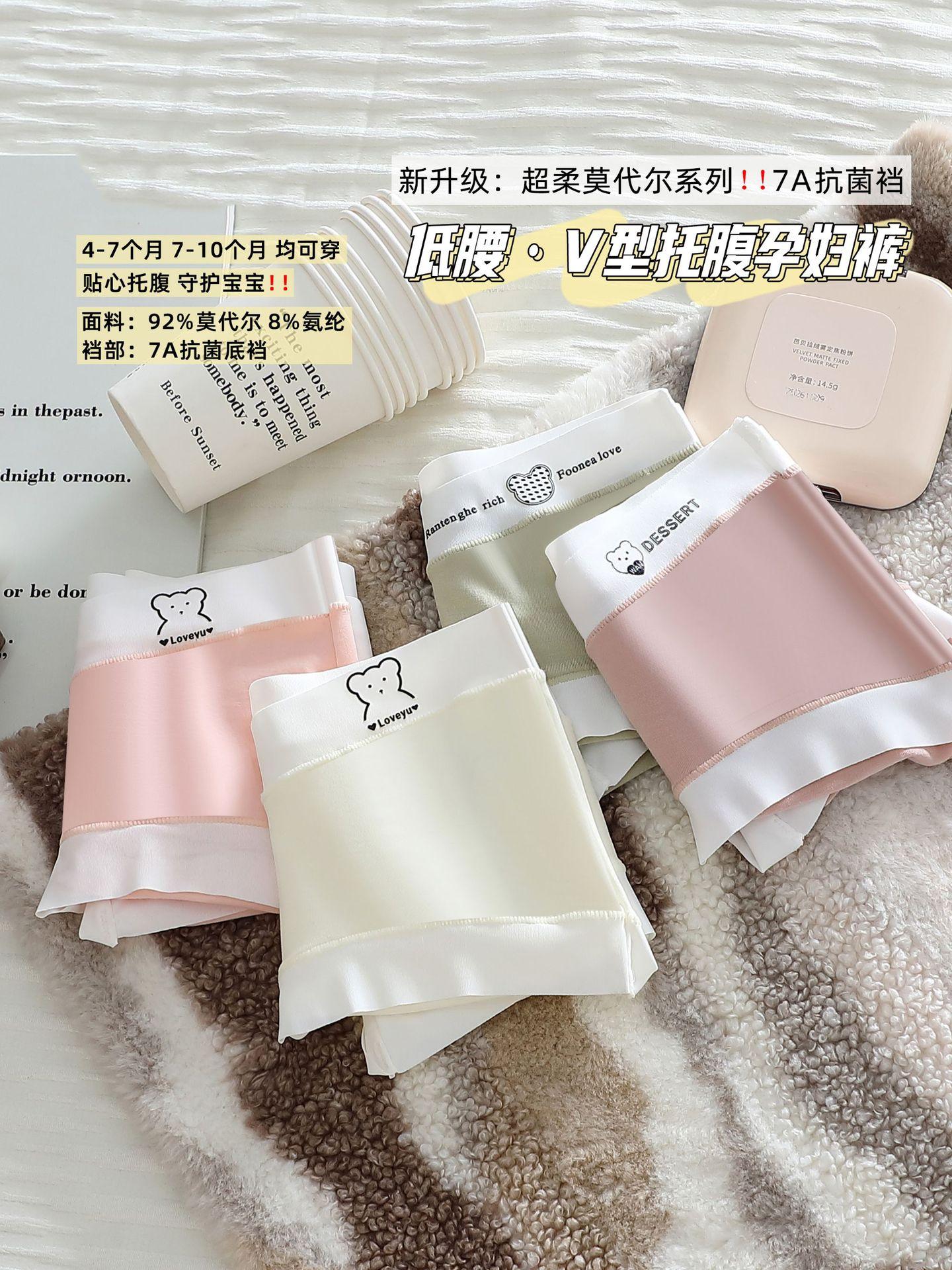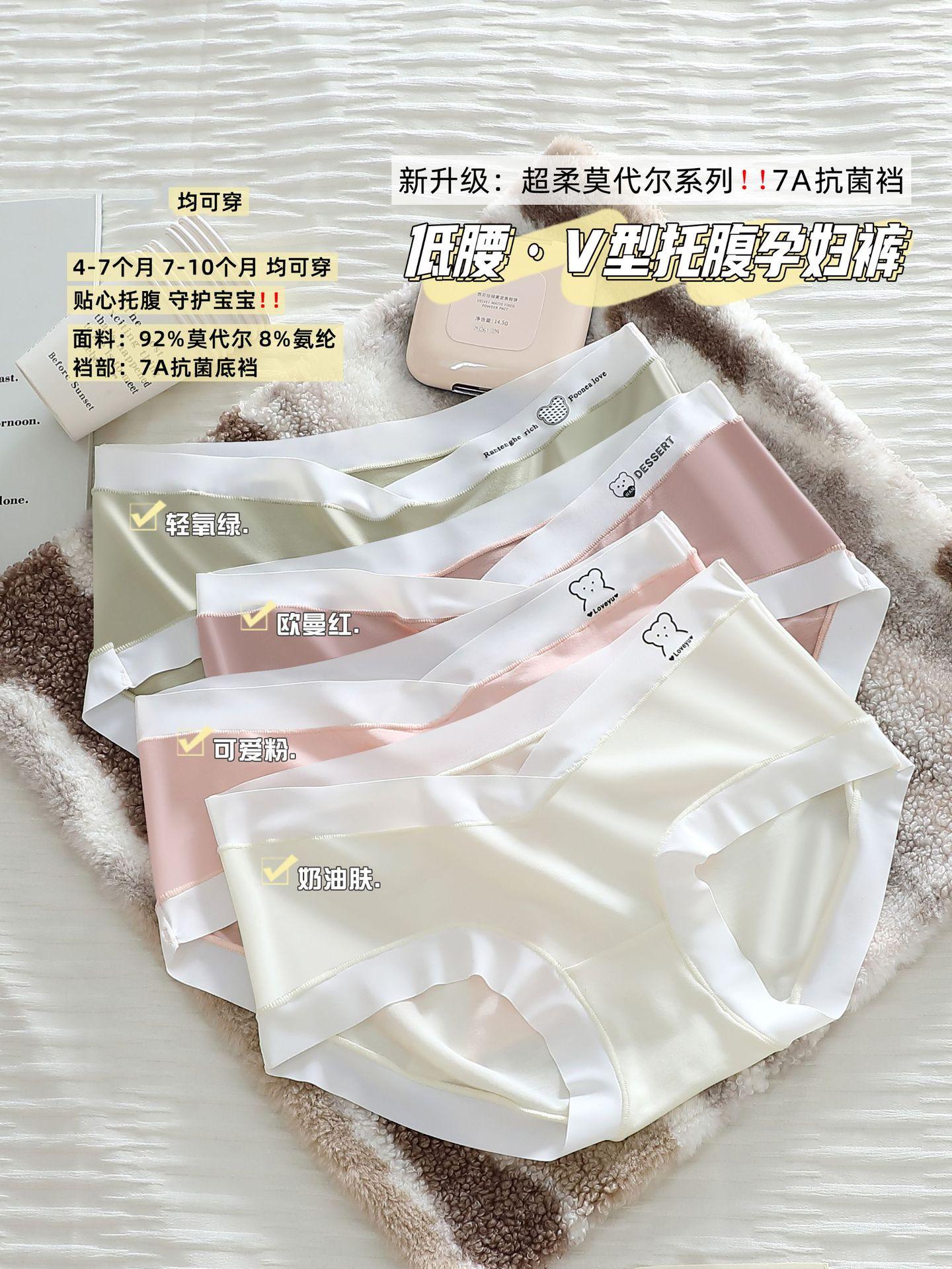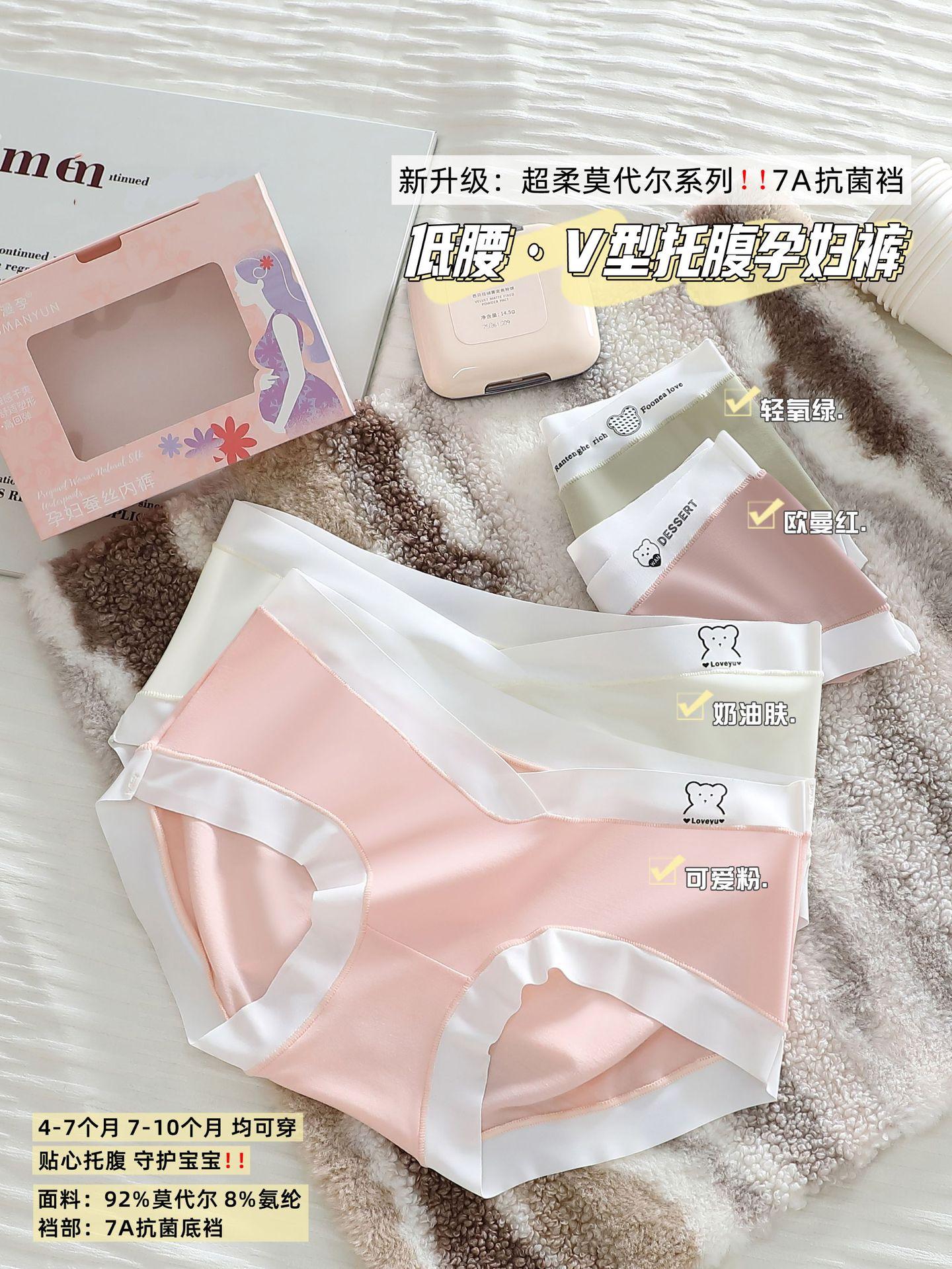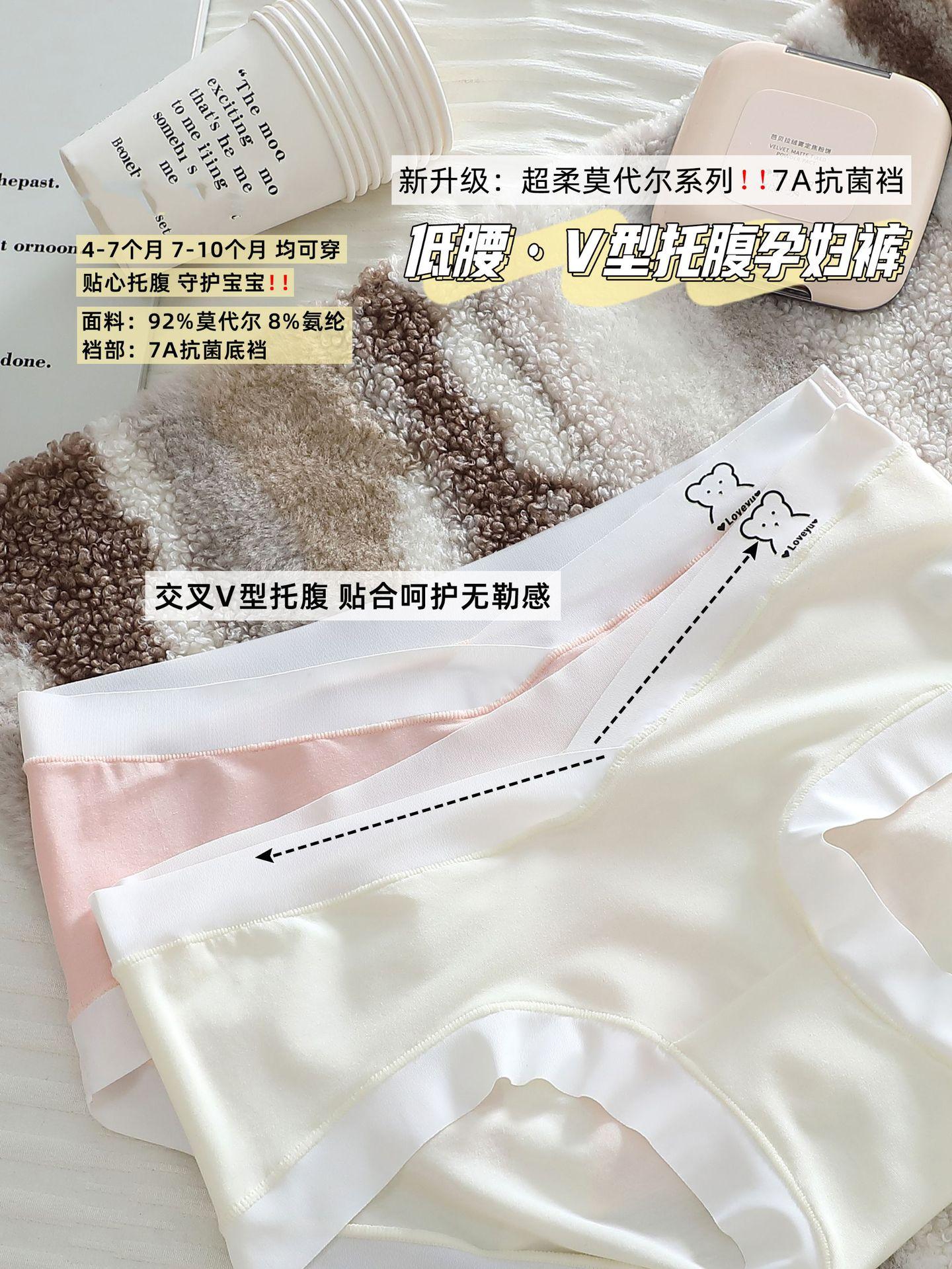 7A Calcinha antibacteriana de algodão puro para gestantes, cintura baixa, respirável, confortável e macia, ideal para gestantes