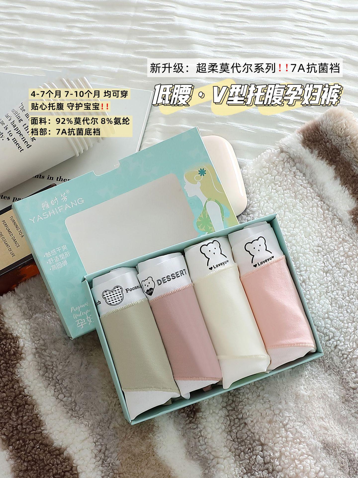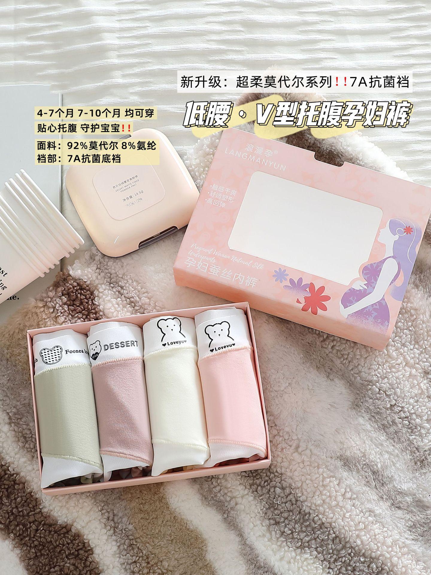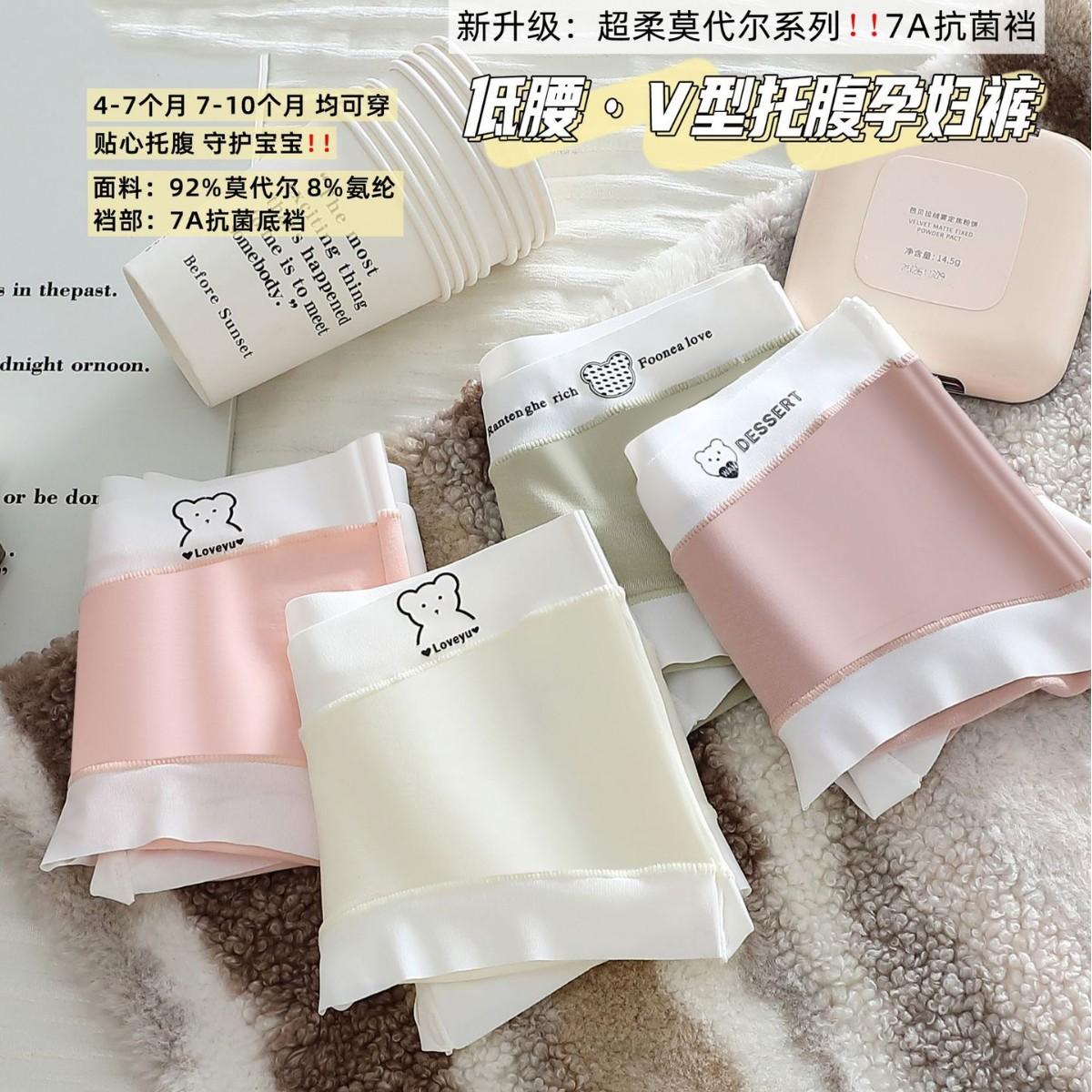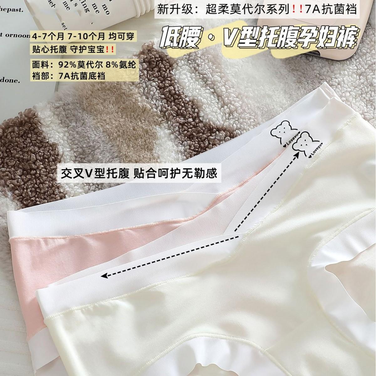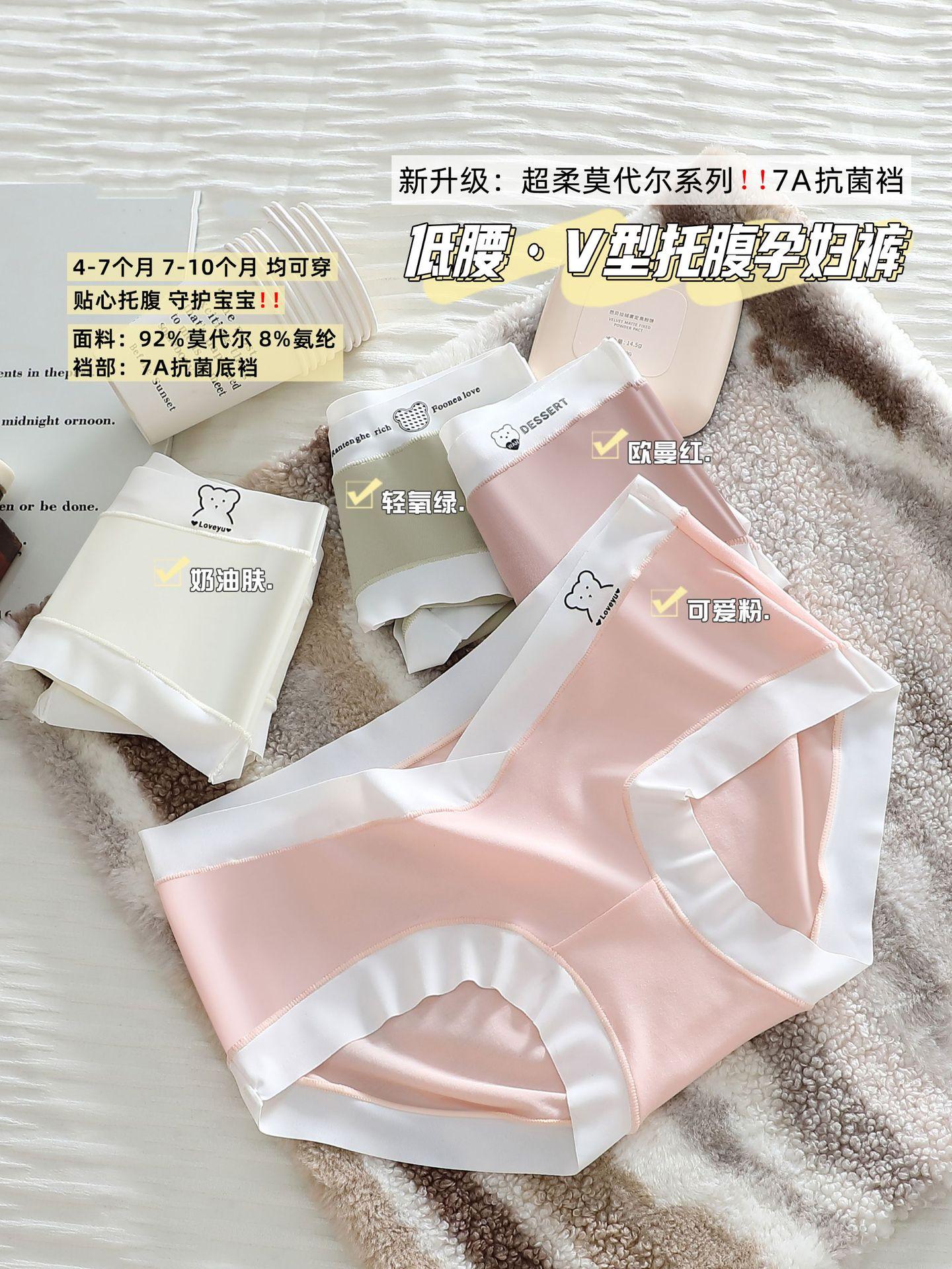 7A Calcinha antibacteriana de algodão puro para gestantes, cintura baixa, respirável, confortável e macia, ideal para gestantes