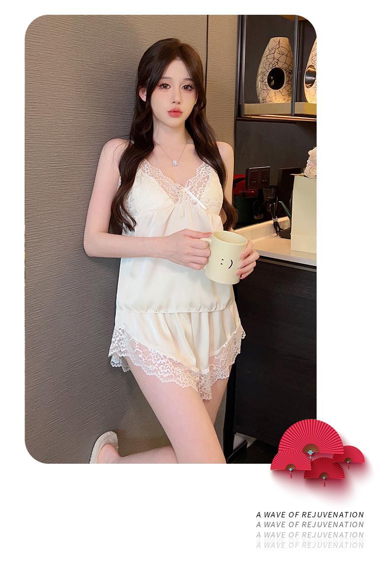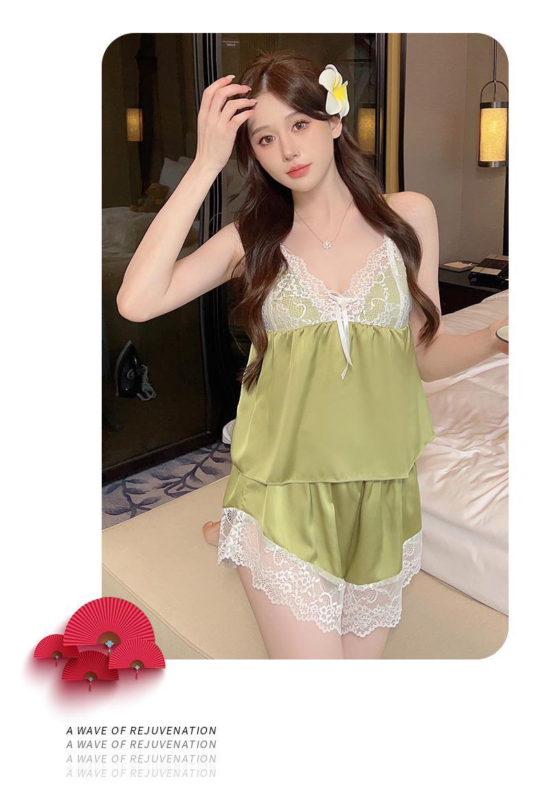 Compre Novo Pijama Feminino Estilo Sexy Conjunto de Três Peças com Bojo Regata Shorts Conjunto Seda Gelo Cetim Renda Renda Pura no atacado no Joom.pro