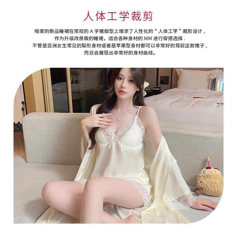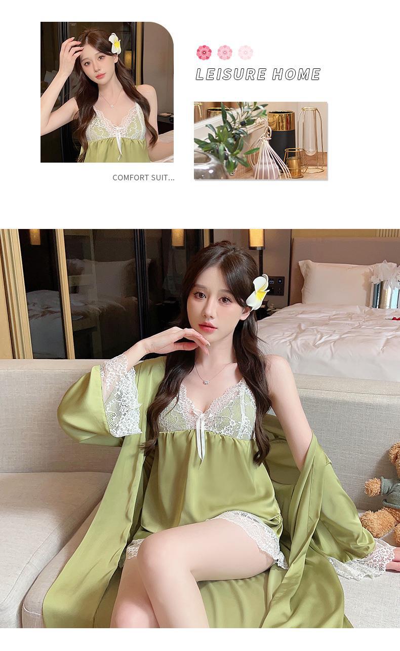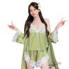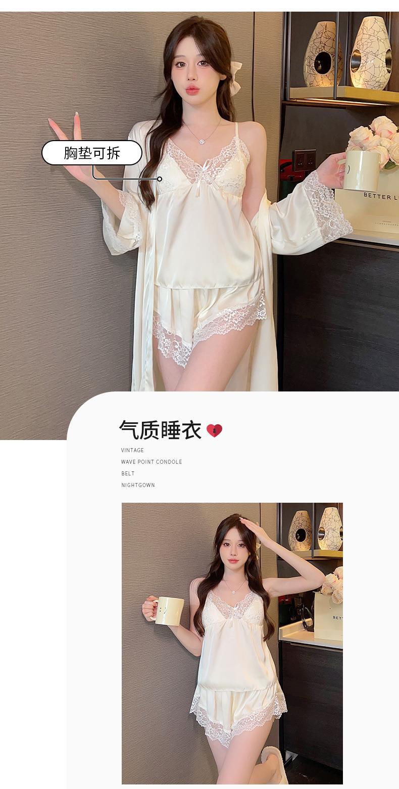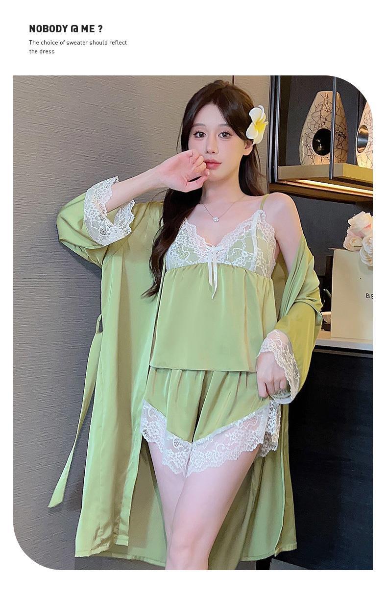 Novo Pijama Feminino Estilo Sexy Conjunto de Três Peças com Bojo Regata Shorts Conjunto Seda Gelo Cetim Renda Renda Pura