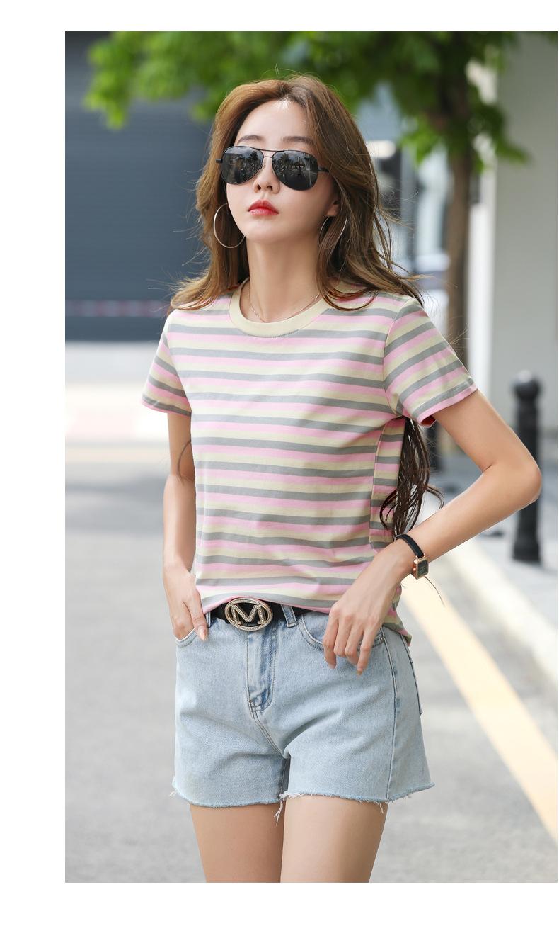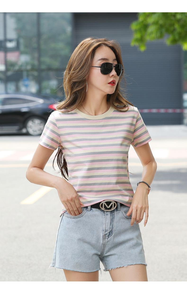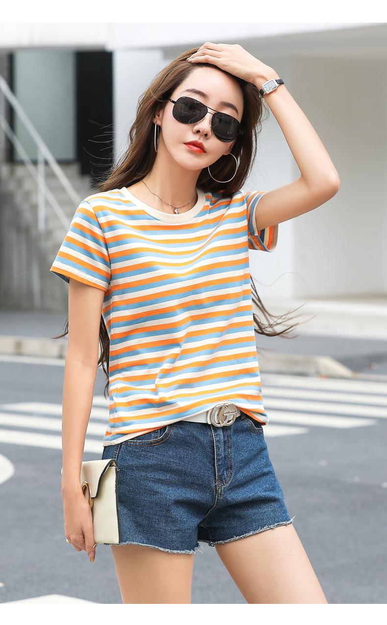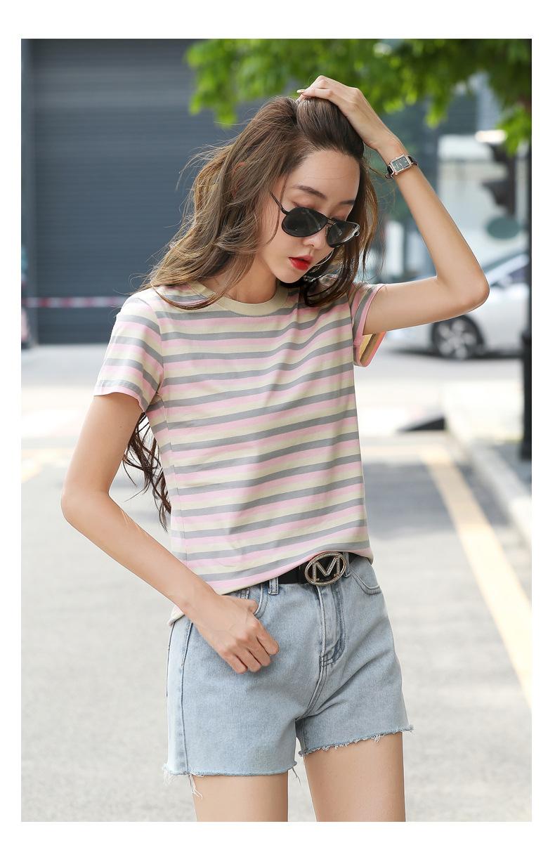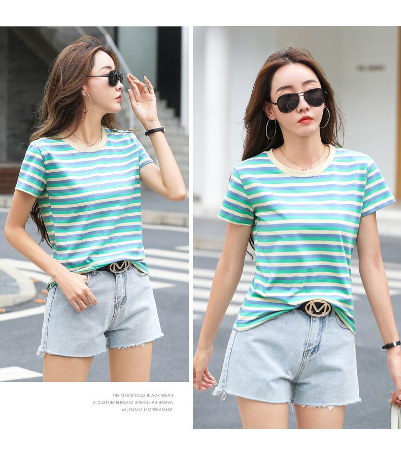 Compre Camiseta Listrada de Manga Curta para Mulheres 2025 Verão Nova Celebridade da Internet Top Slim Solto Camiseta de Manga Curta Camiseta para Usar por Baixo no atacado no Joom.pro