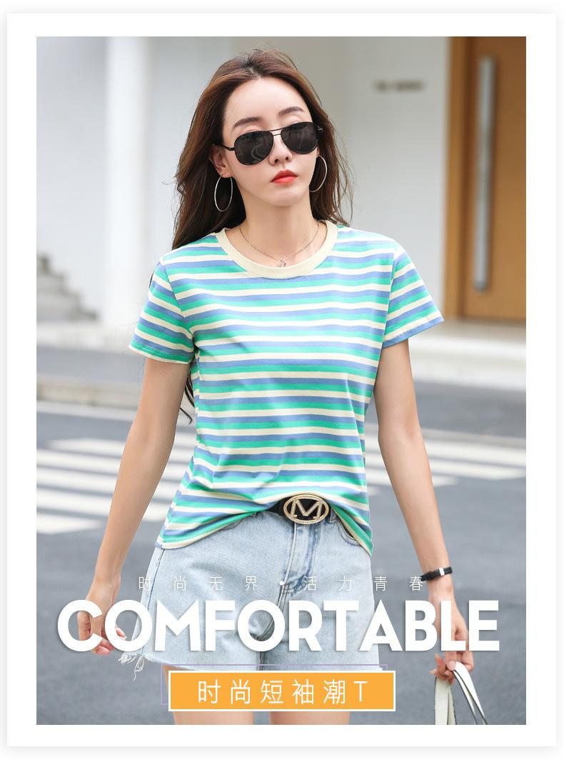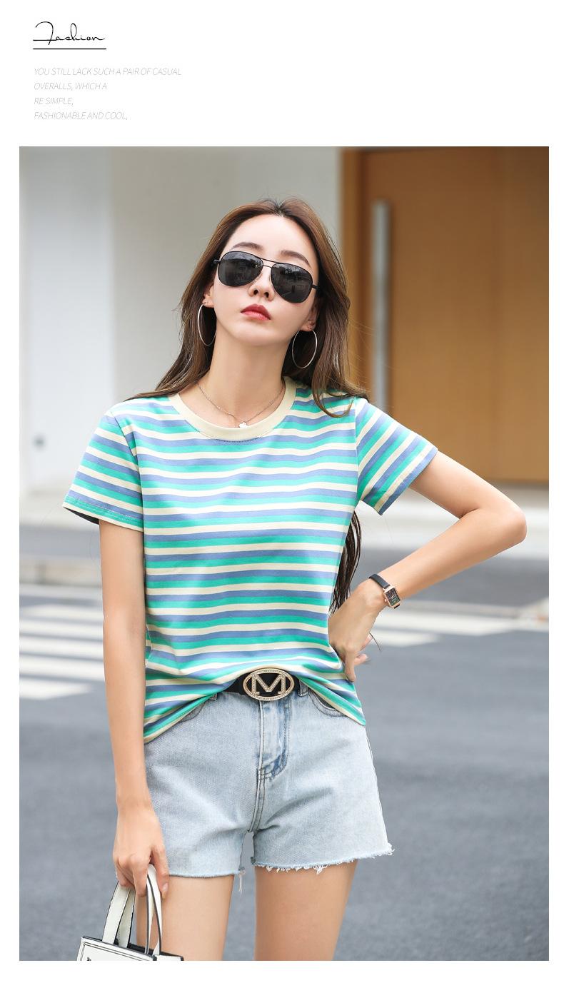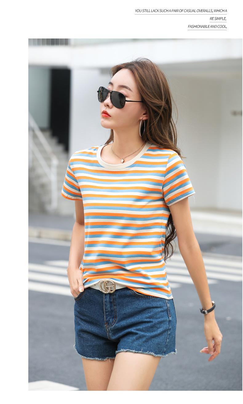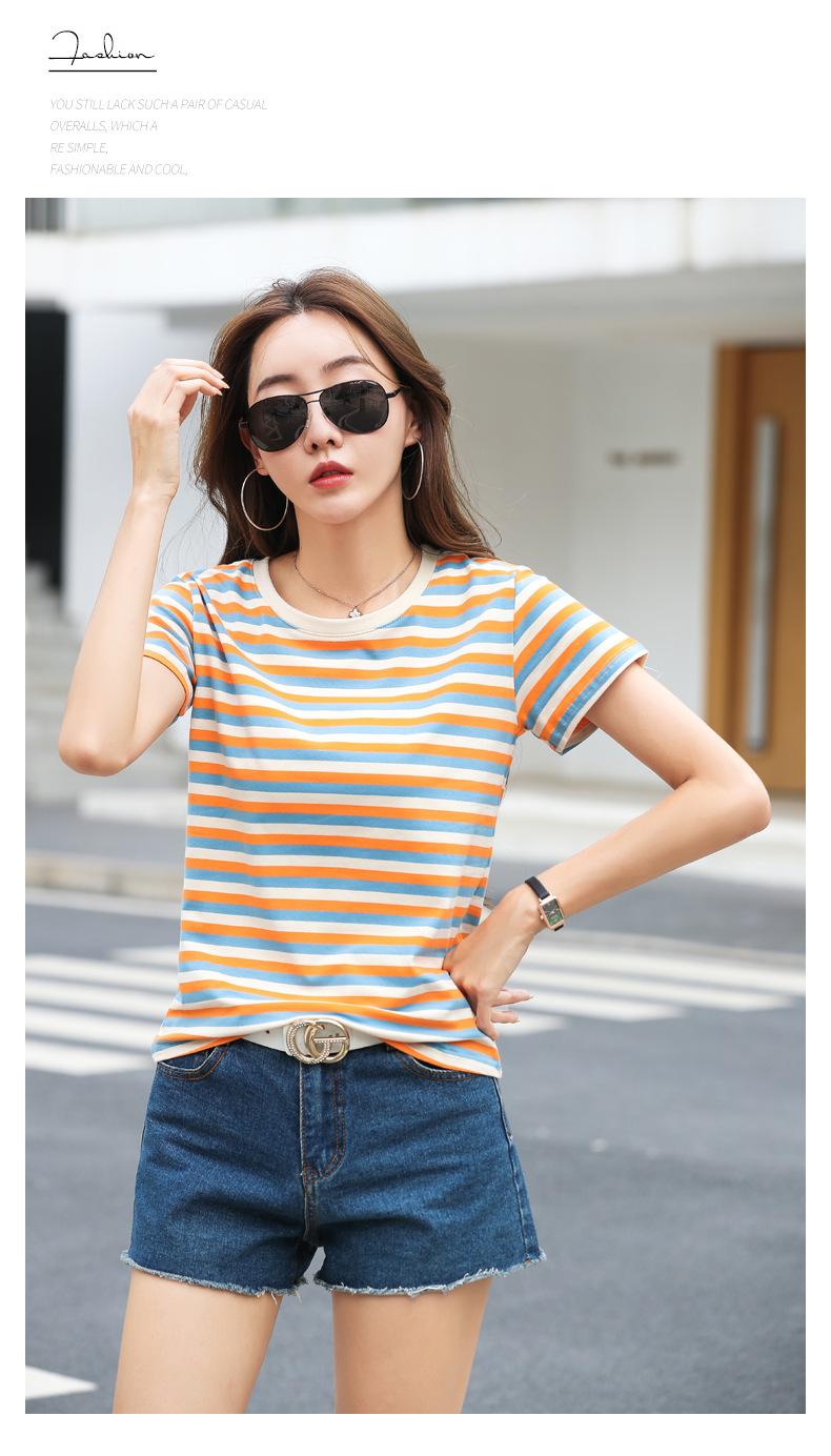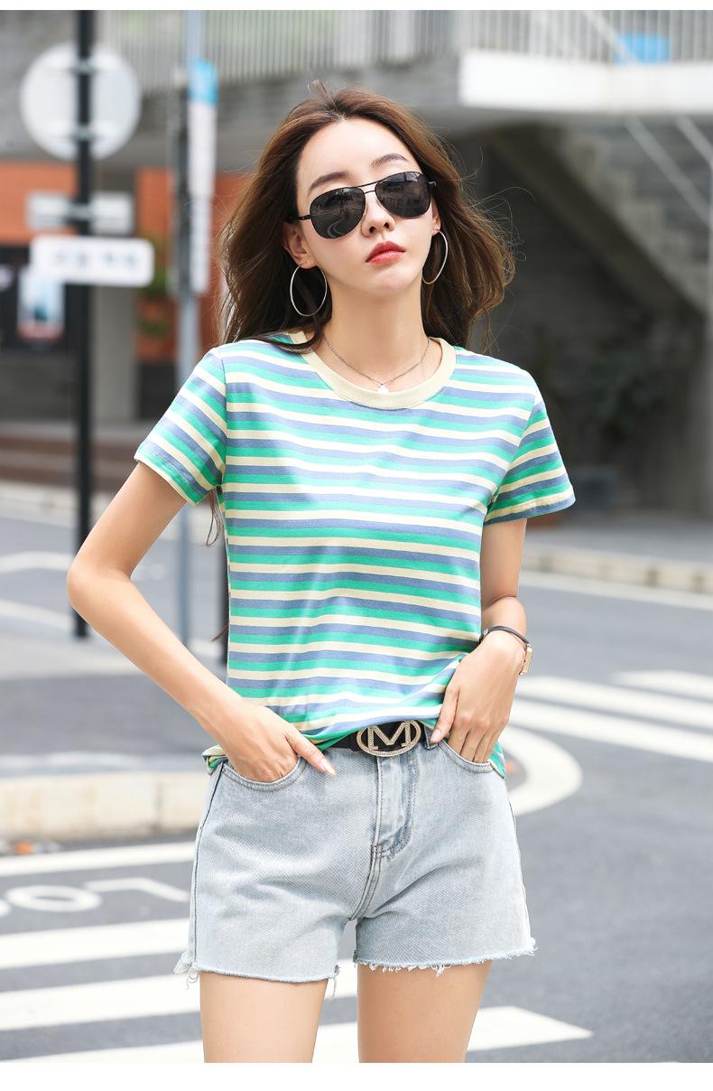 Compre Camiseta Listrada de Manga Curta para Mulheres 2025 Verão Nova Celebridade da Internet Top Slim Solto Camiseta de Manga Curta Camiseta para Usar por Baixo no atacado no Joom.pro