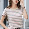Camiseta Listrada de Manga Curta para Mulheres 2025 Verão Nova Celebridade da Internet Top Slim Solto Camiseta de Manga Curta Camiseta para Usar por Baixo