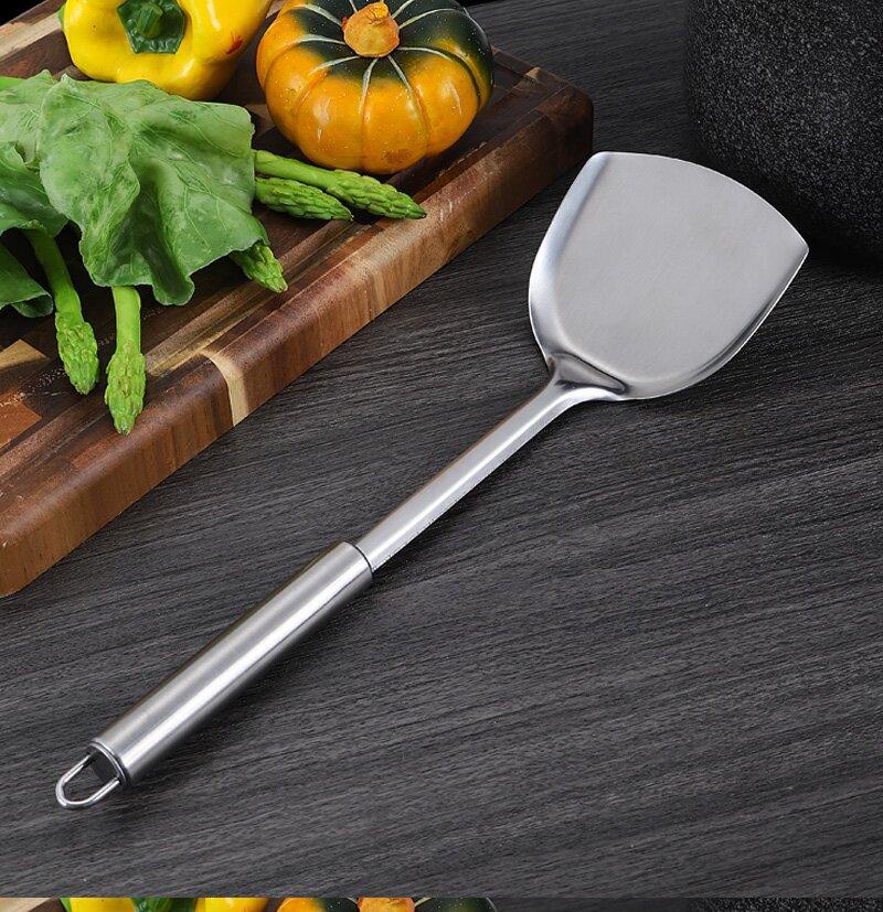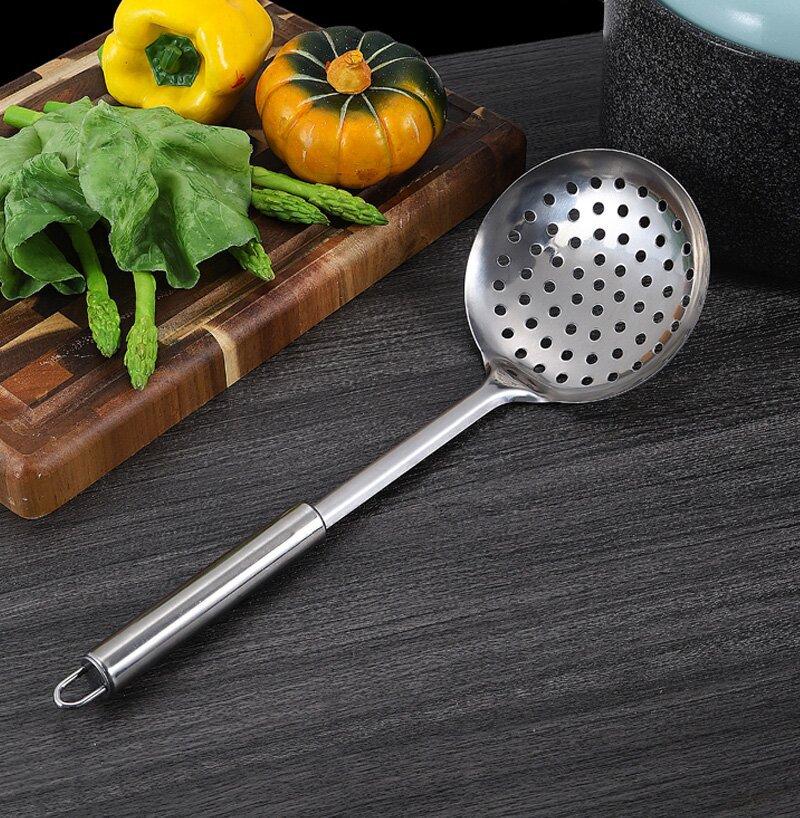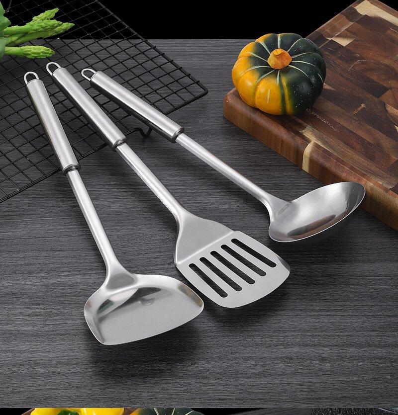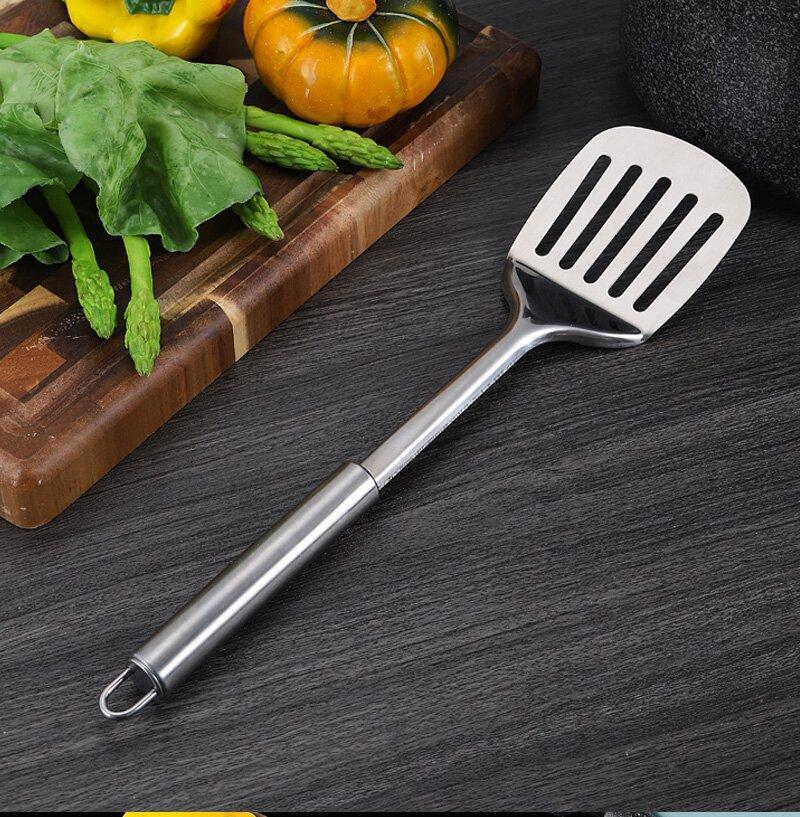 Fábrica direta espátula escorredor colher de aço inoxidável atacado colher para fritar colher para fritar pá panela quente colher utensílios de cozinha conjunto espátula colher dreno