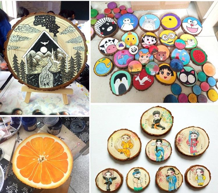 Pedaços de madeira Pilha de madeira maciça Peças de madeira artesanais DIY Materiais de pintura de jardim de infância Fundo decorativo Parede Peças de madeira redondas Anéis anuais