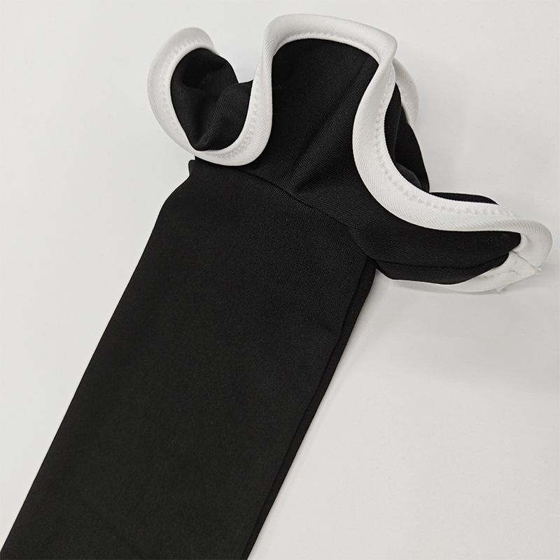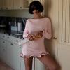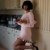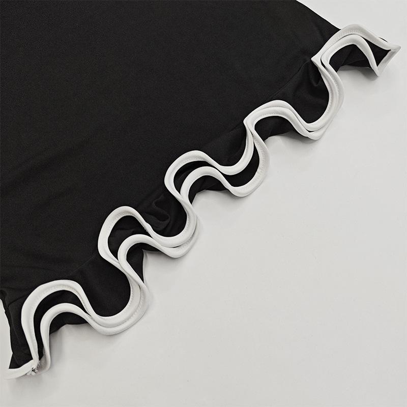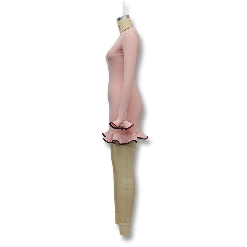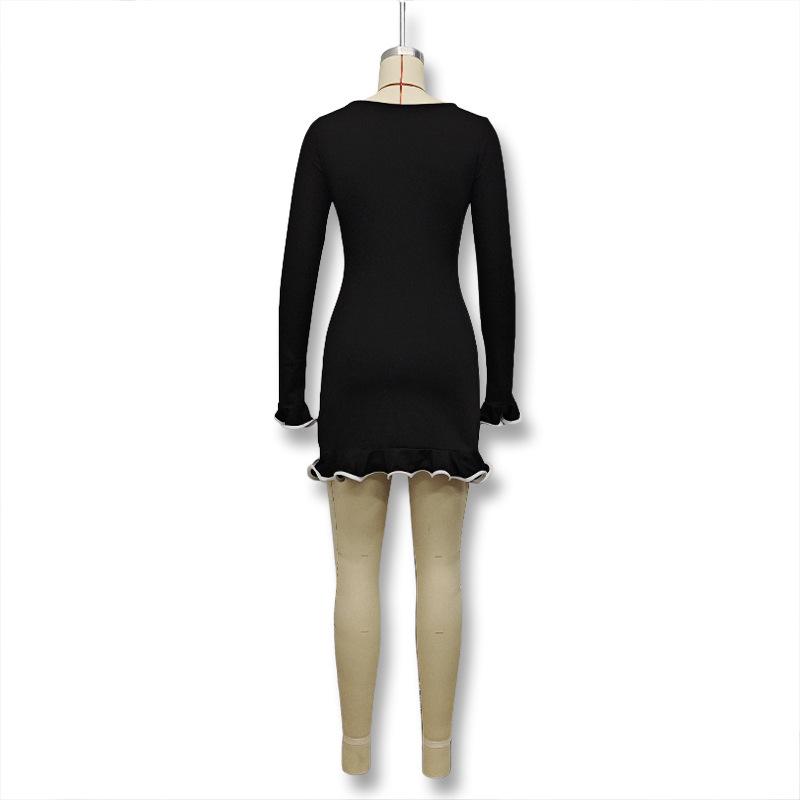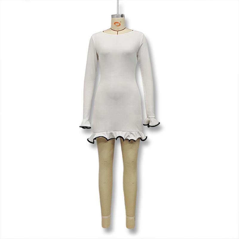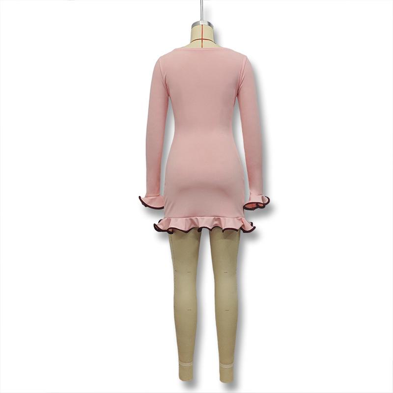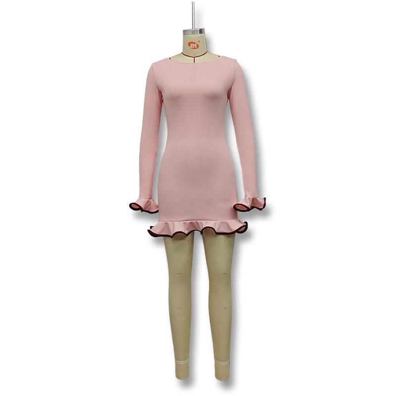 Cross-border Amazon Outono e Inverno Novo Europeu e Americano Feminino Elegante Cor Sólida Gola Redonda Manga Longa Slim Fit Vestido Babados Feminino