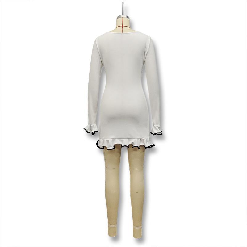Amazon Outono Novo Mais Vendido Transfronteiriço Temperamento Feminino Abotoamento Simples Evasê Manga Longa Emagrecimento Vestido Babado