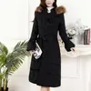 Inverno Feminino Nova Moda Elegante Fino Pelo de Guaxinim Comprimento Médio Engrossado Grande Gola de Lã Jaqueta de Penas Primavera Som