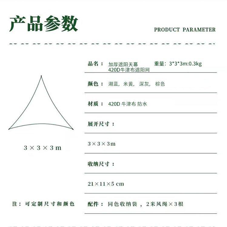 Guarda-sol de vela transfronteiriça, toldo de acampamento ao ar livre, protetor solar, à prova de chuva, pátio multifuncional, 420D, toldo triangular, vela