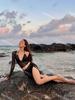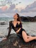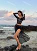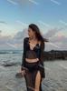 Nova Perspectiva Sexy Preto Mangas Compridas Quatro Peças Biquíni Dividido Maiô Saia Feminina Praia Férias Biquíni