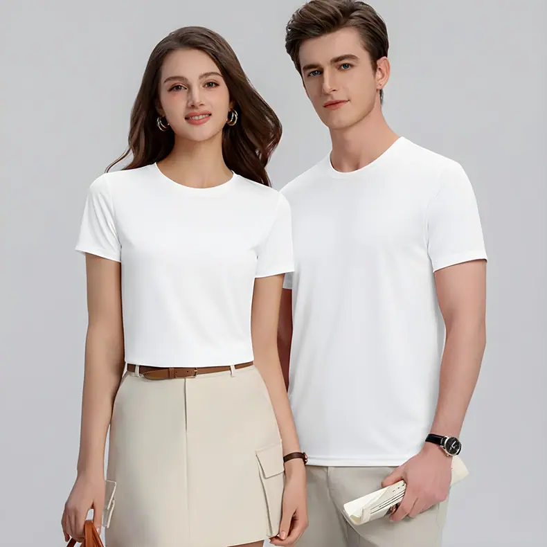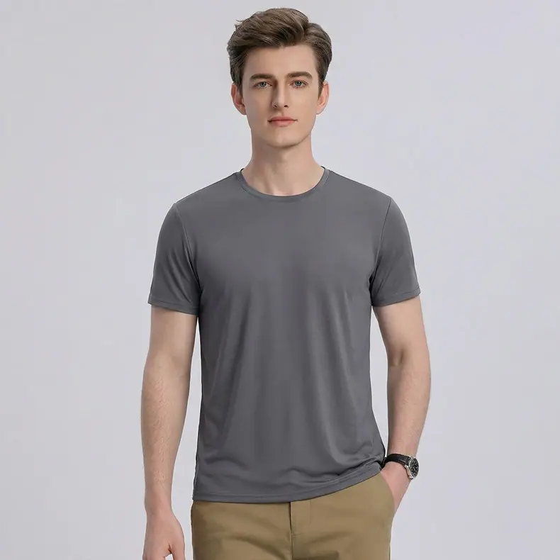 Roupas de manga curta de secagem rápida para mulheres, verão, seda gelada, corrida, esportes ao ar livre, montanhismo solto, absorvente de suor, camiseta de gola redonda, top para homens
