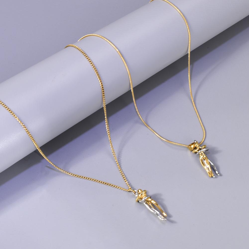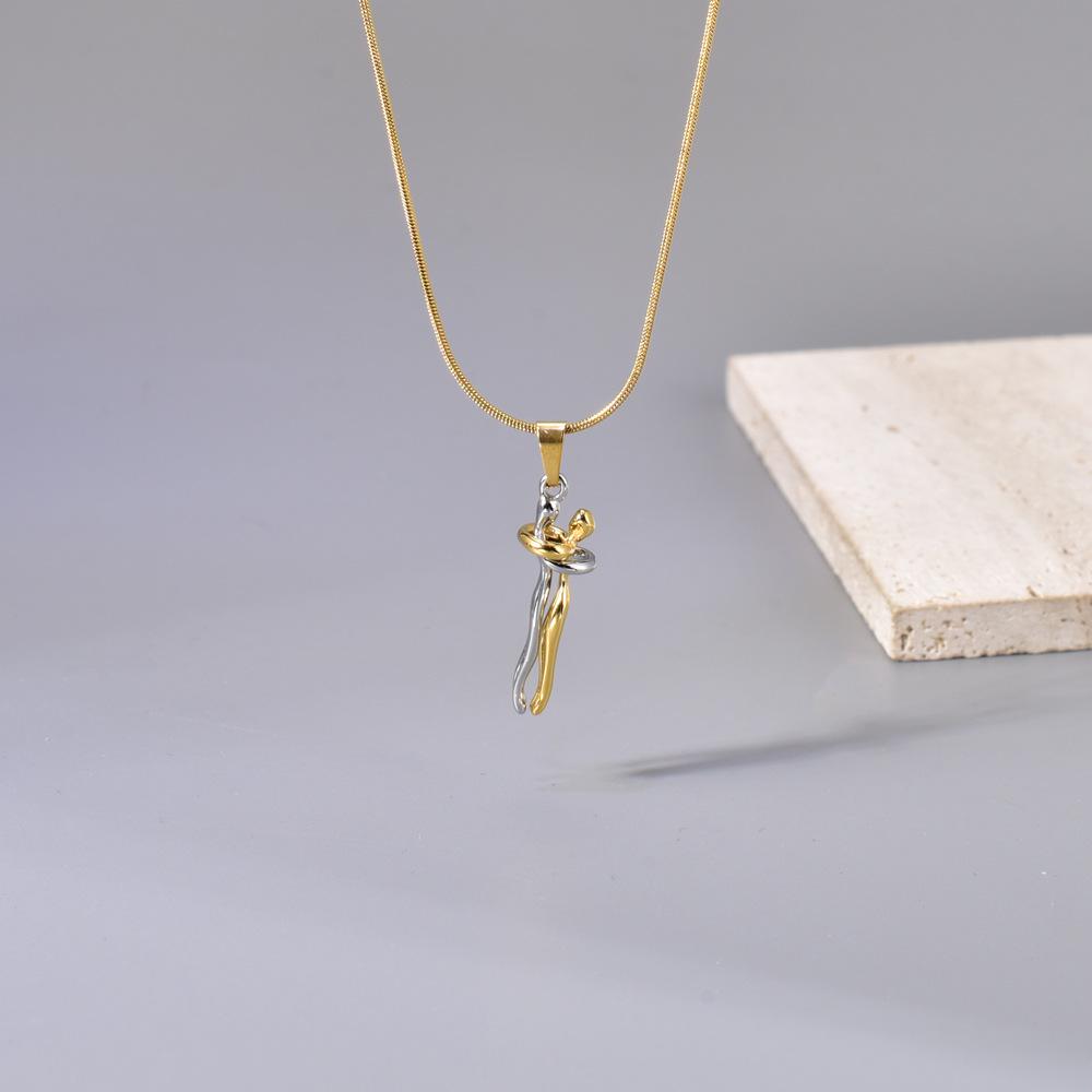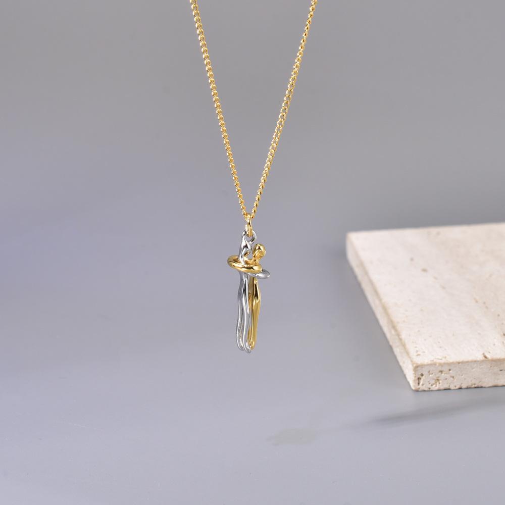 L234 Explosões Transfronteiriças Personalidade Abraço Colar de Ouro 18K Criativo Meninos e Meninas Abraço Casal Pingente Colar