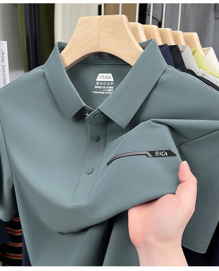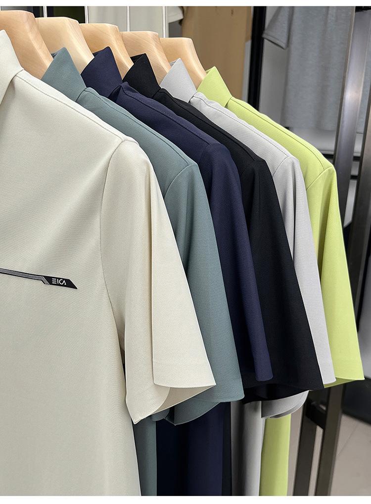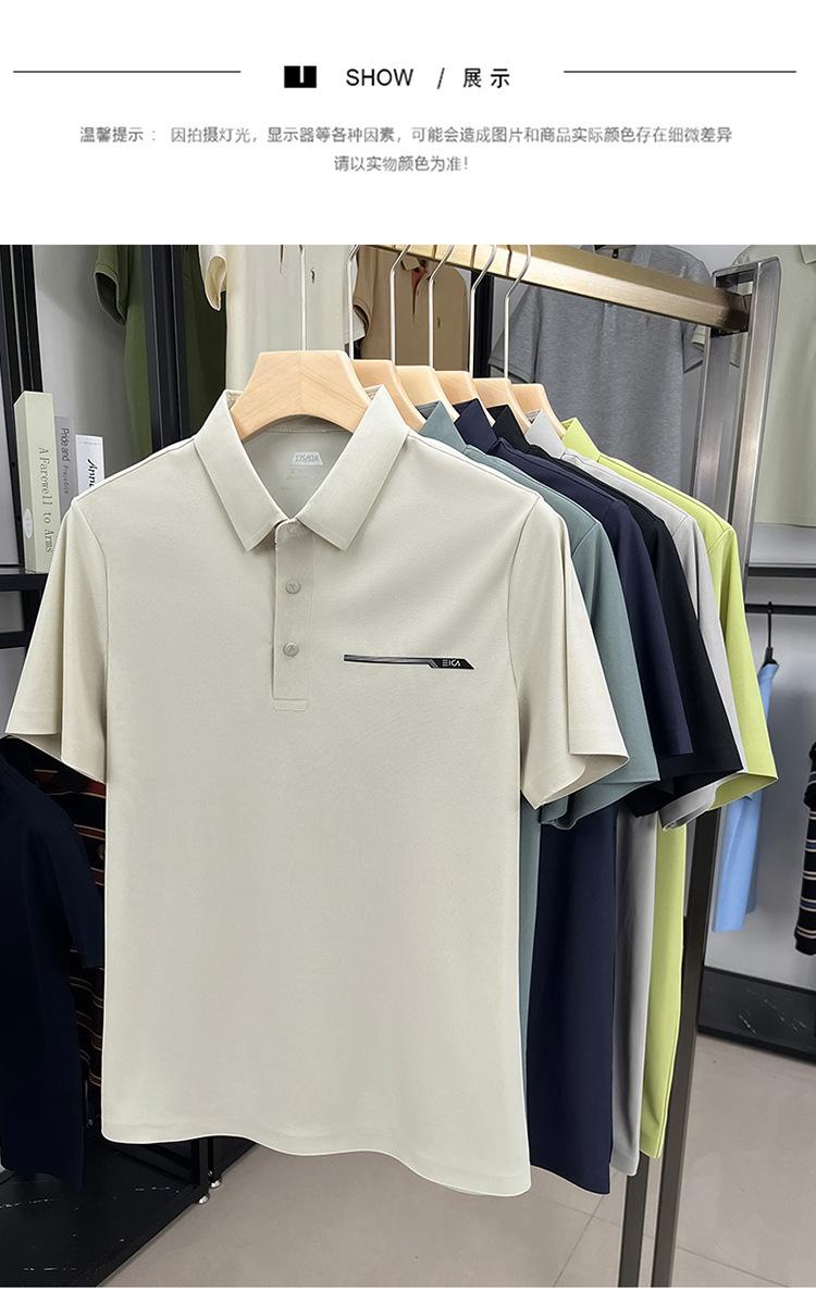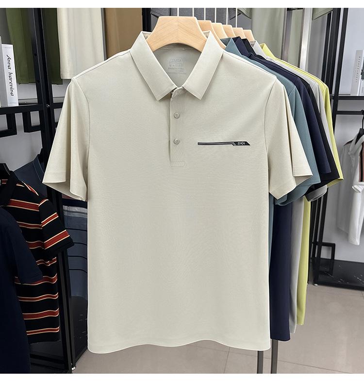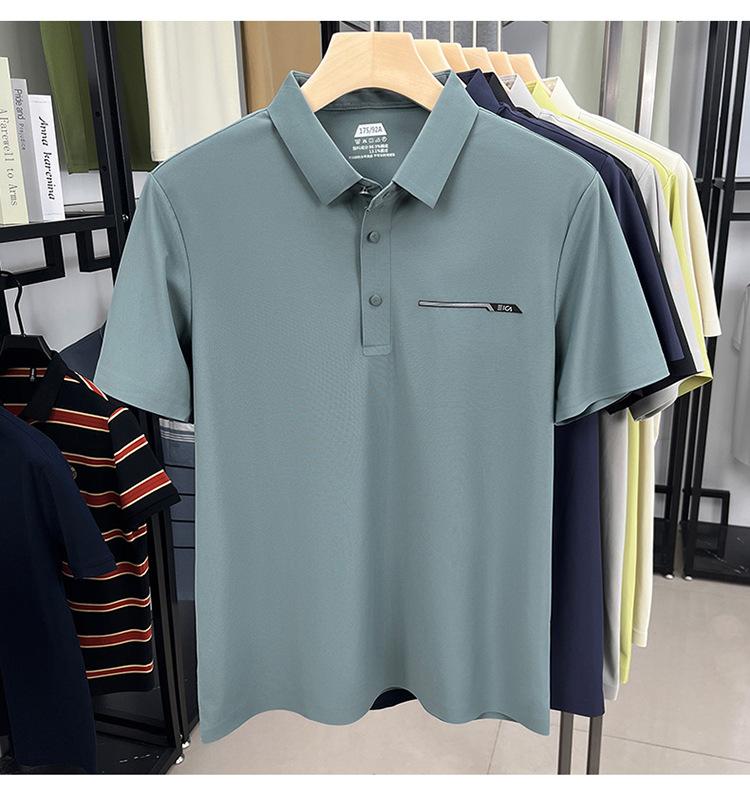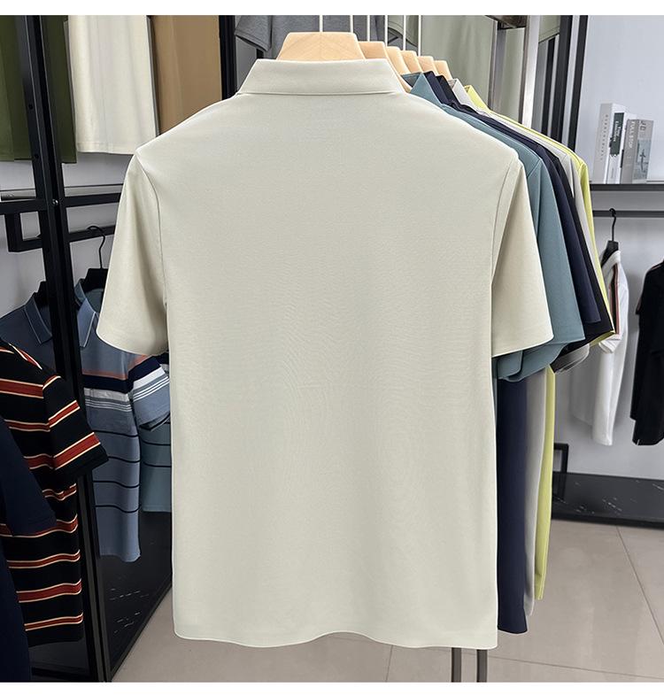 2025 Nova Camisa Polo Masculina de Verão de Meia-idade Cor Sólida Negócios Casual Coreano Solto Camiseta de Manga Curta T