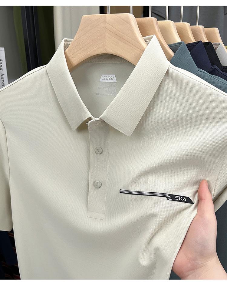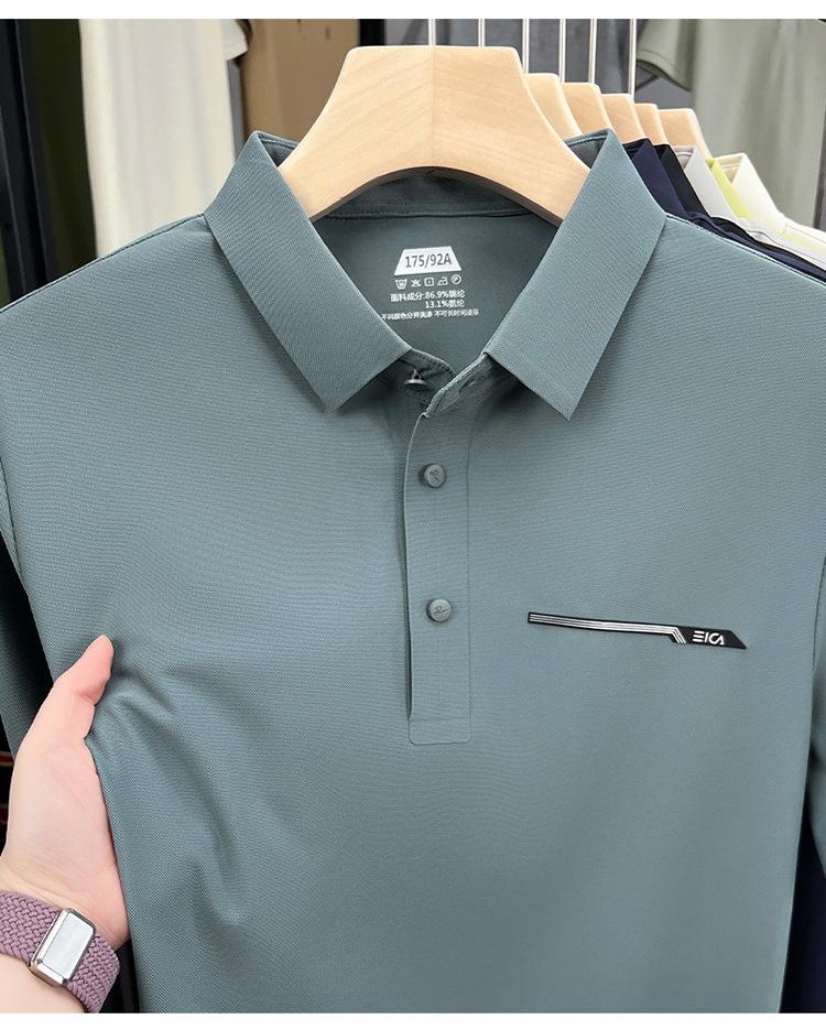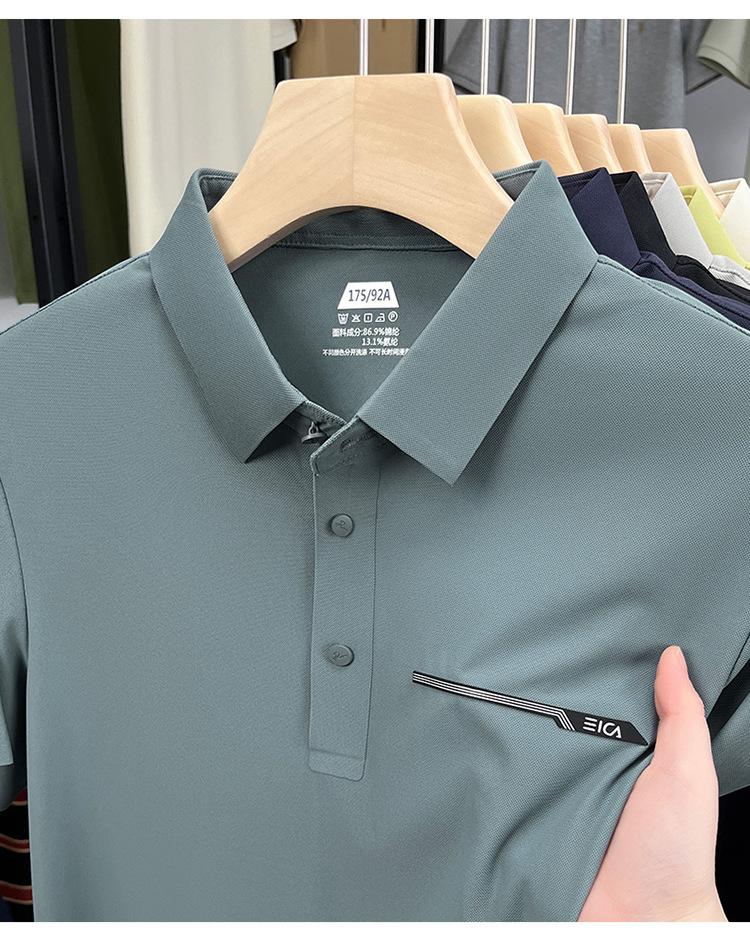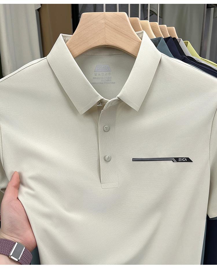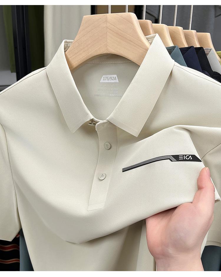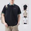 2025 Nova Camisa Polo Masculina de Verão de Meia-idade Cor Sólida Negócios Casual Coreano Solto Camiseta de Manga Curta T