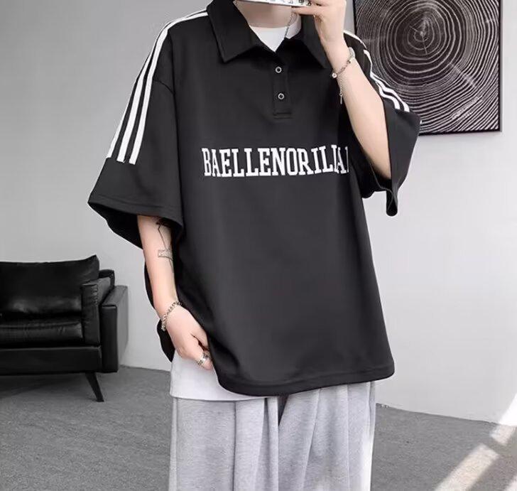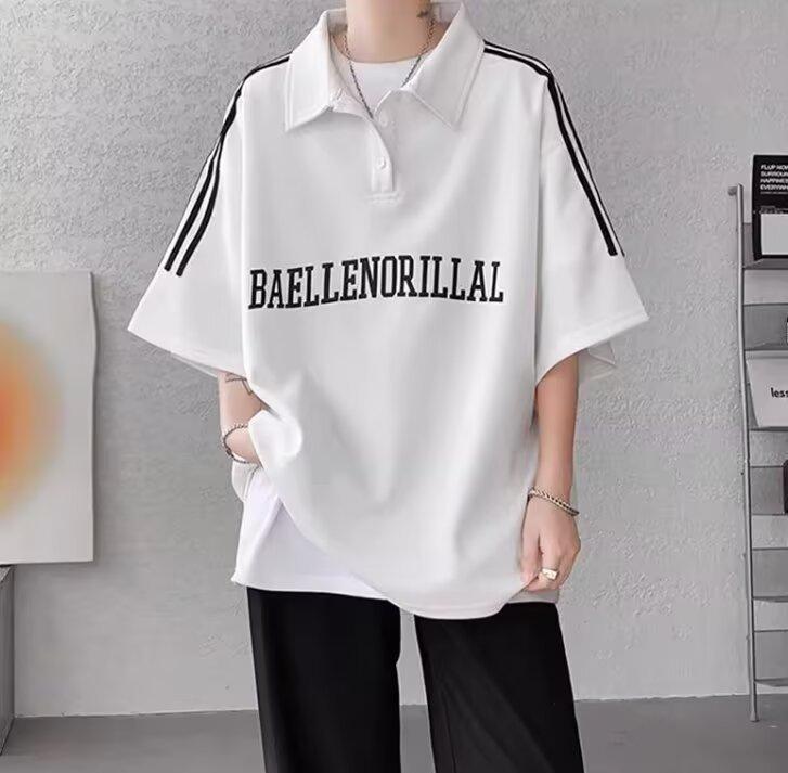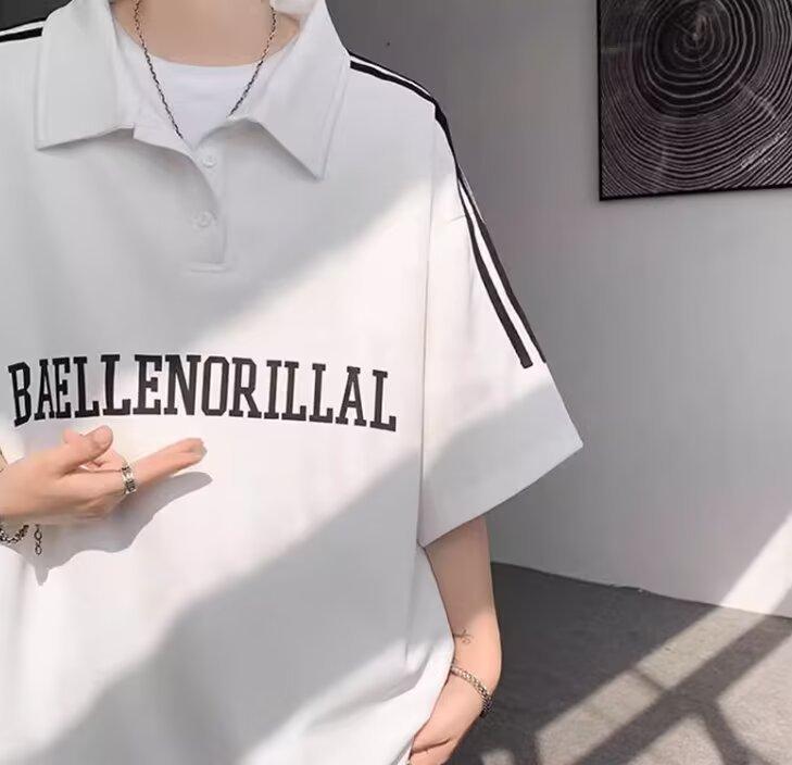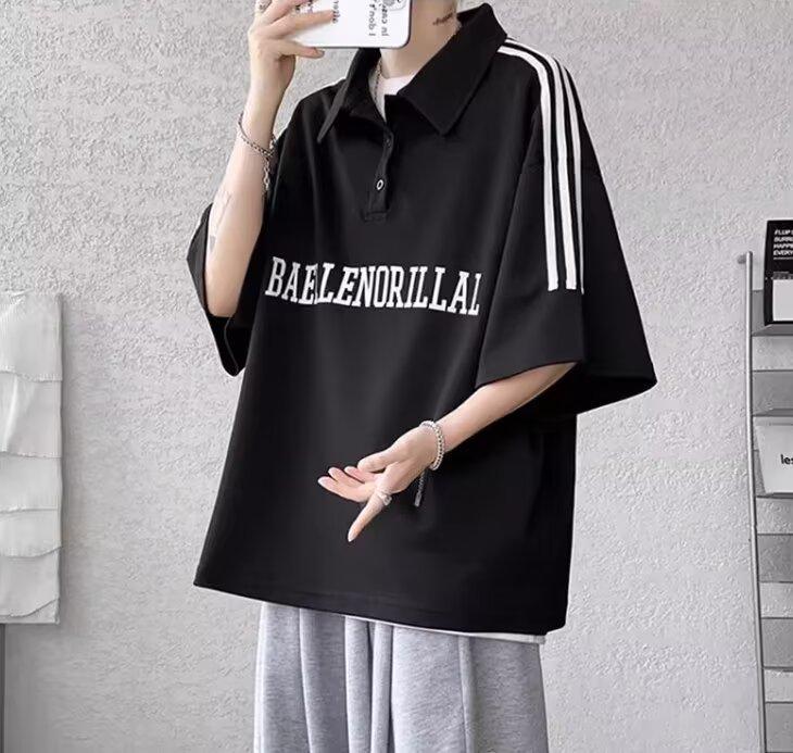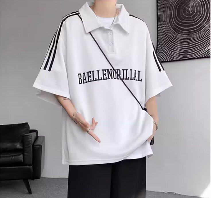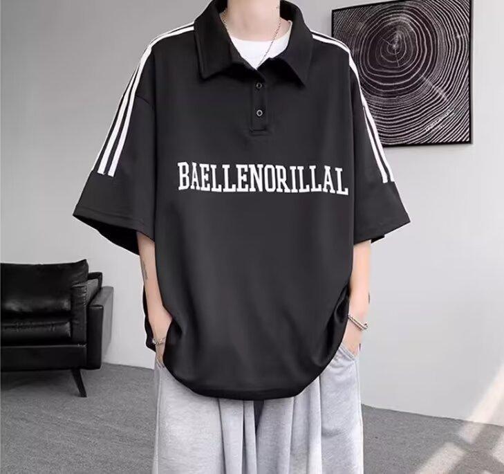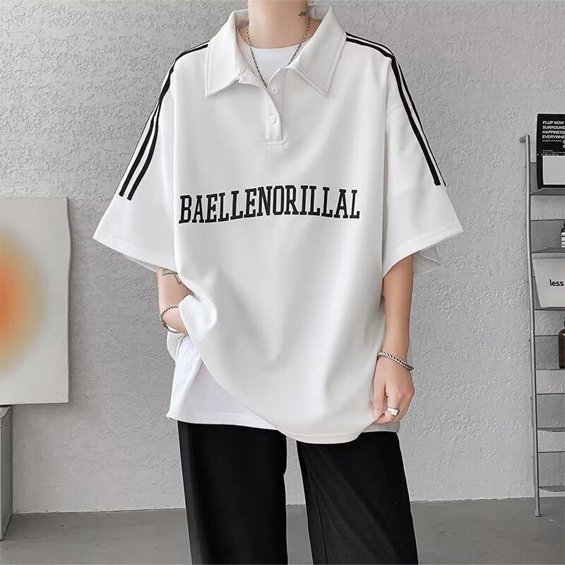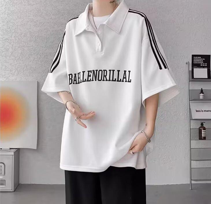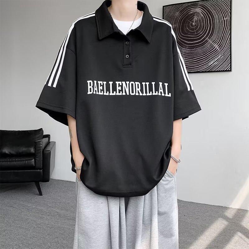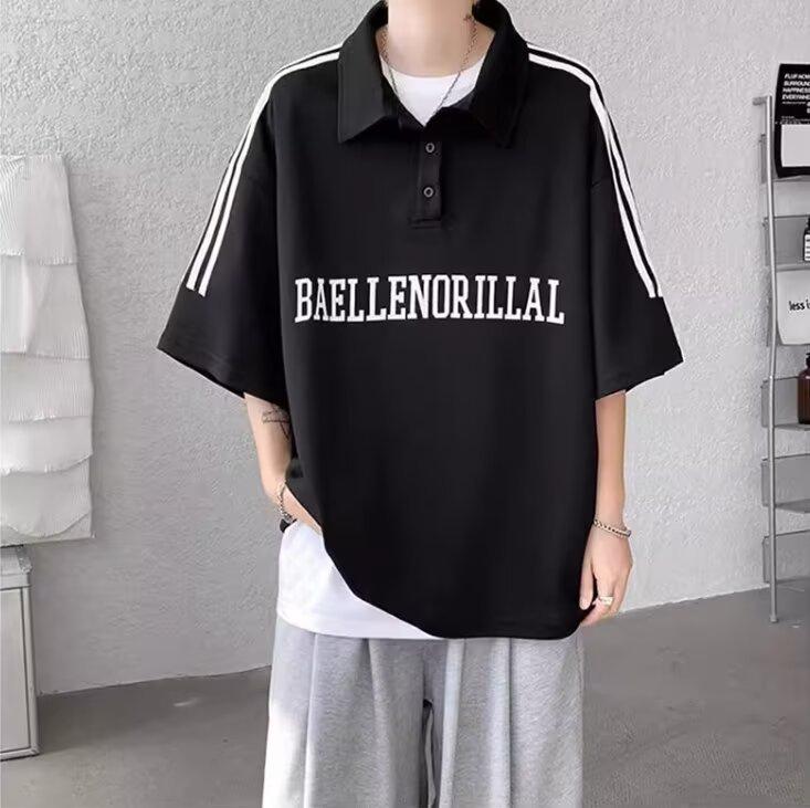 Compre 2025 verão comércio exterior nova carta simples impressão manga curta masculina retro POLO três barras manga raglan T-shirt homens no atacado no Joom.pro