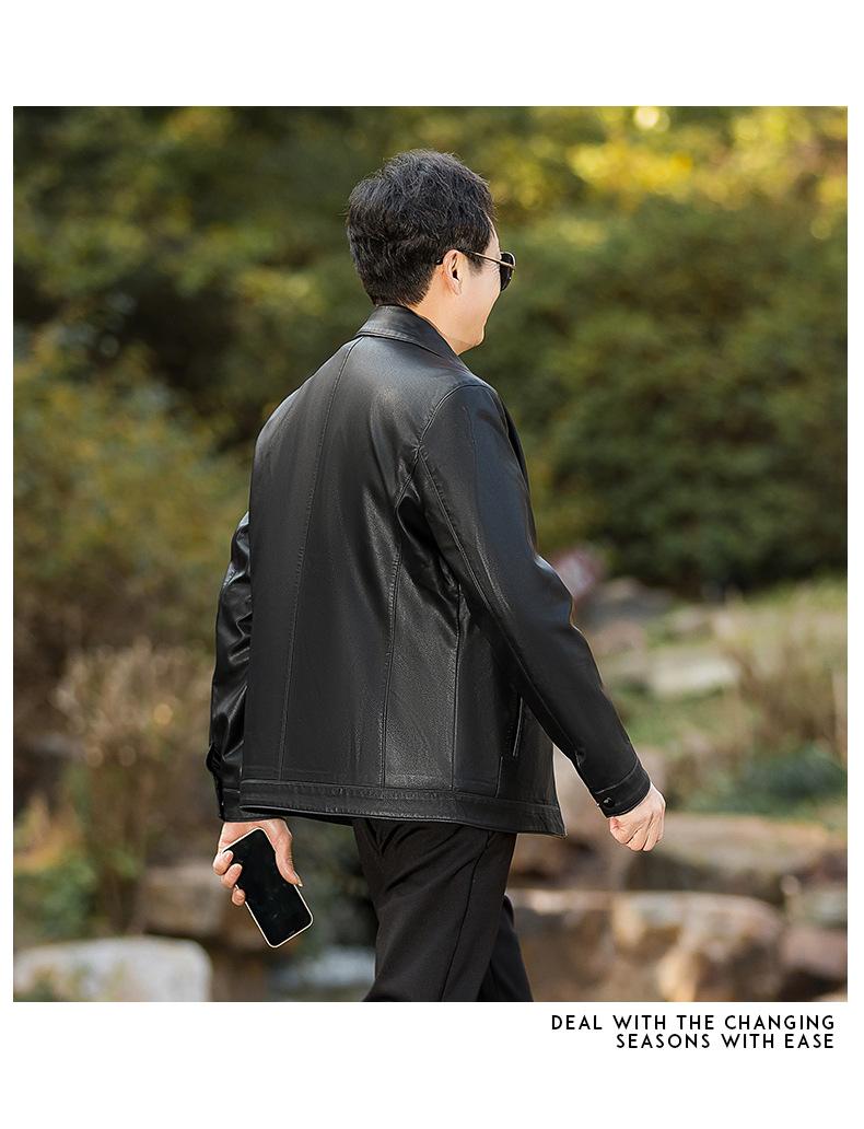 Jaqueta de Couro Fina de Lapela Nova para Primavera e Outono 2025 Roupas Masculinas para Homens de Meia-Idade e Idosos 50 e 60-70 Jaqueta de Pai