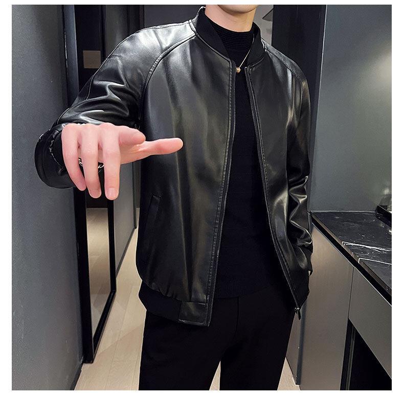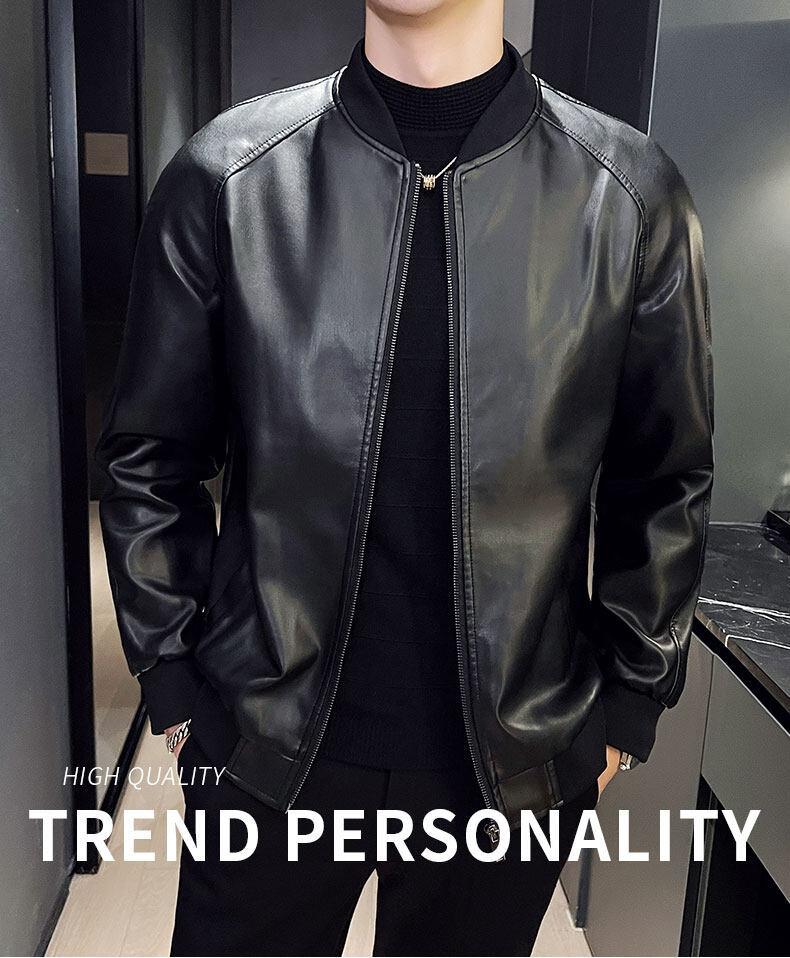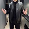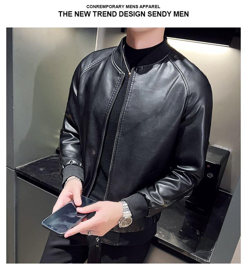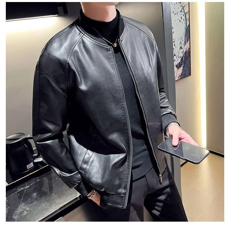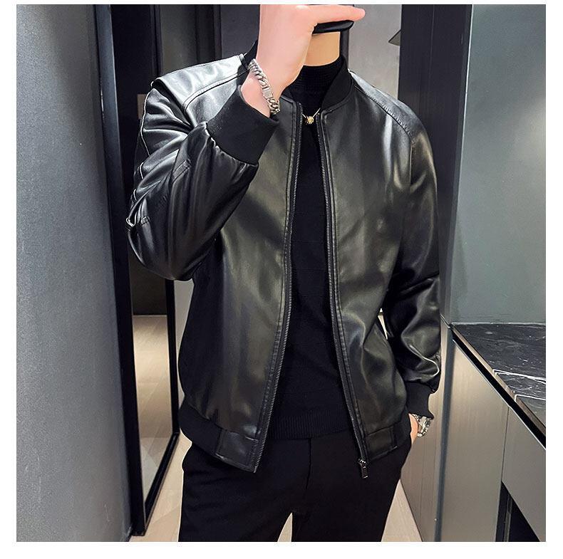 Nova jaqueta de couro masculina primavera e outono gola vertical única jaqueta de couro moda estampada motocicleta masculina elegante e bonita