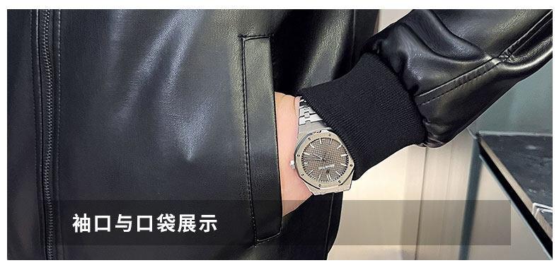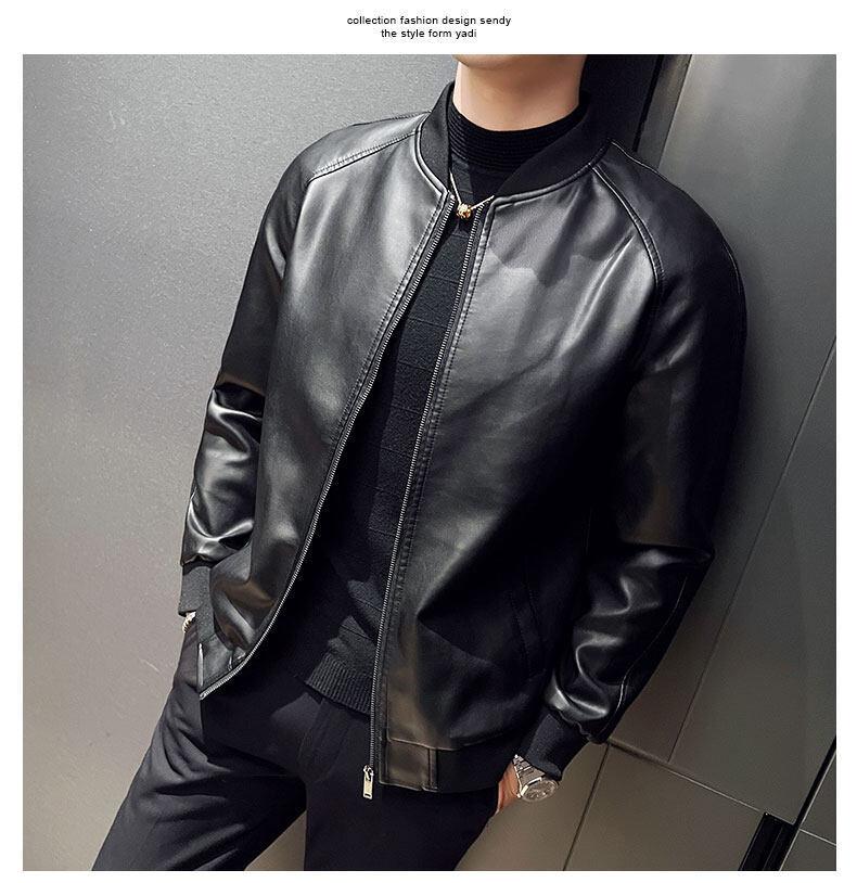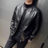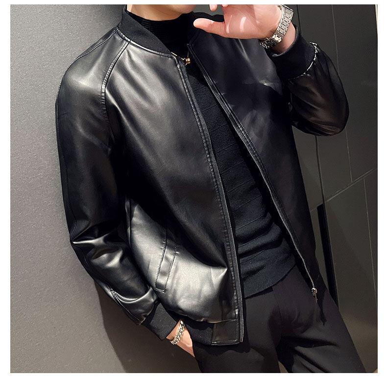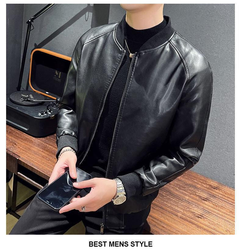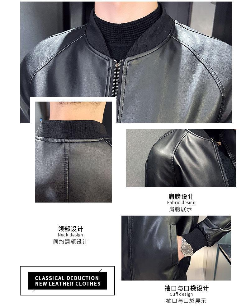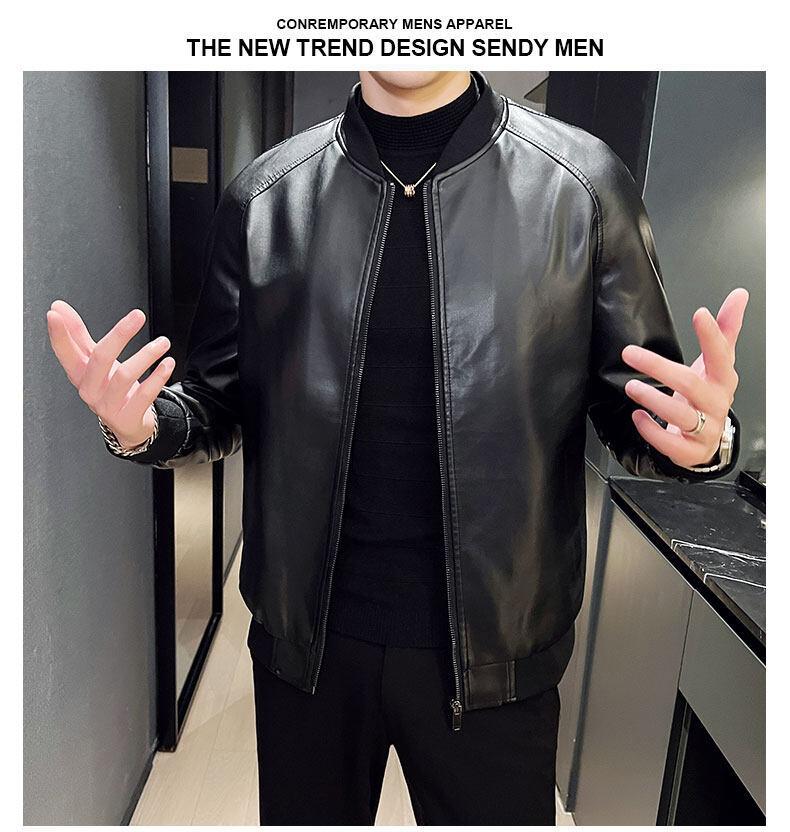 Nova jaqueta de couro masculina primavera e outono gola vertical única jaqueta de couro moda estampada motocicleta masculina elegante e bonita