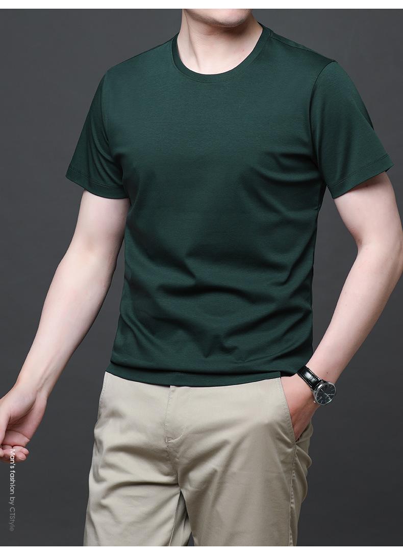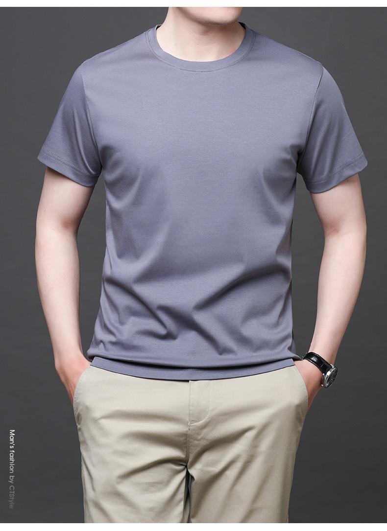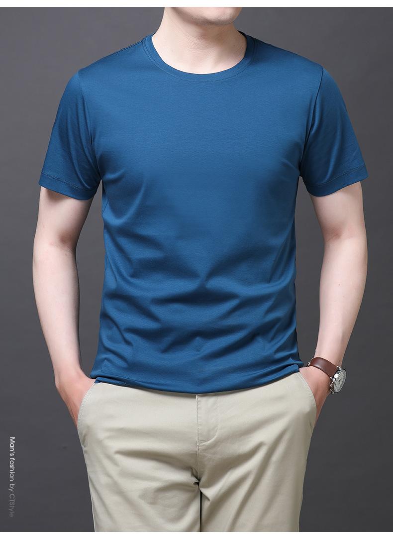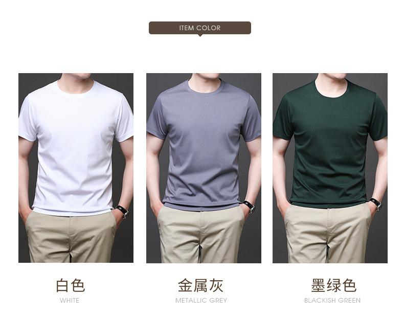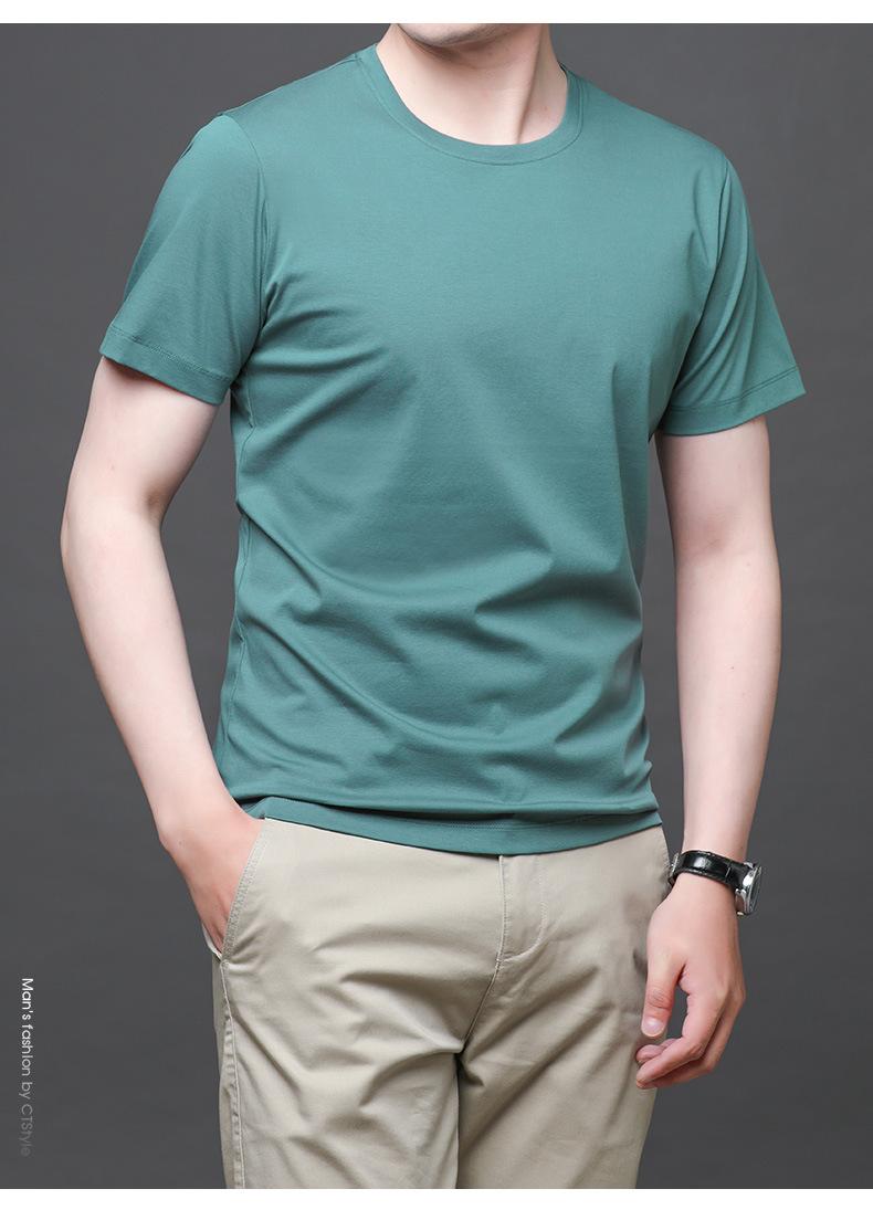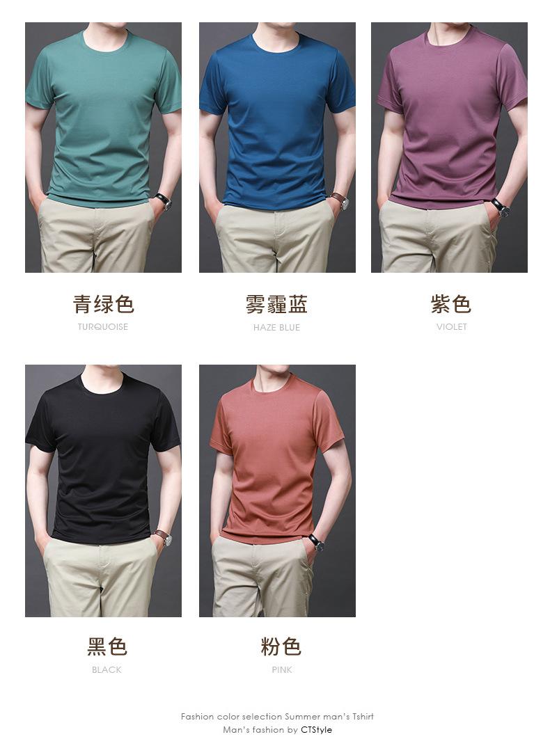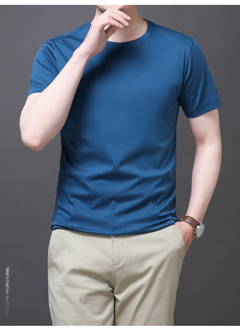 25 nova camiseta de algodão mercerizado verão gola redonda manga curta masculina cor sólida seda gelo casual algodão masculino meia manga top