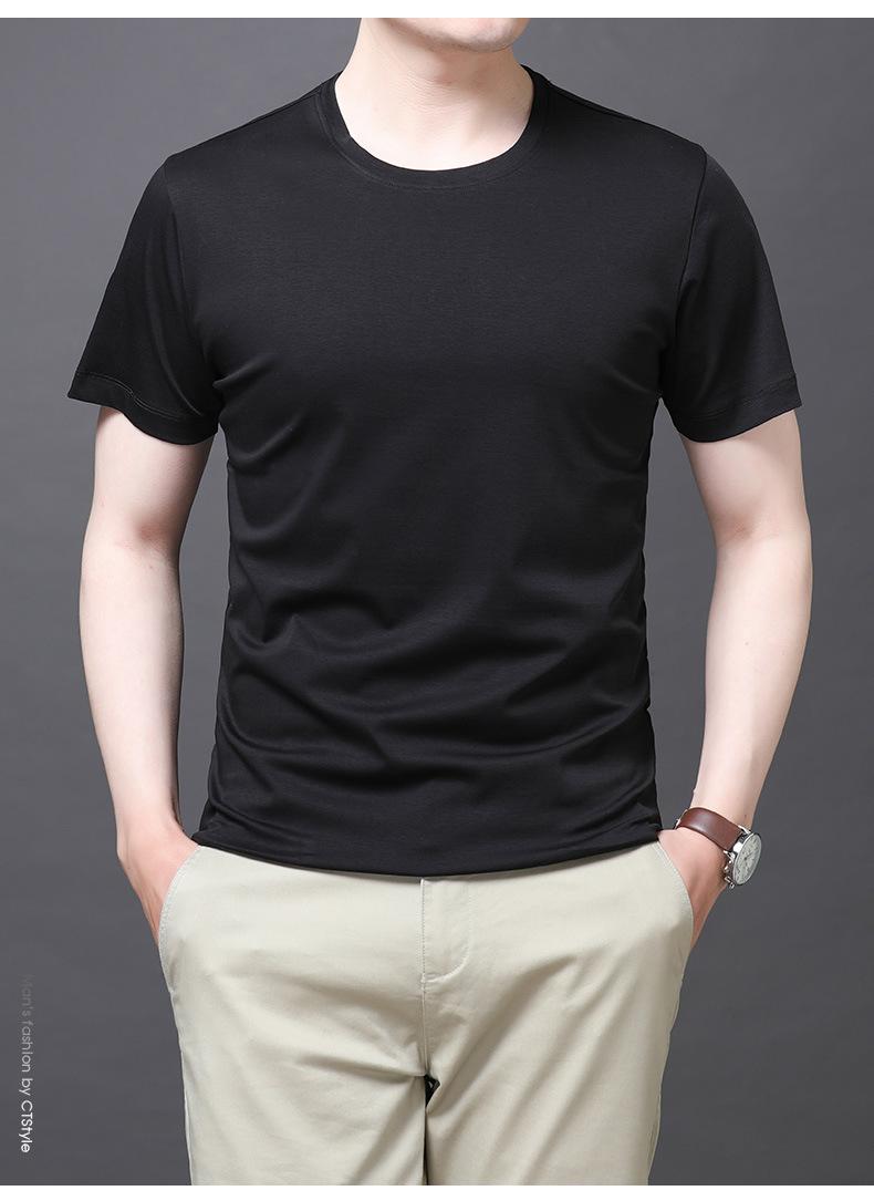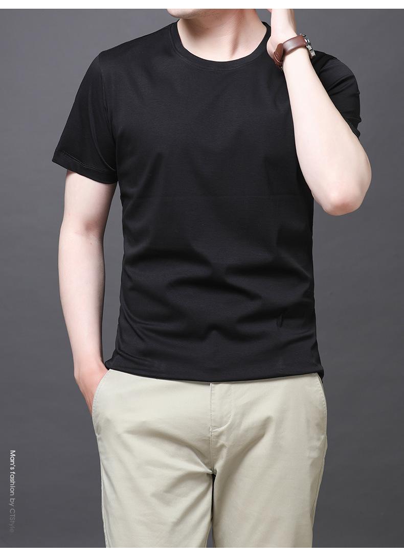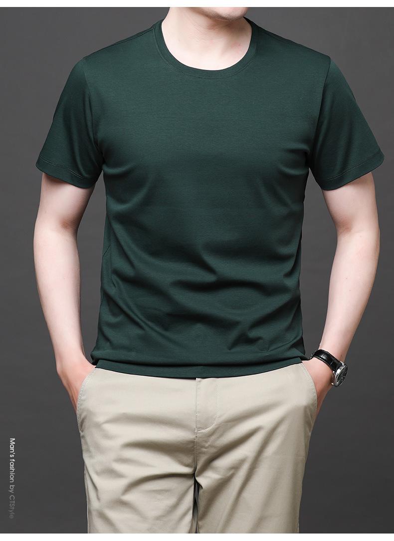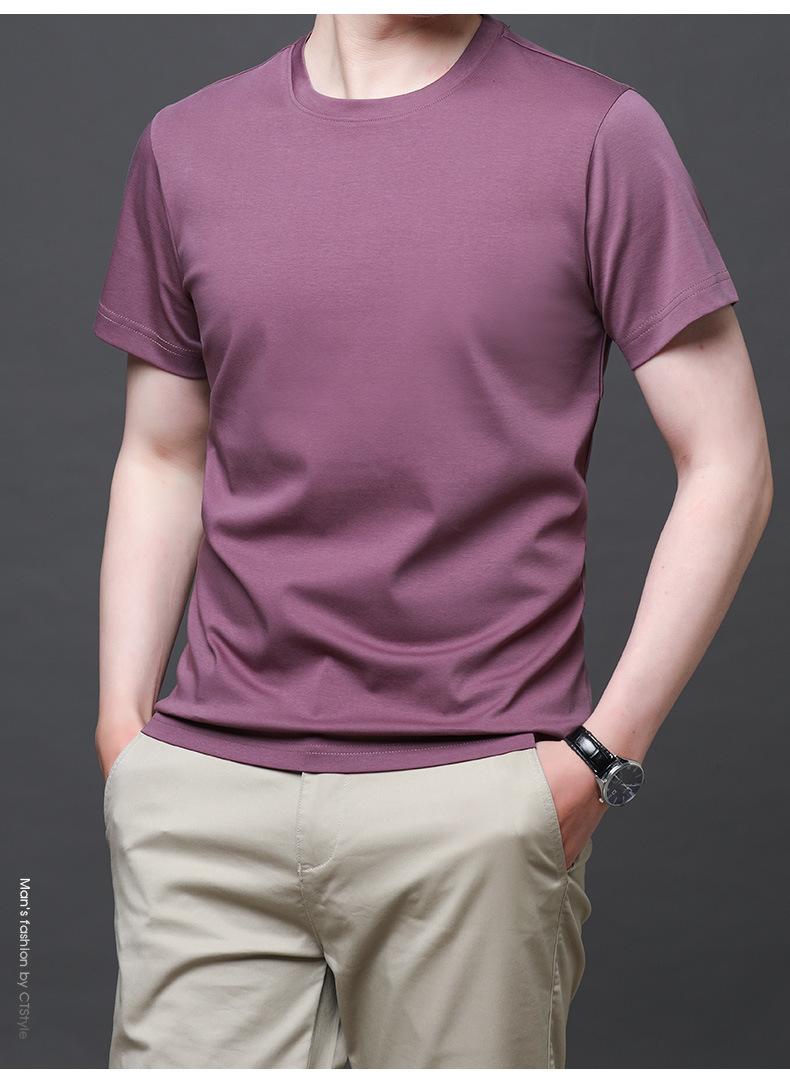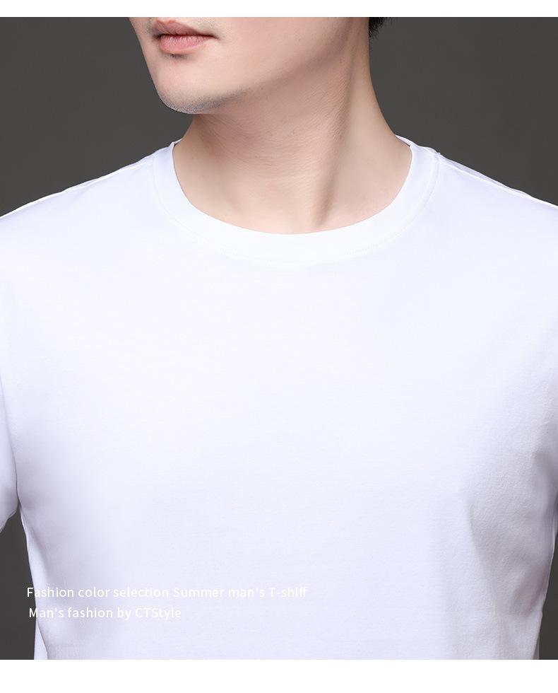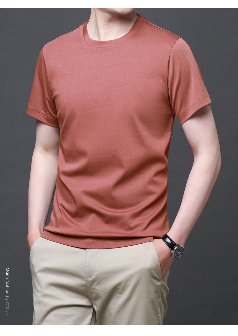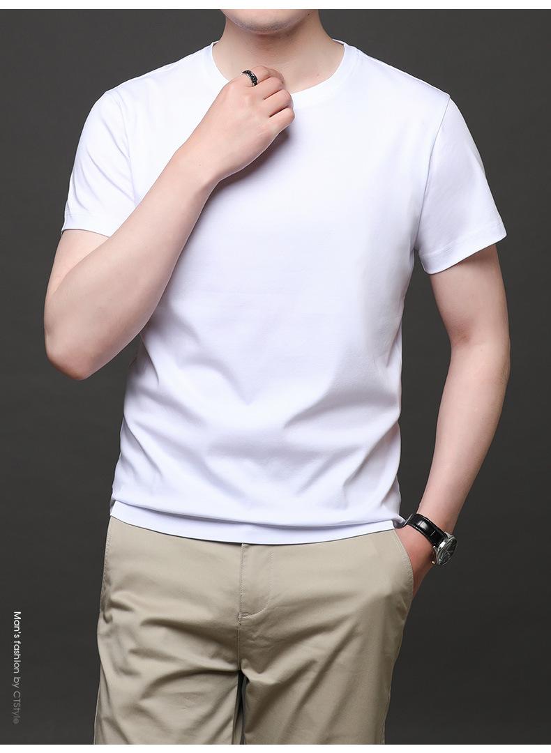 25 nova camiseta de algodão mercerizado verão gola redonda manga curta masculina cor sólida seda gelo casual algodão masculino meia manga top