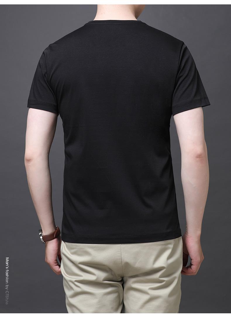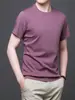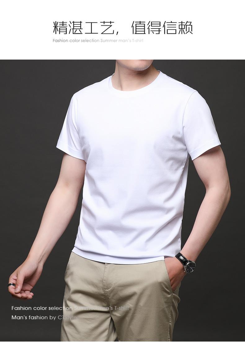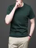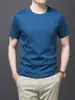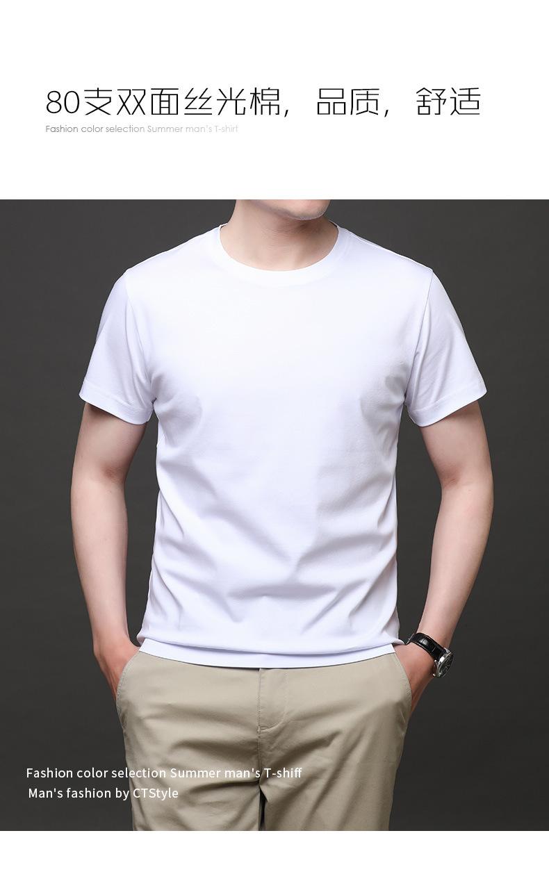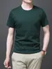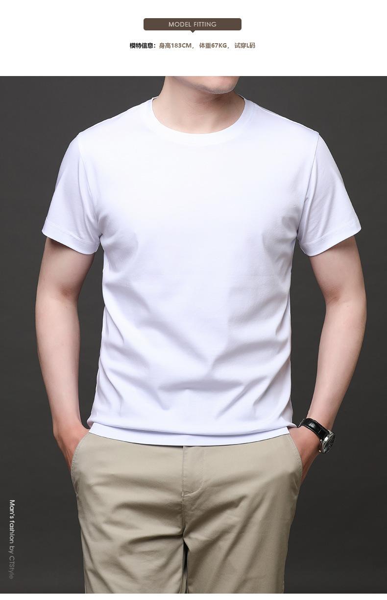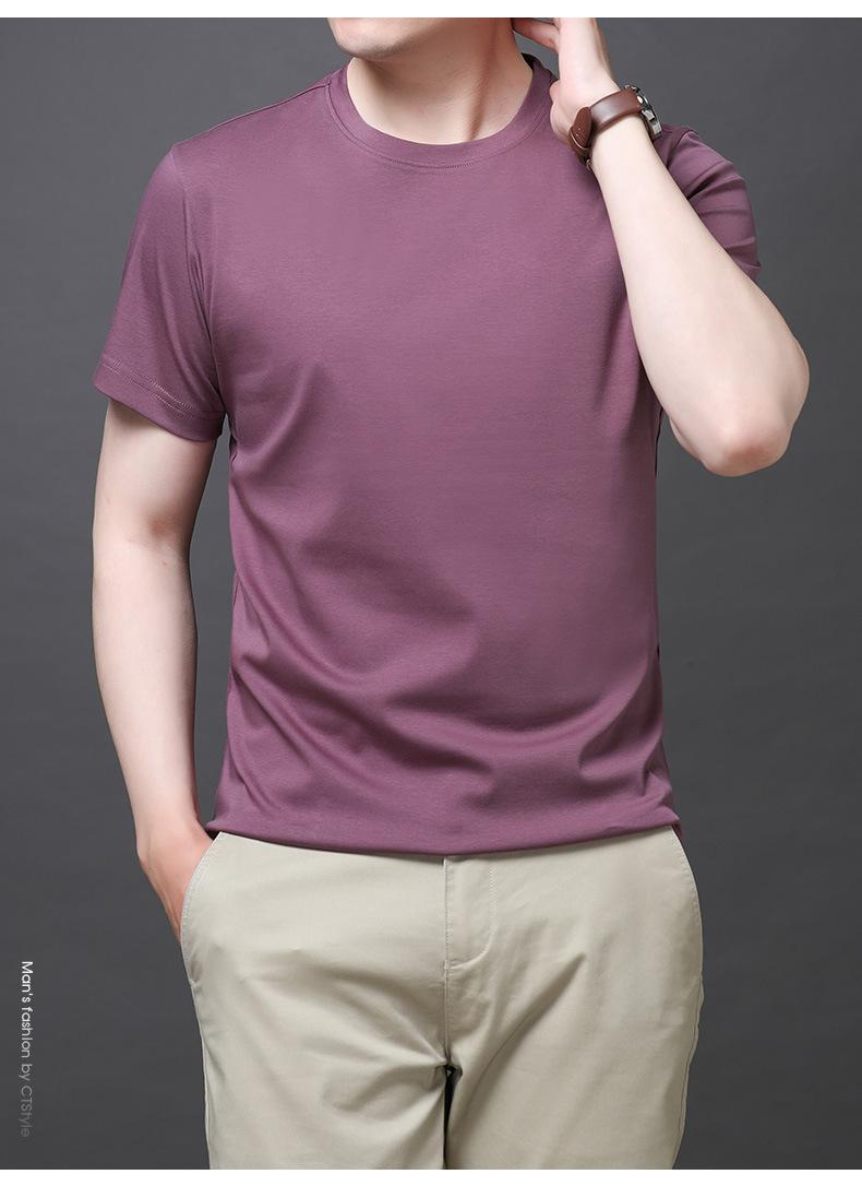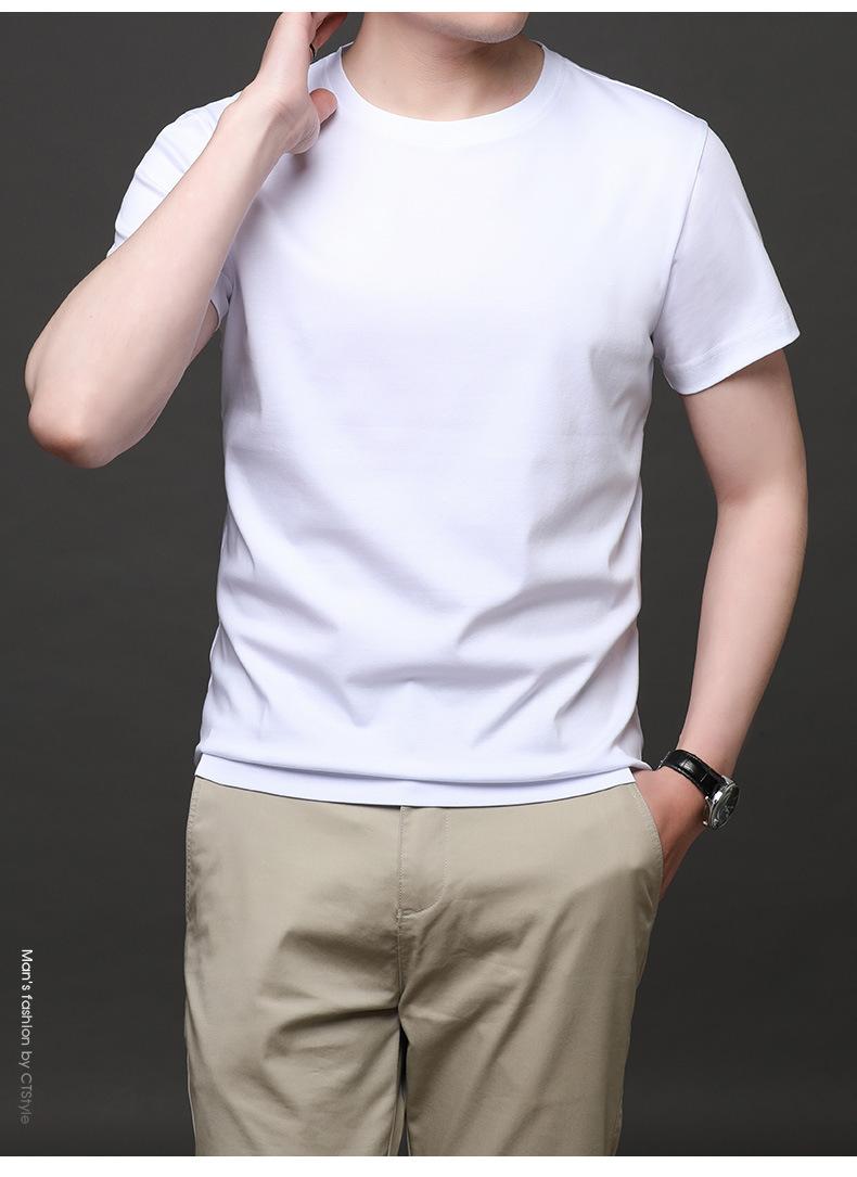25 nova camiseta de algodão mercerizado verão gola redonda manga curta masculina cor sólida seda gelo casual algodão masculino meia manga top