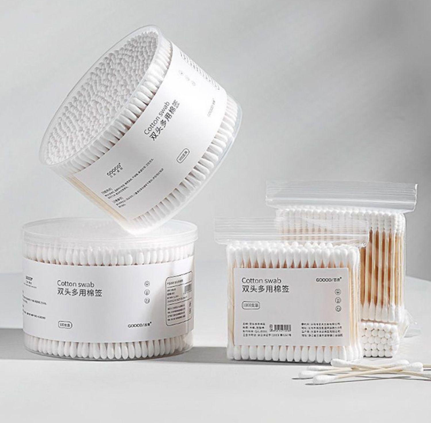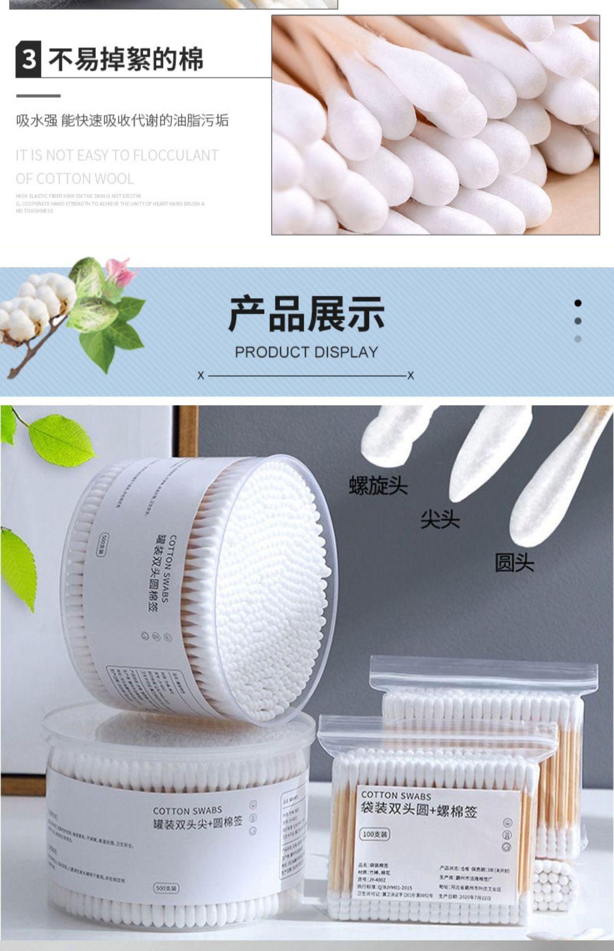 Cotonete de algodão de duas cabeças com maquiagem para puxar a orelha cotonete sanitário descartável para limpeza da colher de escavação da orelha cotonete de madeira cotonete de algodão espiral bola de algodão