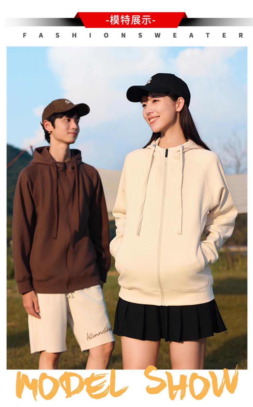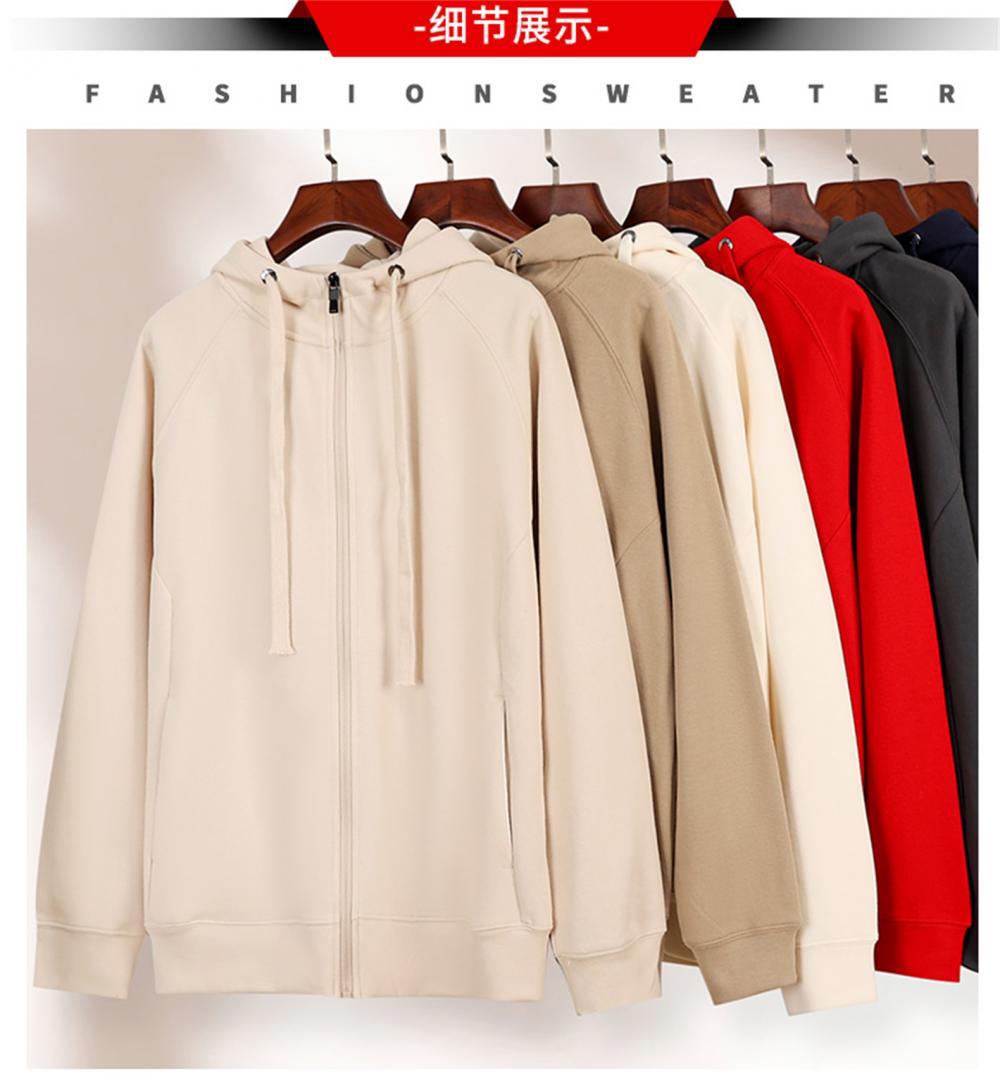 Suéter com zíper Logotipo Outono e Inverno com forro de lã Cardigan solto com capuz Roupas de trabalho Roupas de classe de equipe Jaqueta Estampa bordada