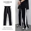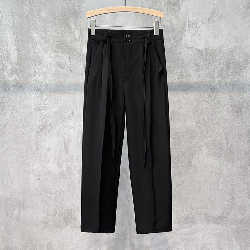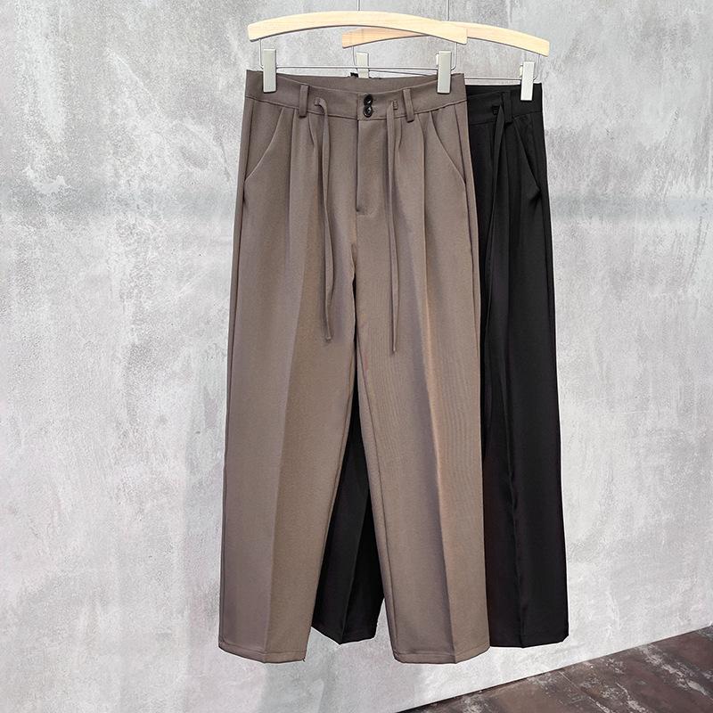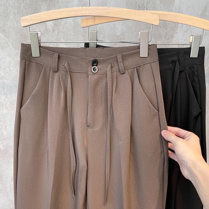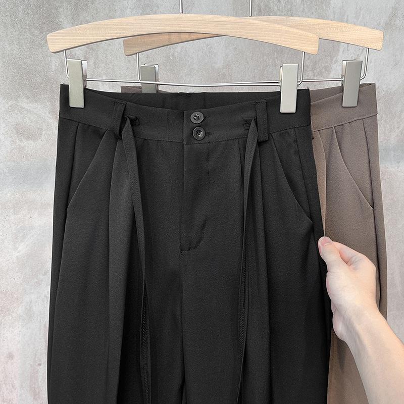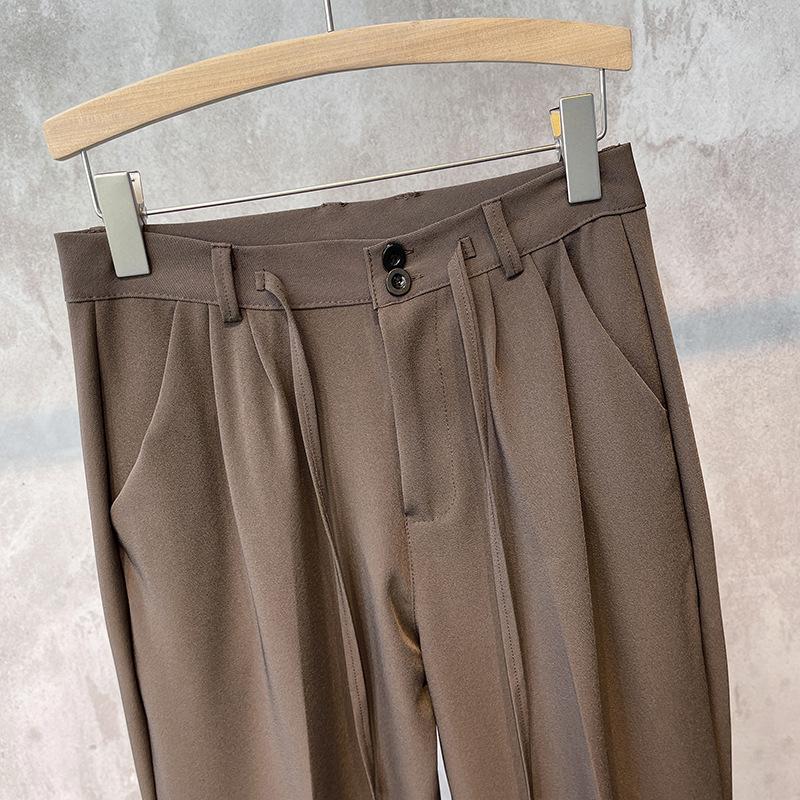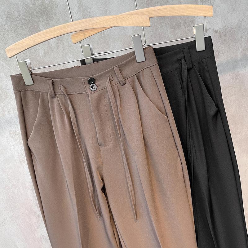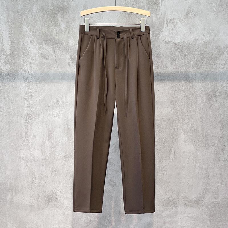 Novas calças casuais masculinas moda outono all-match slim-fit cordão reto calças de terno de perna larga