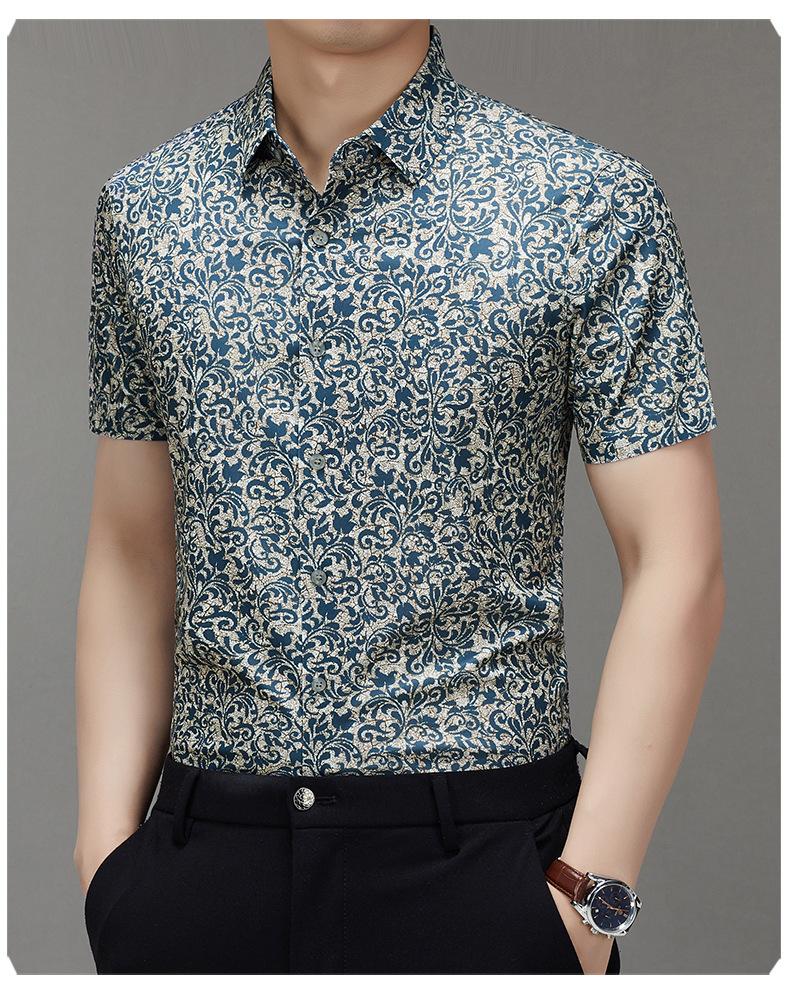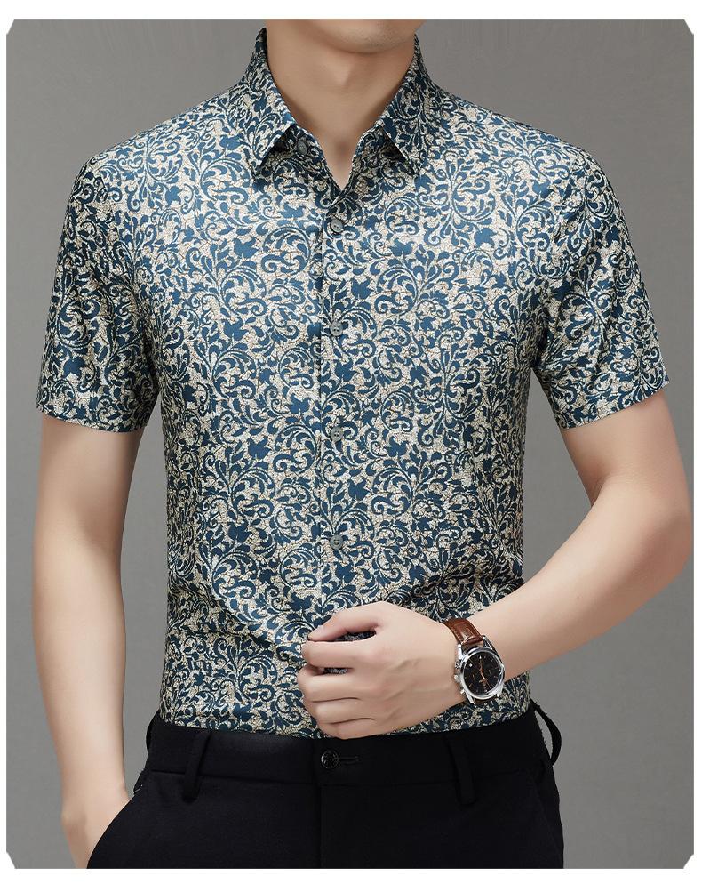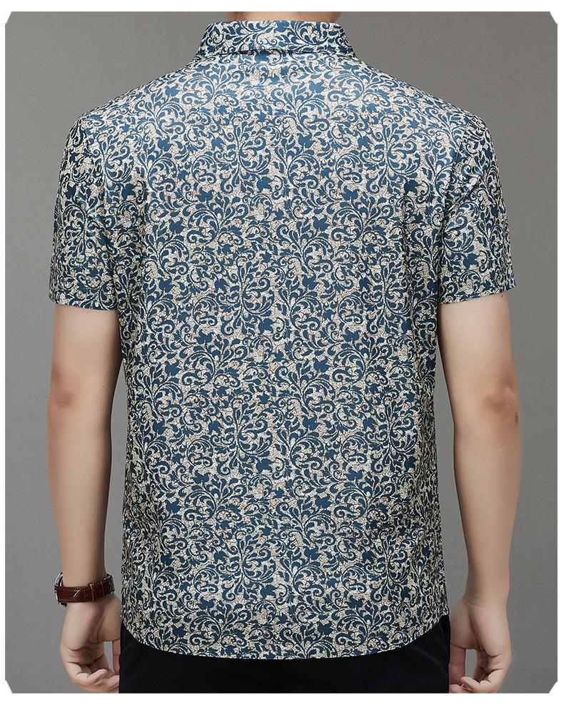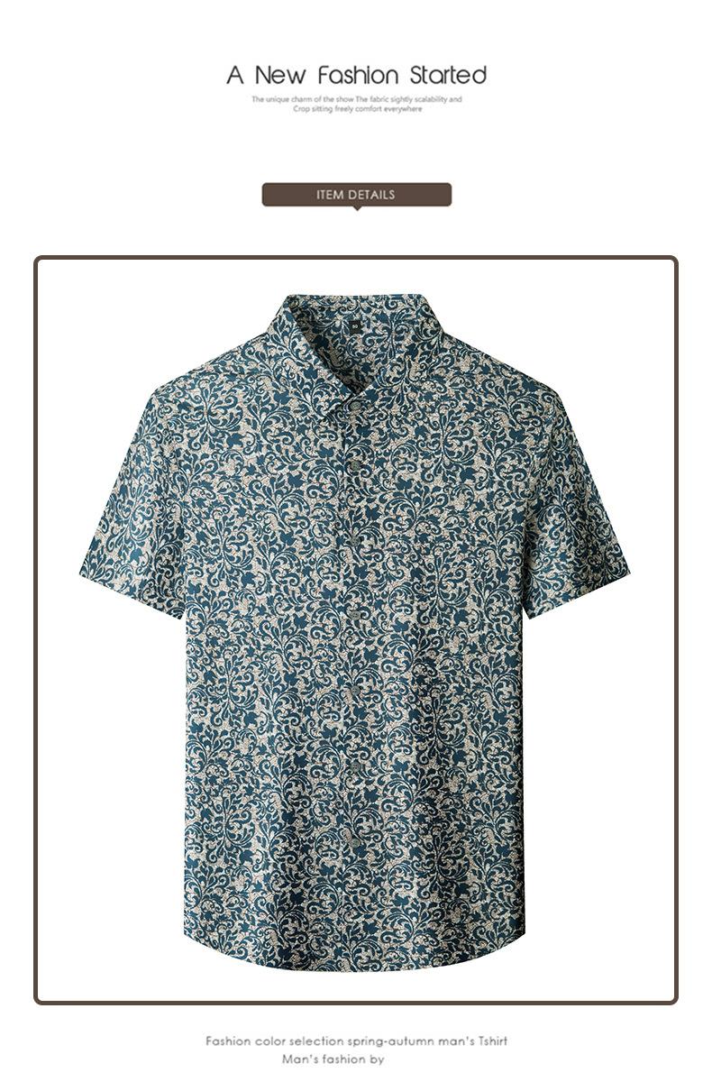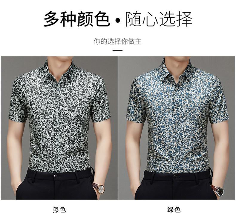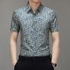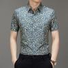 Camisa masculina de manga curta 25 anos nova sem costura sensação de gelo não precisa passar floral com linho camisa masculina forrada camisa masculina de manga curta