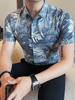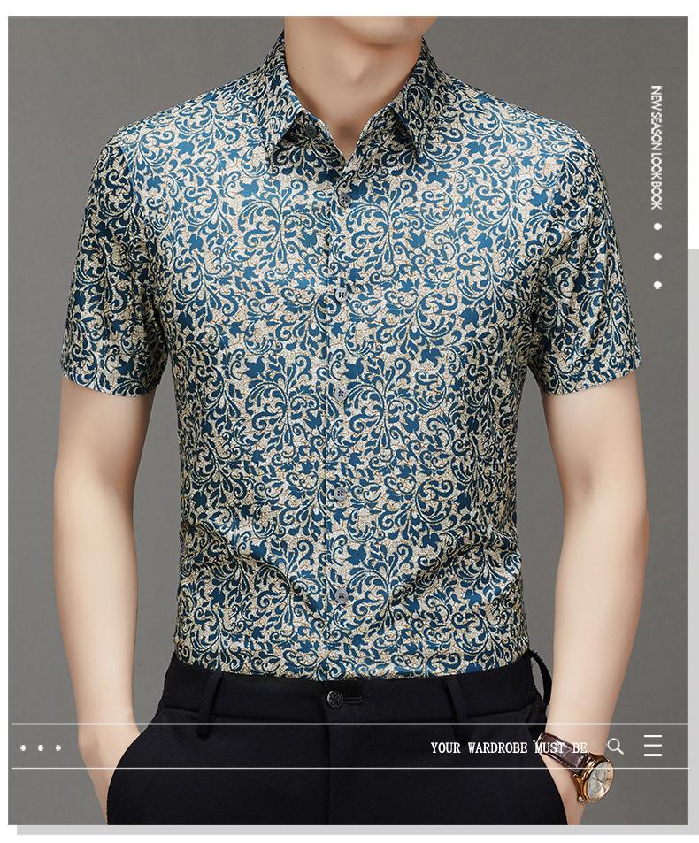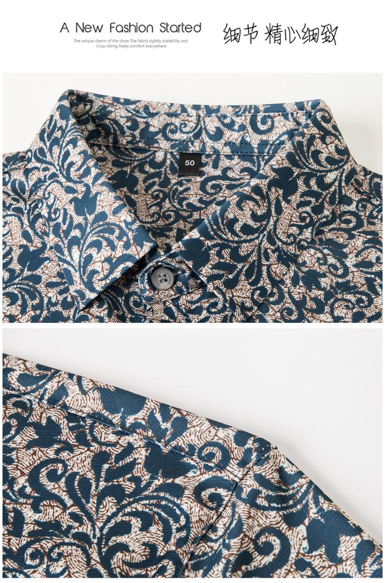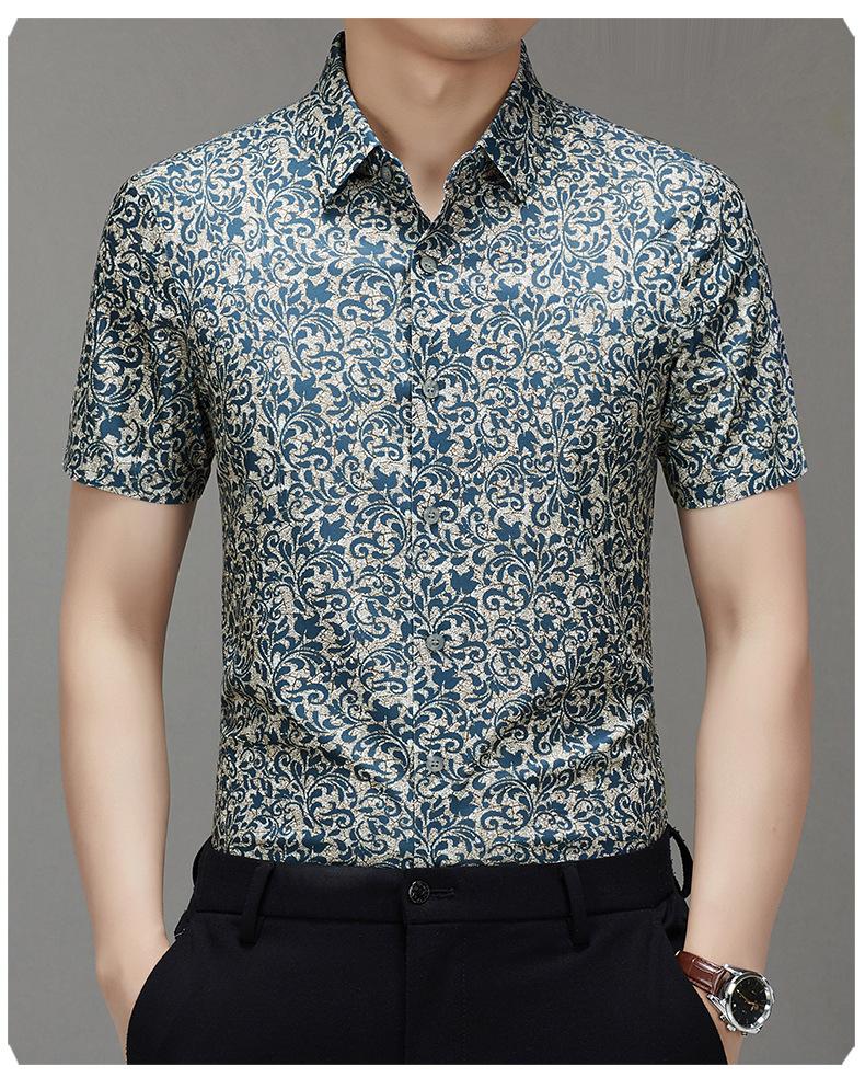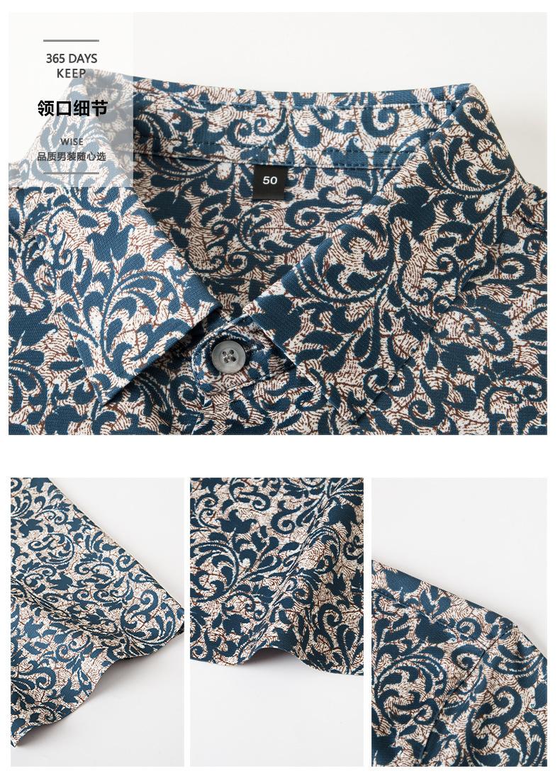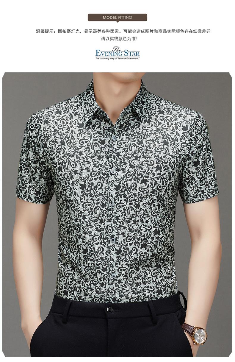 Camisa masculina de manga curta 25 anos nova sem costura sensação de gelo não precisa passar floral com linho camisa masculina forrada camisa masculina de manga curta