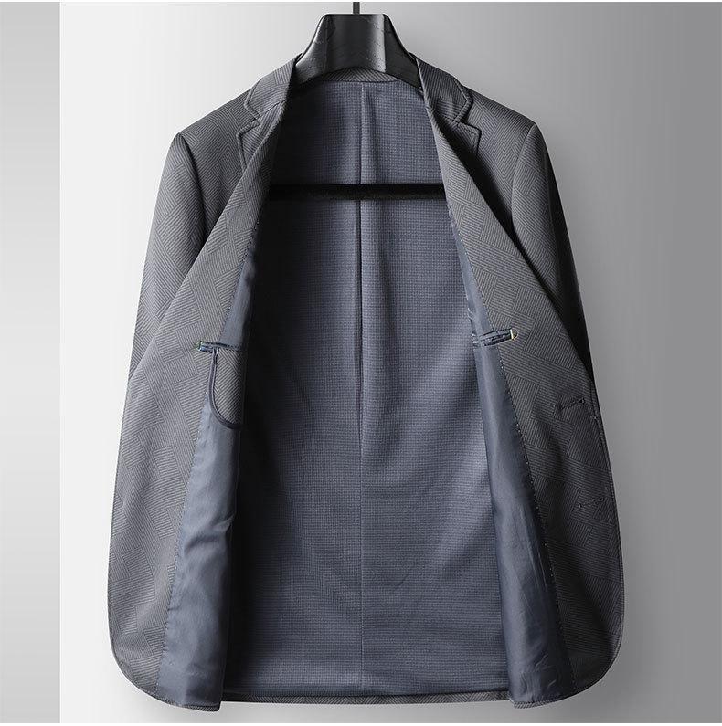 Terno casual masculino 2025 primavera e outono luz luxo negócios único ocidental meia-idade e jovens cor sólida trespassado cinza terno jaqueta