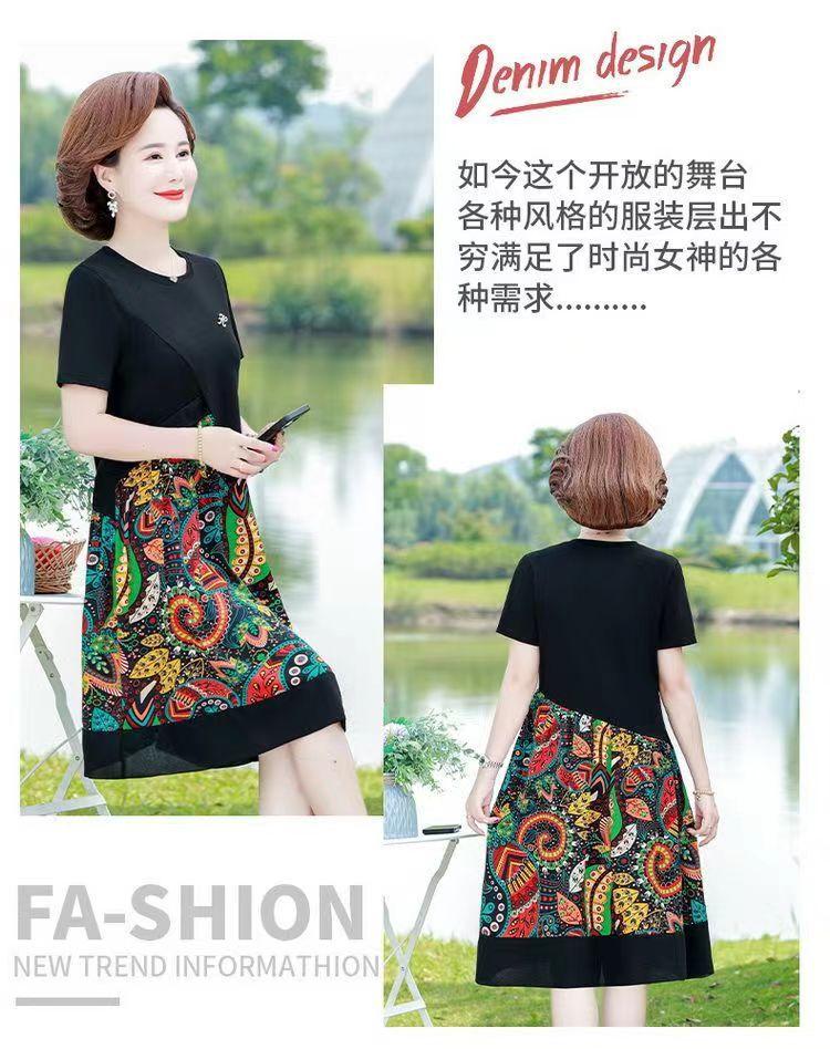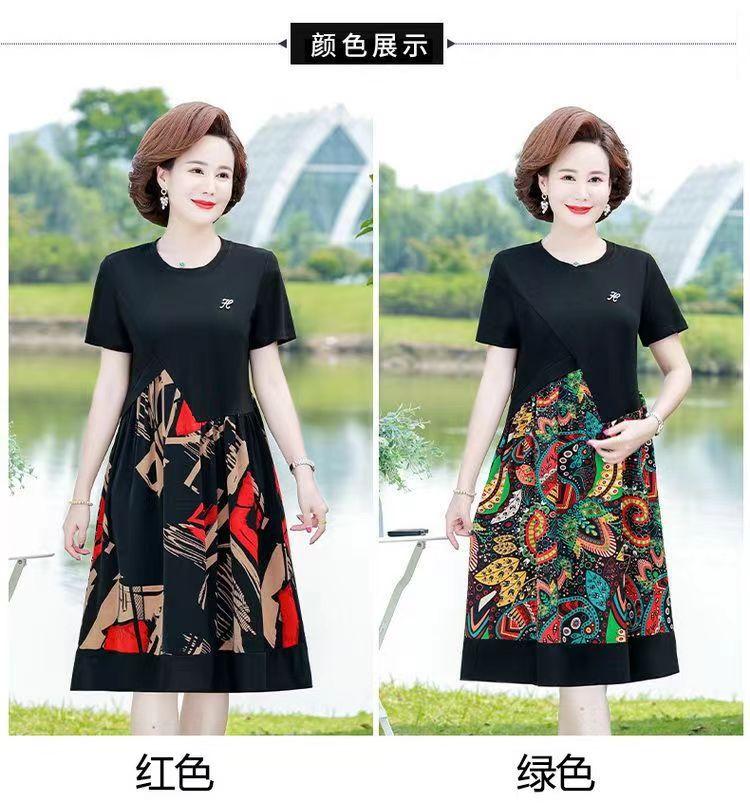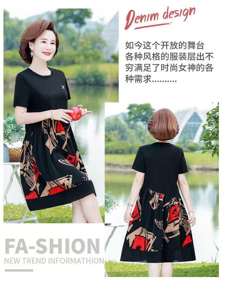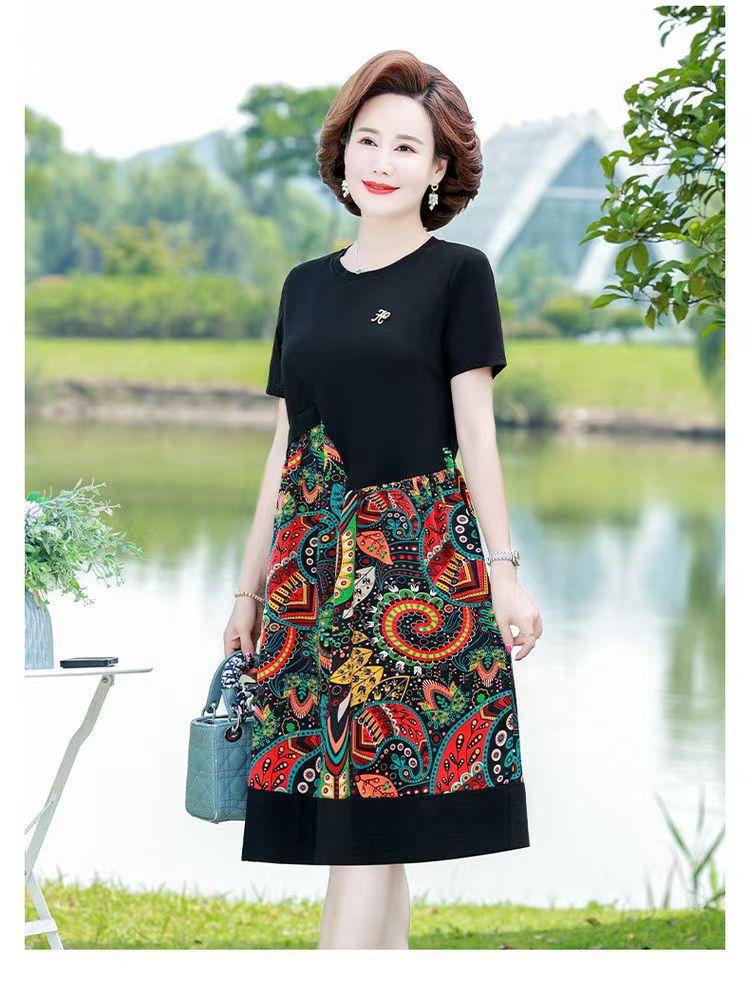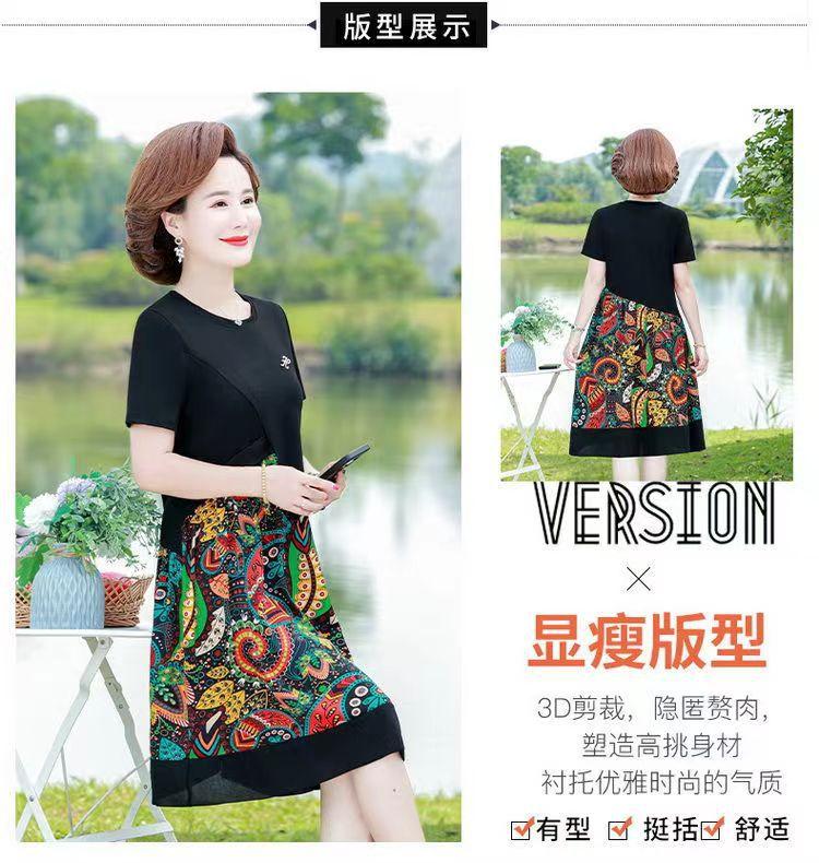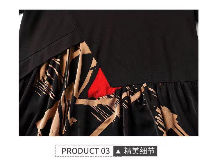 Vestido de verão novo plus size solto com costura e estampa fashion slim falso vestido de duas peças elegante vestido que cobre a barriga